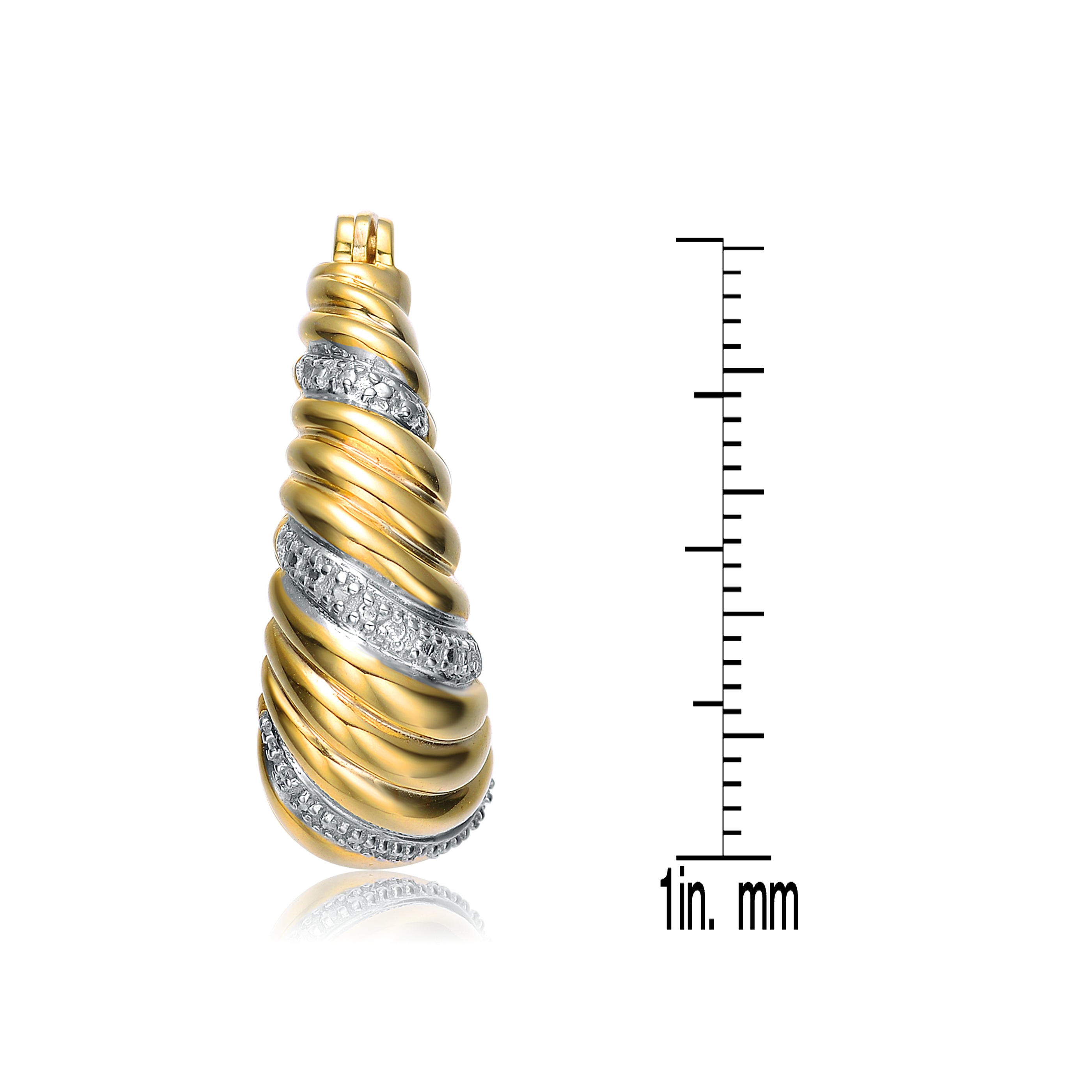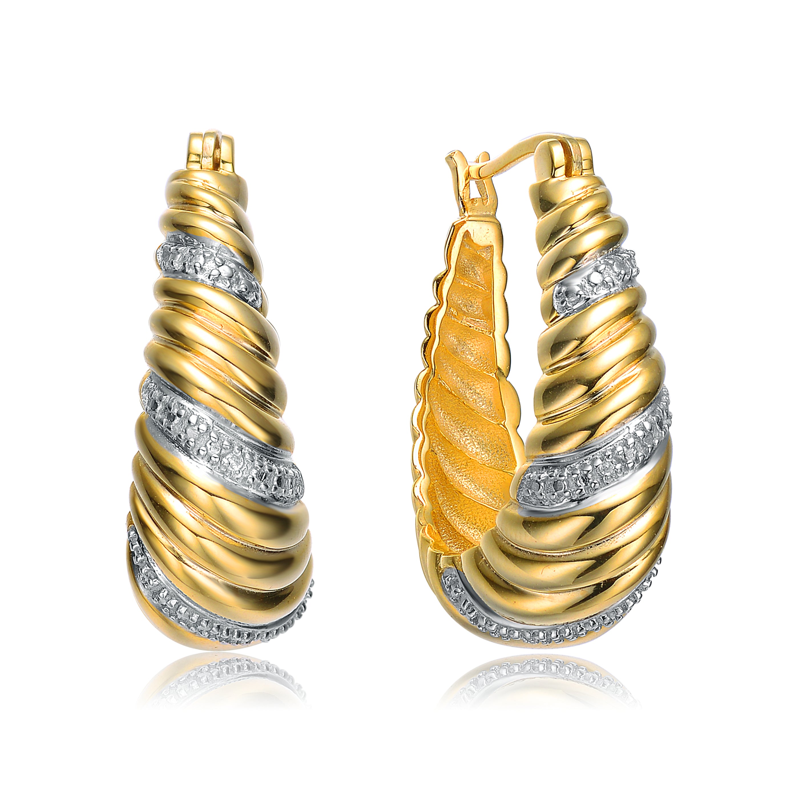These hoop earrings create the two tone look by swirling plated gold with clear cubic zirconia stones. Throw them on with jeans for a laid back appearance.
