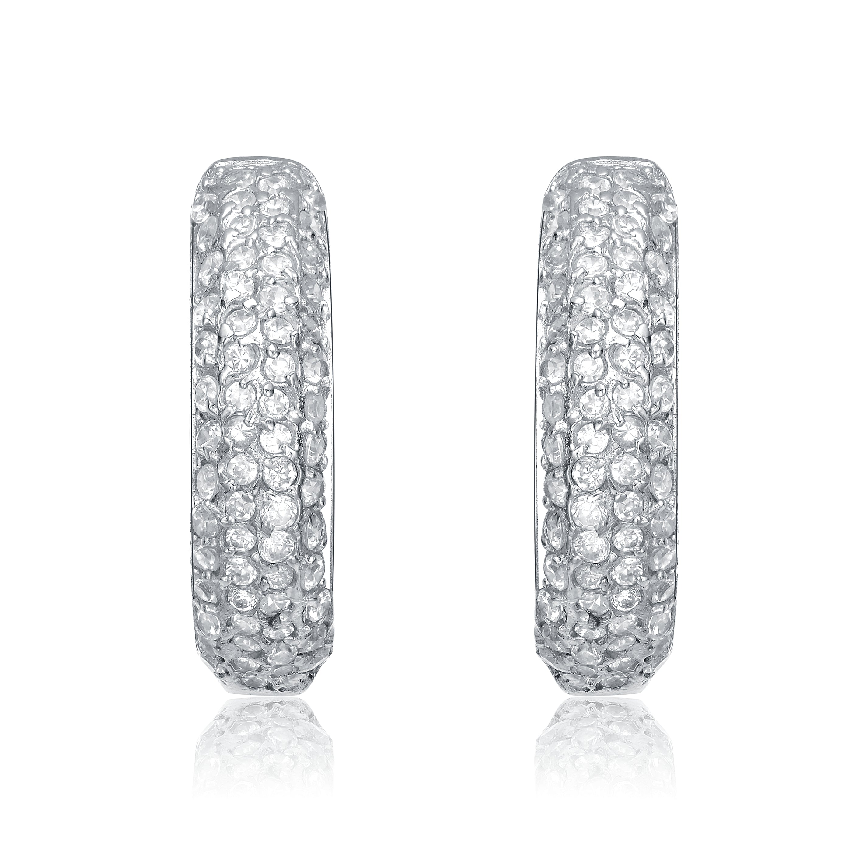 Add a touch of glamour to your style with these gold-plated sterling silver hoop earrings. Featuring a stunning pave design, the earrings are encrusted with shimmering cubic zirconia that catch the light from every angle. The sleek gold-plated finish enhances their elegance, making them a versatile choice for both casual and formal occasions.