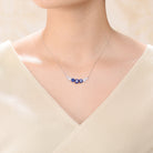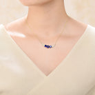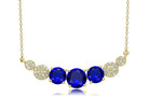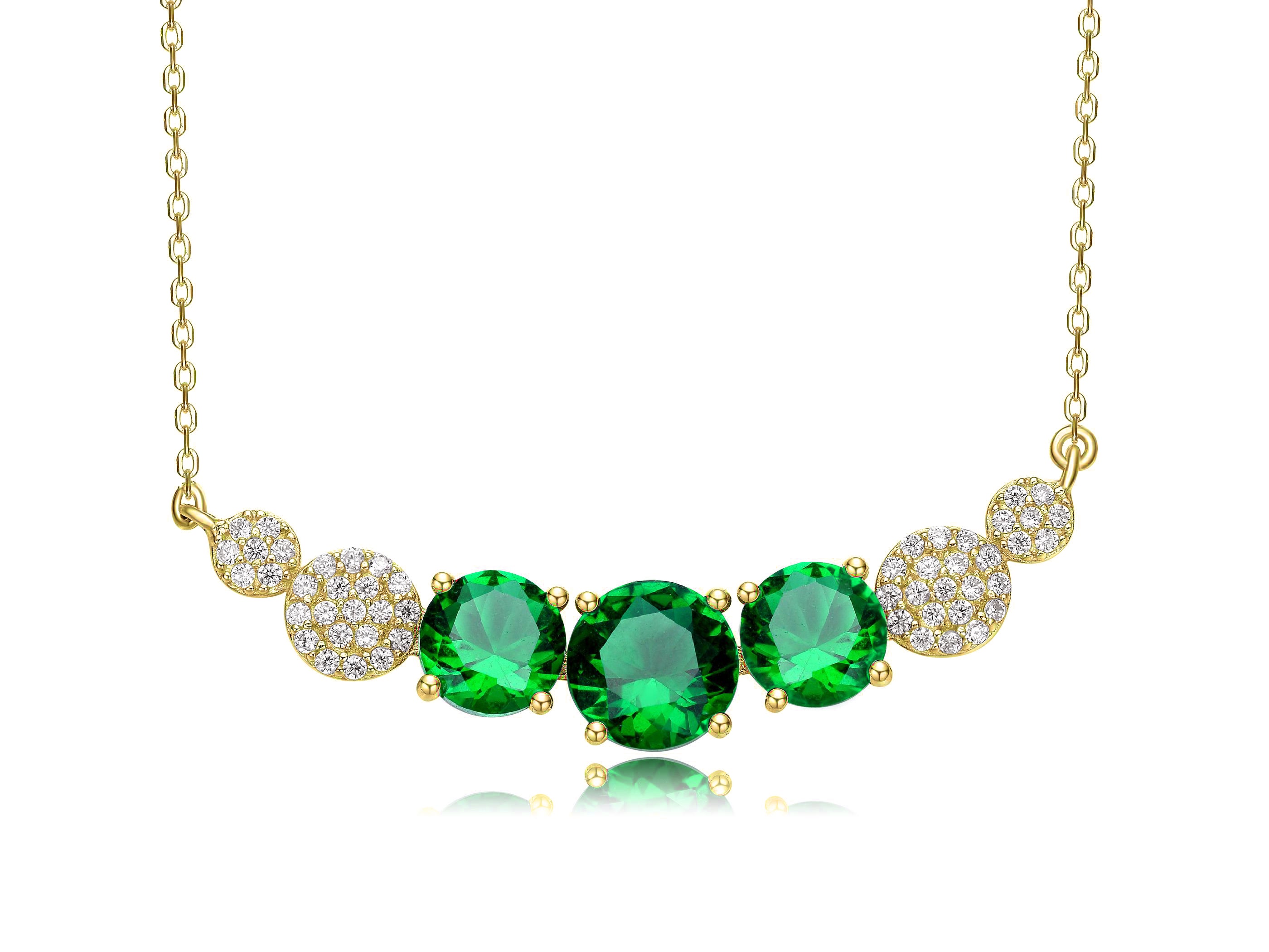 Add a touch of elegance and sparkle to any outfit with this stylish curved necklace, featuring a large center cubic zirconia stone in your choice of Ruby red, Emerald green, or Sapphire blue, flanked by two medium stones on each side. The stones are set within two metal frames, large and small, adorned with dazzling clear round-cut cubic zirconias for extra brilliance. Crafted in sterling silver with 14K gold plating and finished with a secure spring ring or lobster clasp, this necklace makes a timeless gift for any occasion.