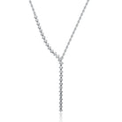 Glittering round brilliant cut cubic zirconias adorn this waterfall y-necklace, prong set and arranged on one side in an asymmetrical style. Designed in brightly polished rhodium-plated sterling silver with a secure lobster clasp in the back. Choose from our different style options. Also available in gold plating.