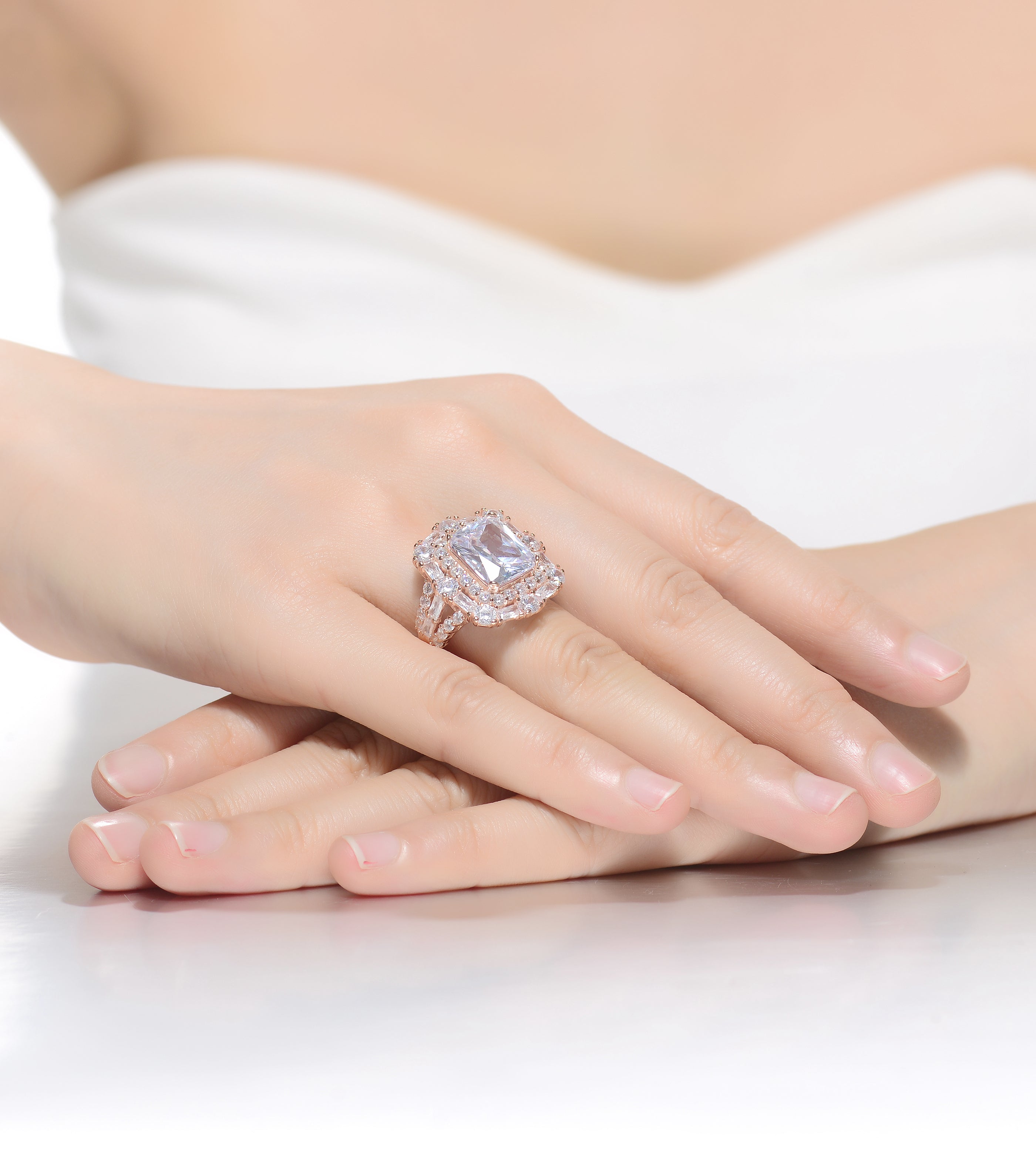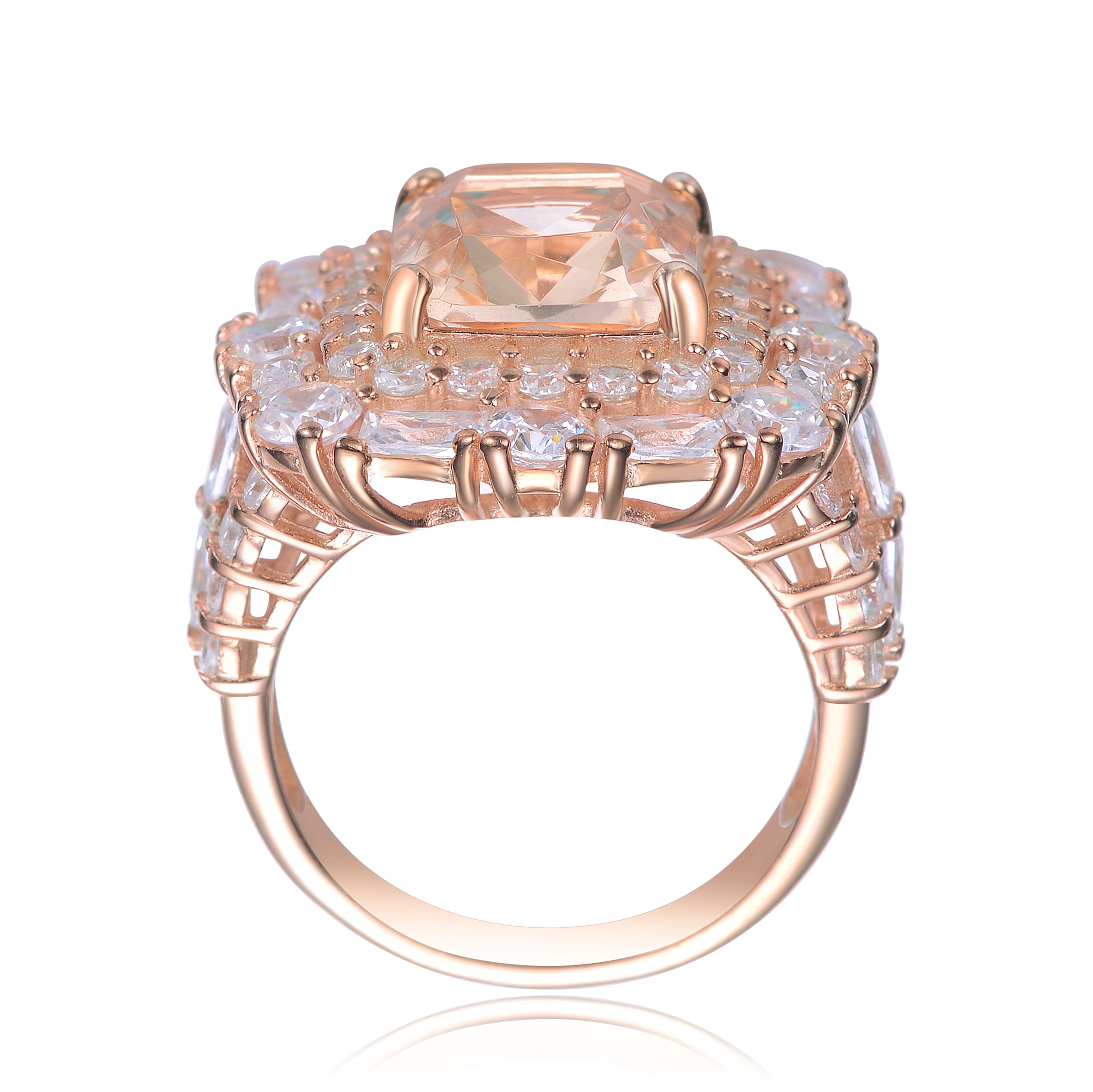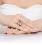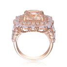 Peach and White Cubic Zirconia Rose Gold Plated Sterling Silver Square Shaped Ring