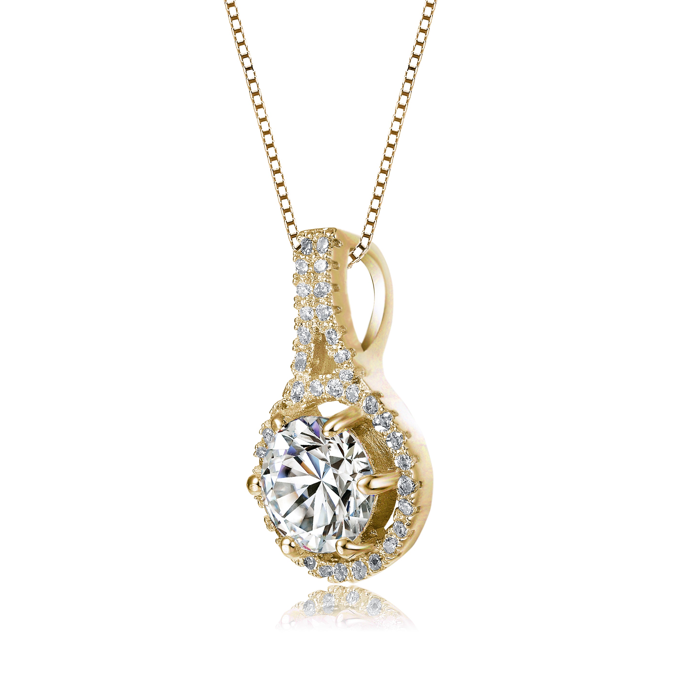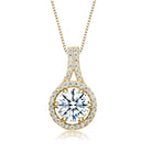 Level up your style with this Sterling Silver with Rhodium Plated Cubic Zirconia Drop Pendant Necklace. This necklace features fancy design, a halo studded with small round Cubic Zirconia and a big round Cubic Zirconia in the center of the frame. The upper part consists of two rounded Cubic Zirconia studded lines, connected at the top.
