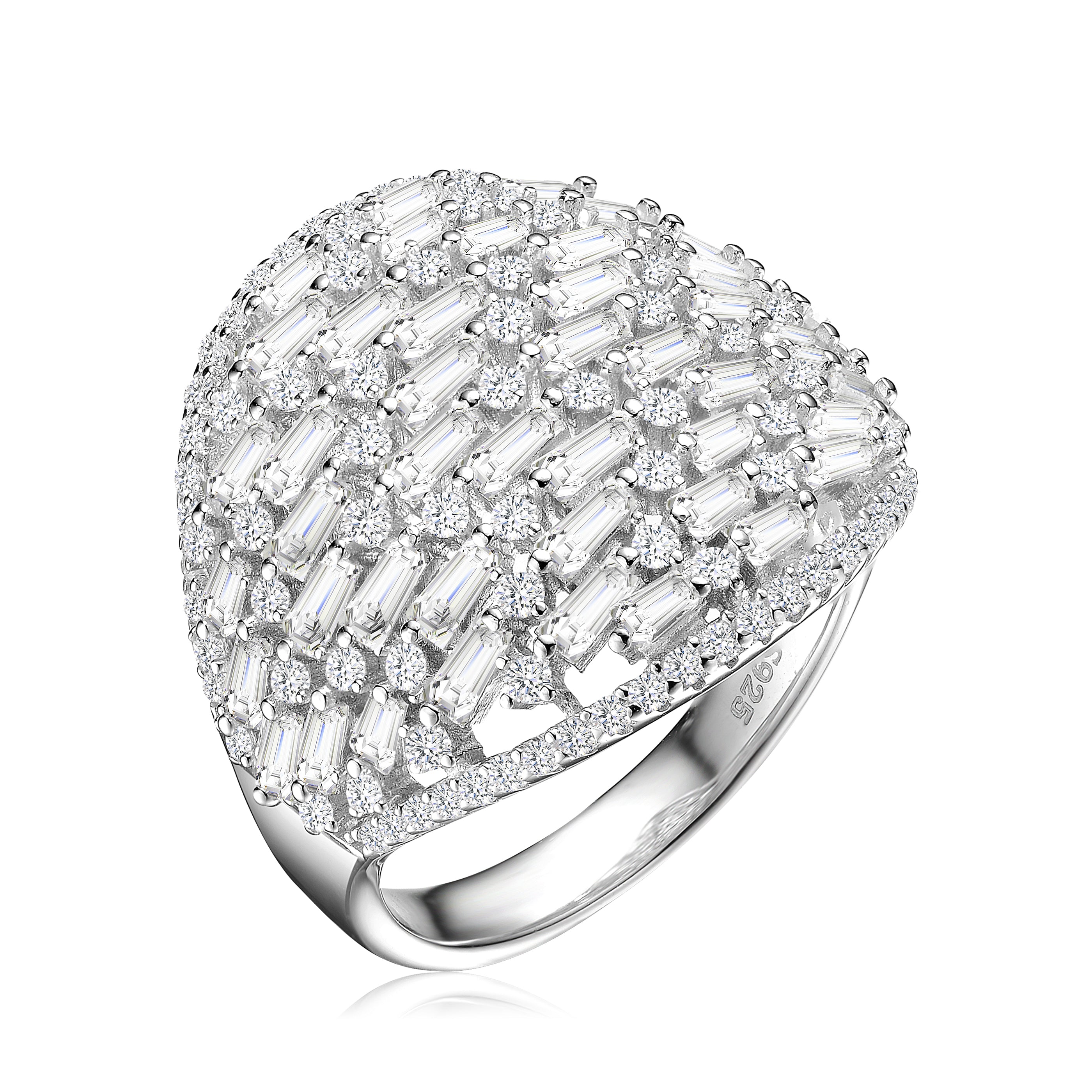 This stylish Cubic Zirconia cluster ring will provide an understated air of elegance when added to any outfit. It features clear emerald, round and marquise Cubic Zirconia clustered together in a linear pattern and it is set in Sterling silver with Rhodium plated. This ring will add glamour to your look. Available in size 6,7,8.