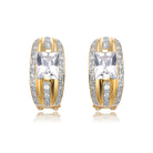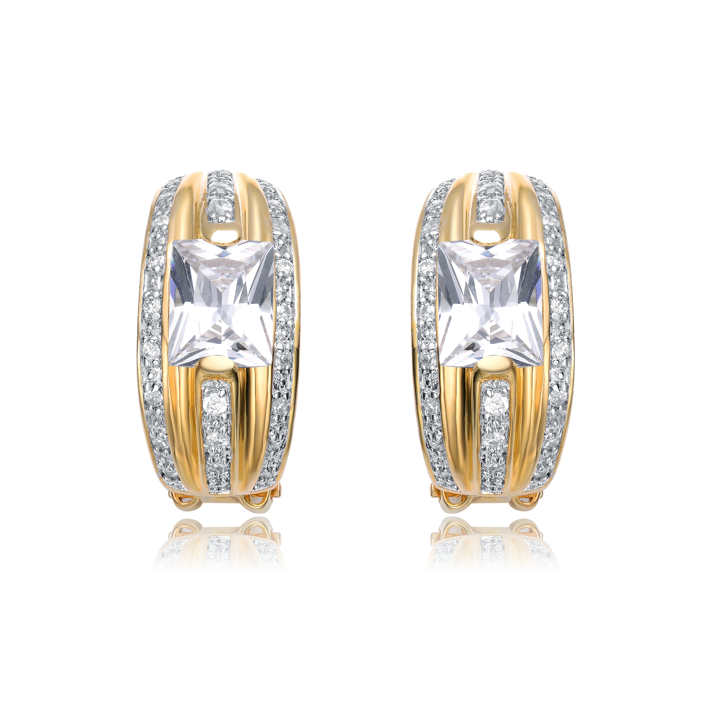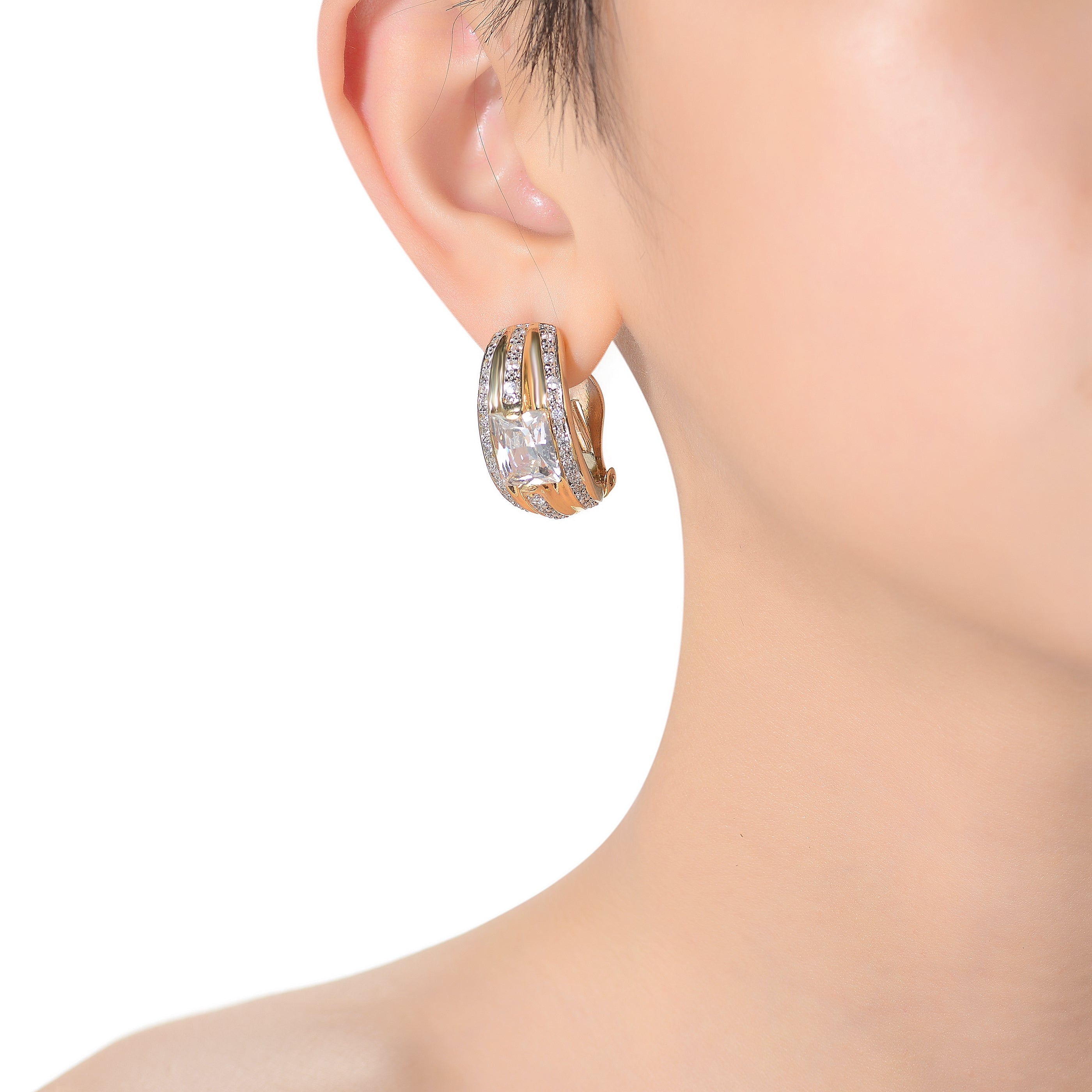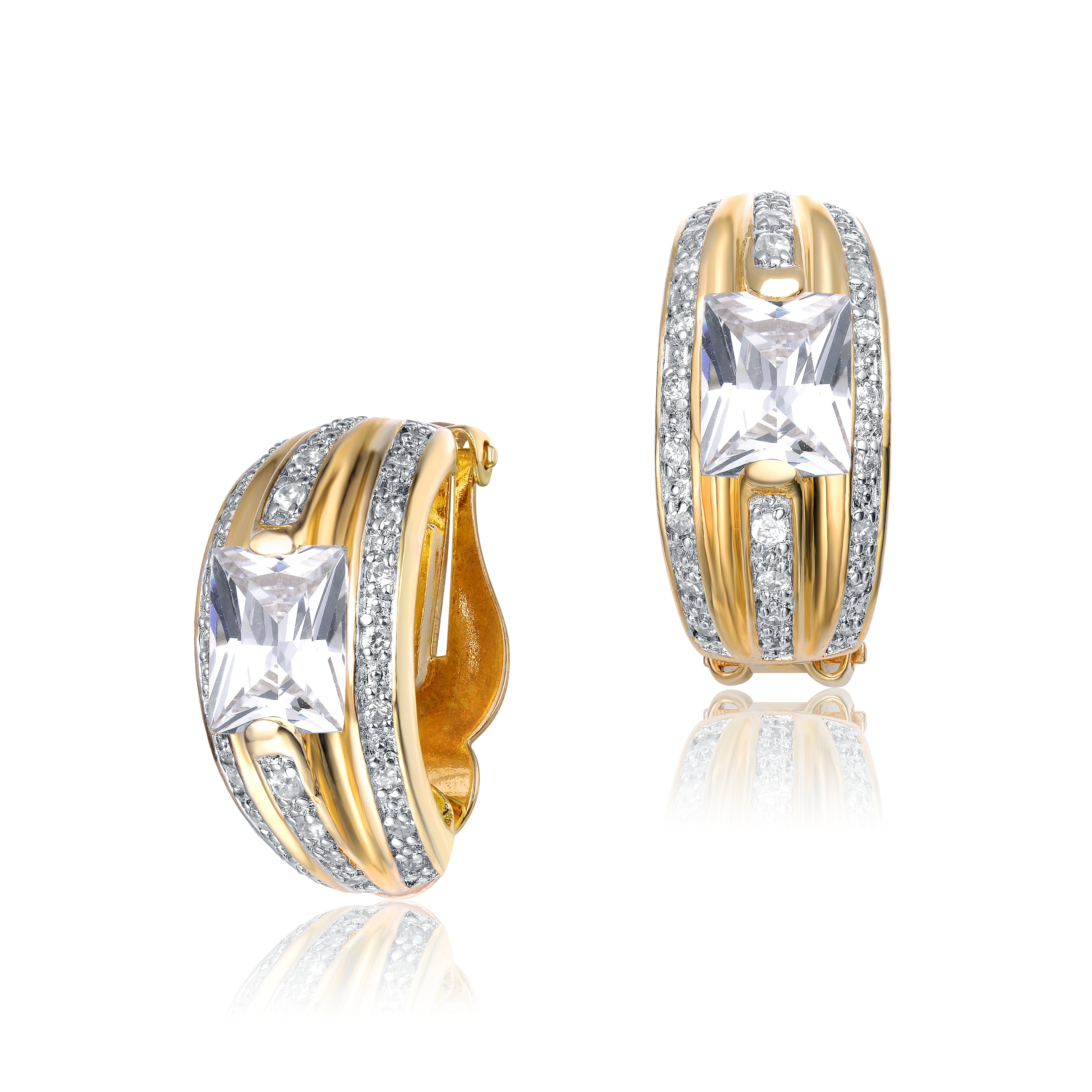 These exquisite hoop earrings feature a rhodium-plated sterling silver construction, providing a durable and tarnish-resistant finish. The design showcases a prominent princess-cut cubic zirconia centerpiece, flanked by rows of smaller, pavé-set cubic zirconia that enhance the sparkle and allure. The hinged snap closure ensures secure wear. Perfect for adding a touch of sophistication to any outfit, these earrings are an ideal choice for those who appreciate the beauty of fine jewelry without the high cost of diamonds.