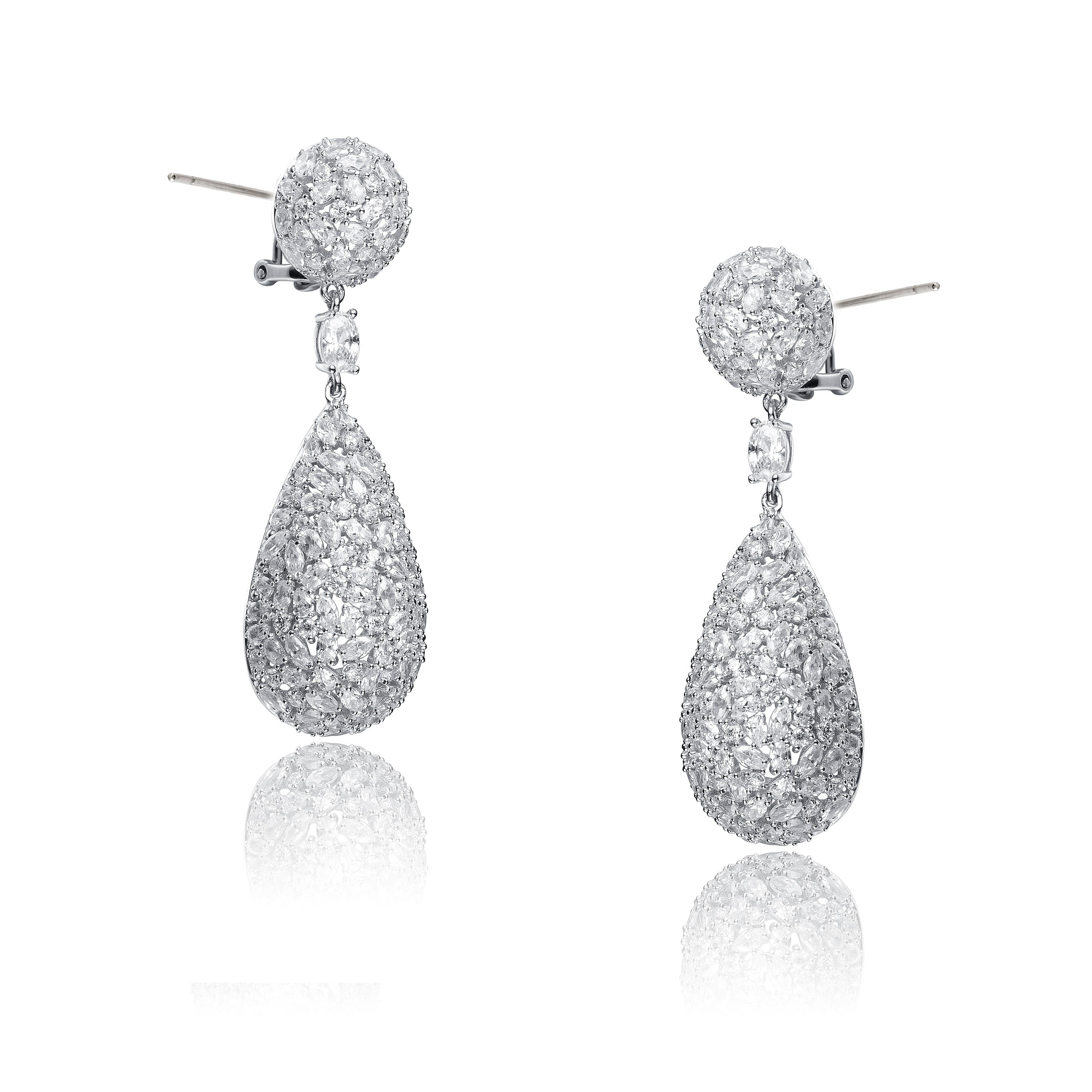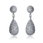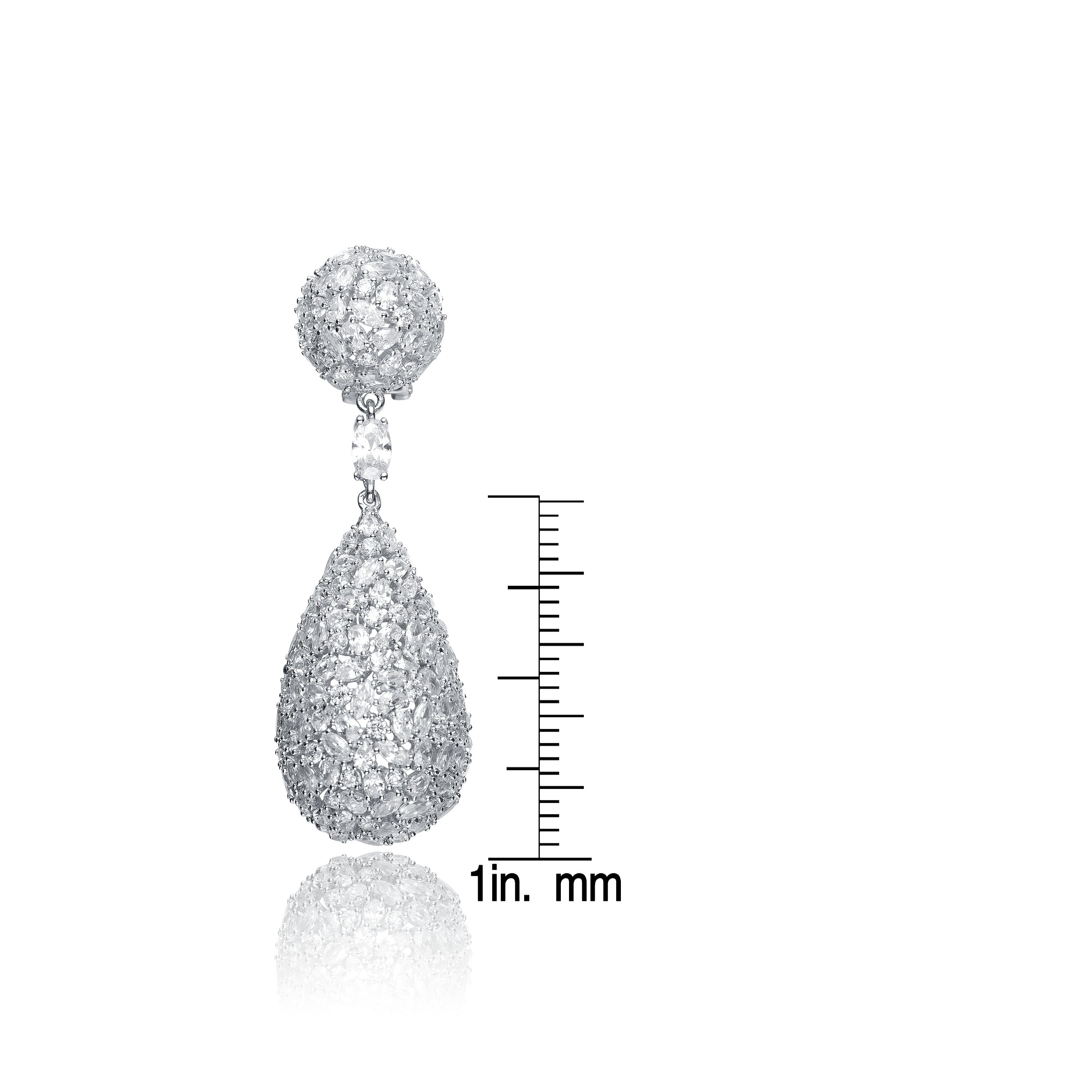 Rhodium Plated with Cubic Zirconia Raindrop French Pave Earrings in Sterling Silver
