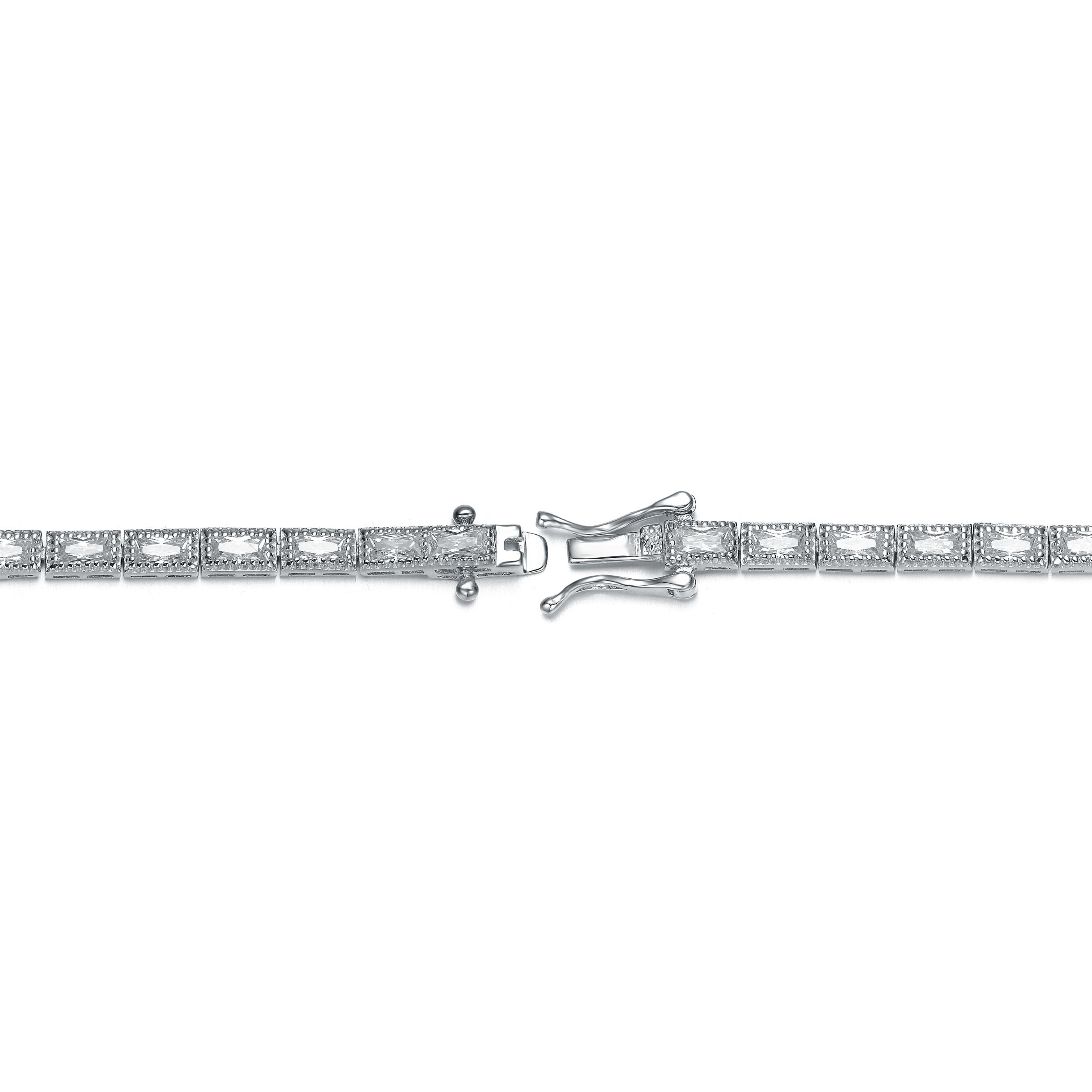 Rhodium-Plated with Cubic Zirconia Vintage Milgrain Tennis Bracelet in Sterling Silver