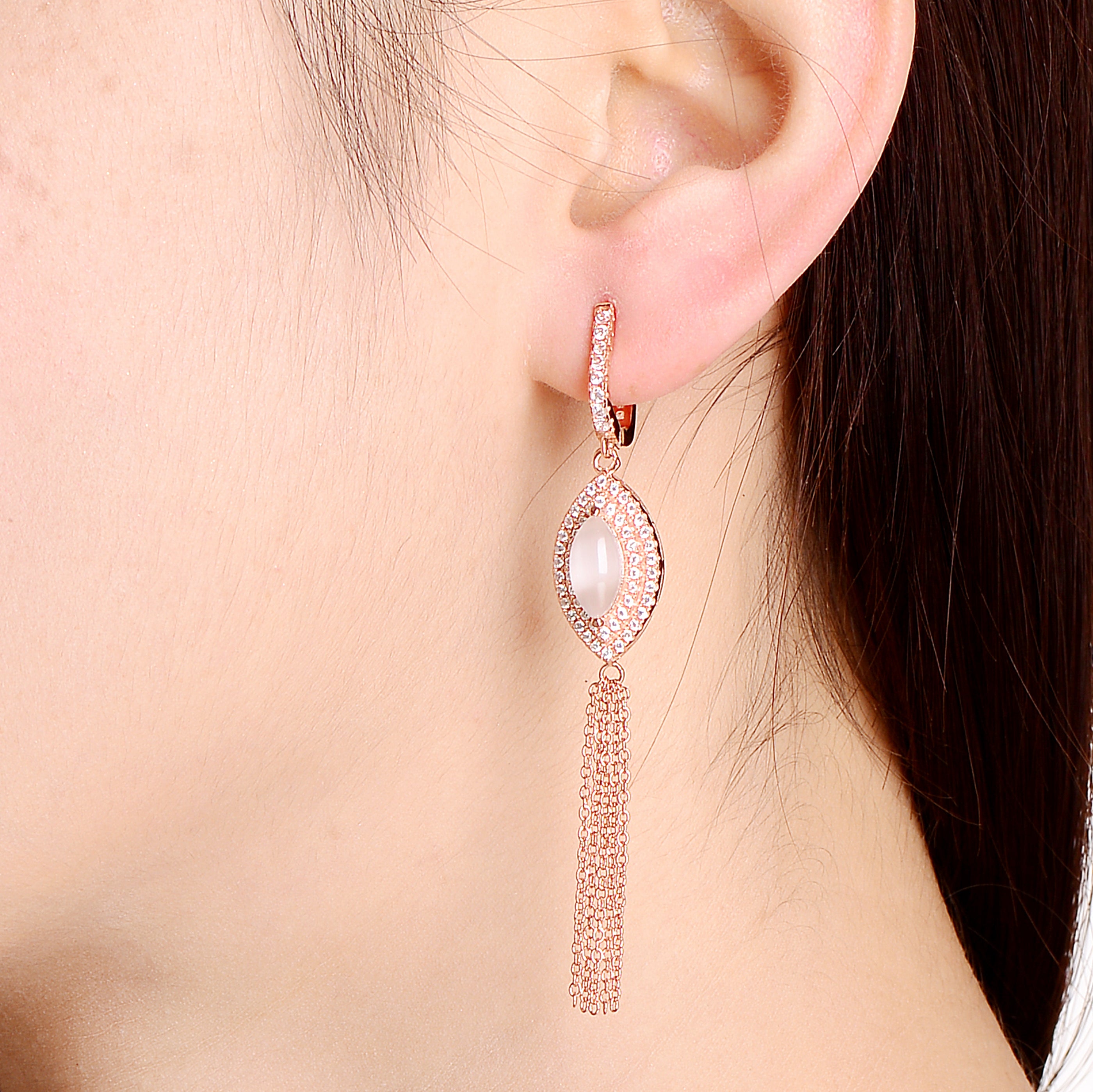 Rose Gold Overlay and Cubic Zirconia Tassel Earrings
