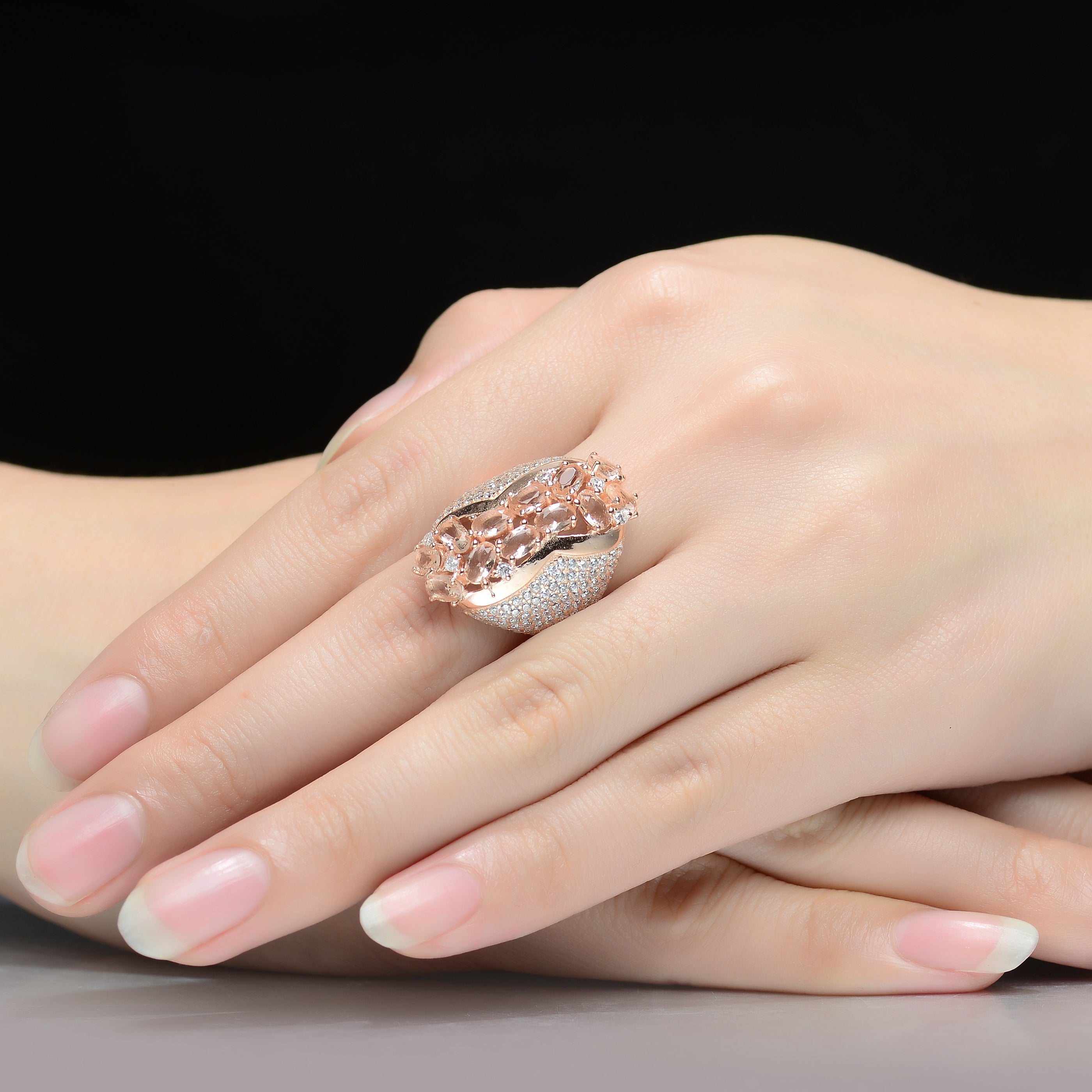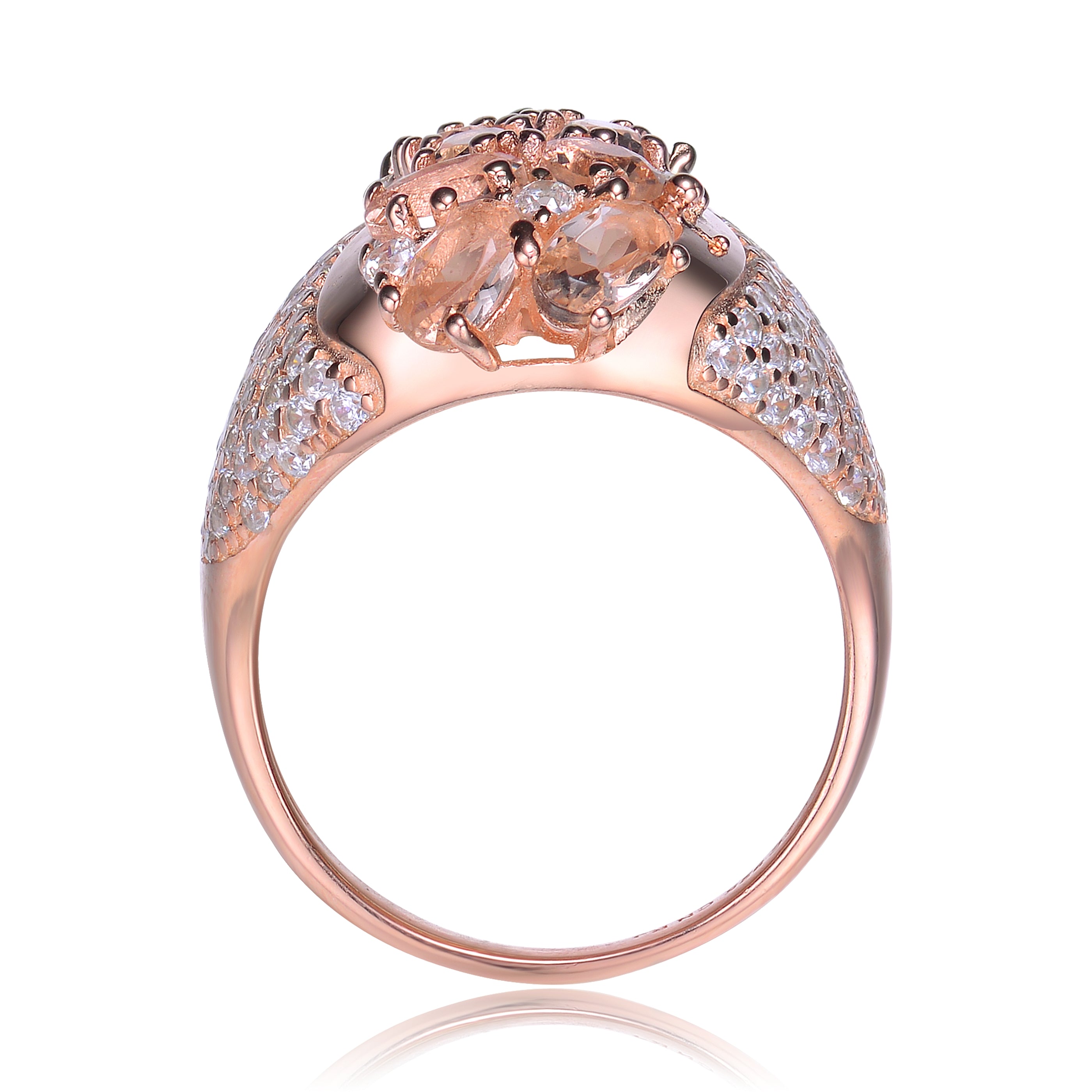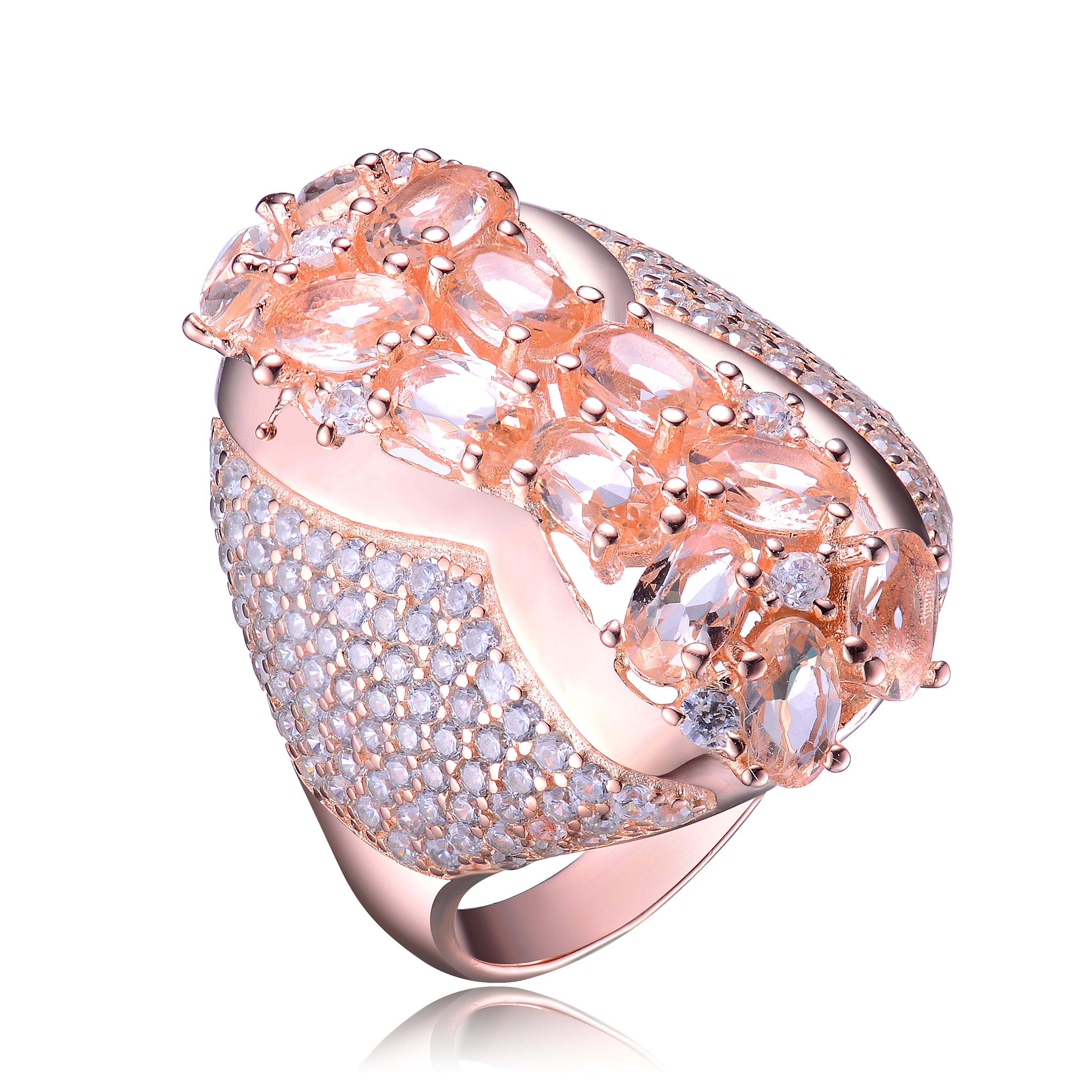 Rose Gold Plated Morganite and Clear Cubic Zirconia Accent Ring
