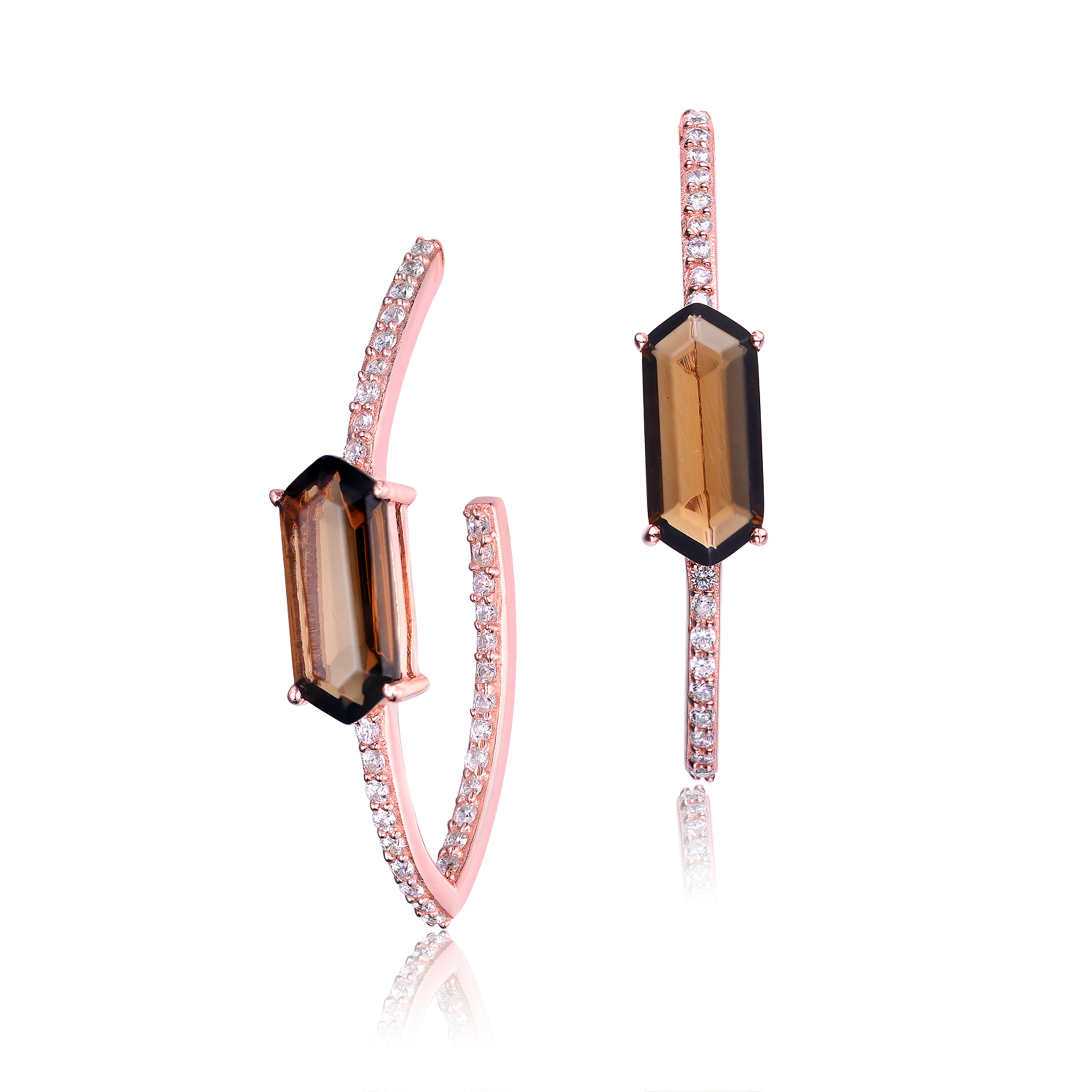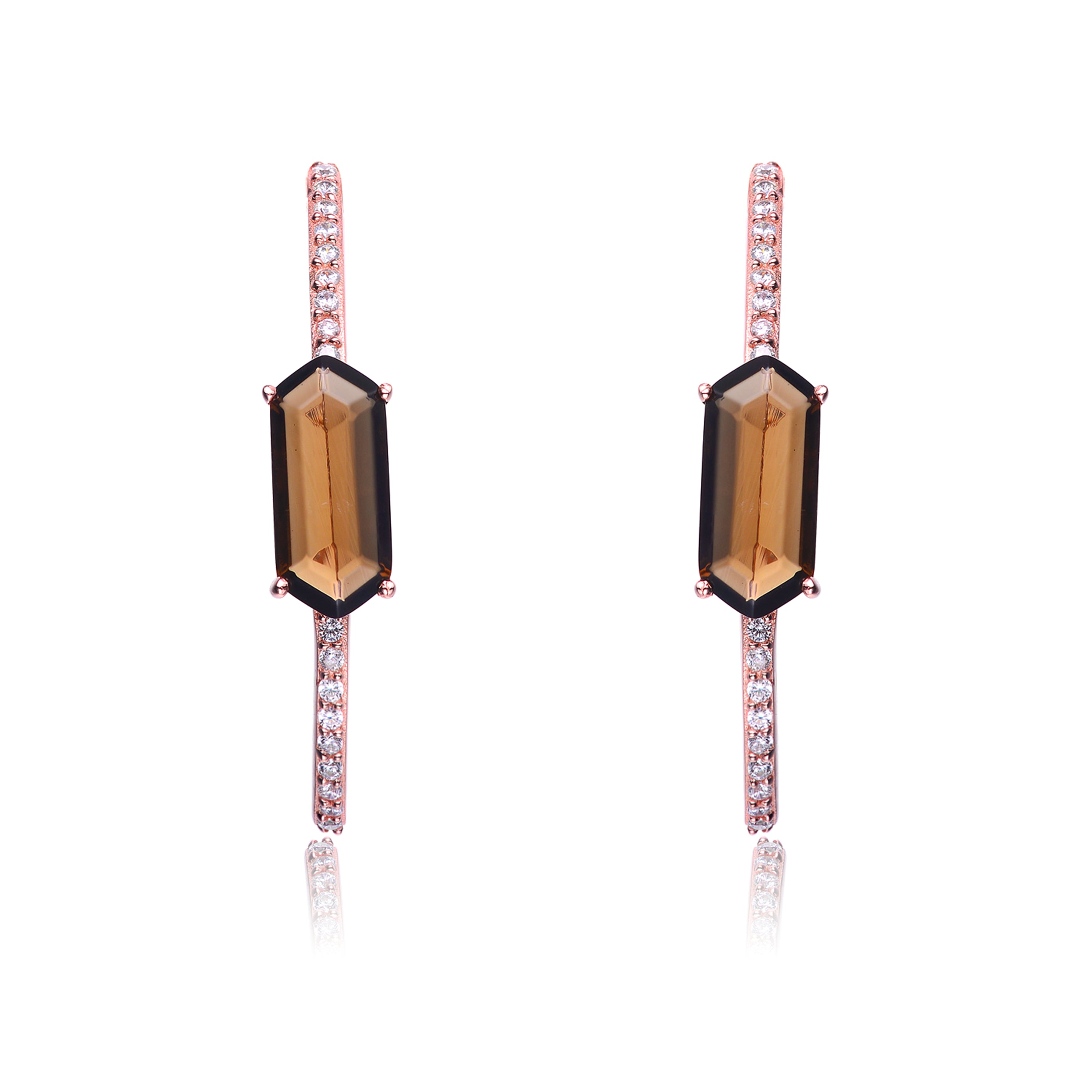 Rose overlay and smoley topaz cubic zirconia combine to form one dynamic set of earrings. This is a great accessory for daytime outfits.