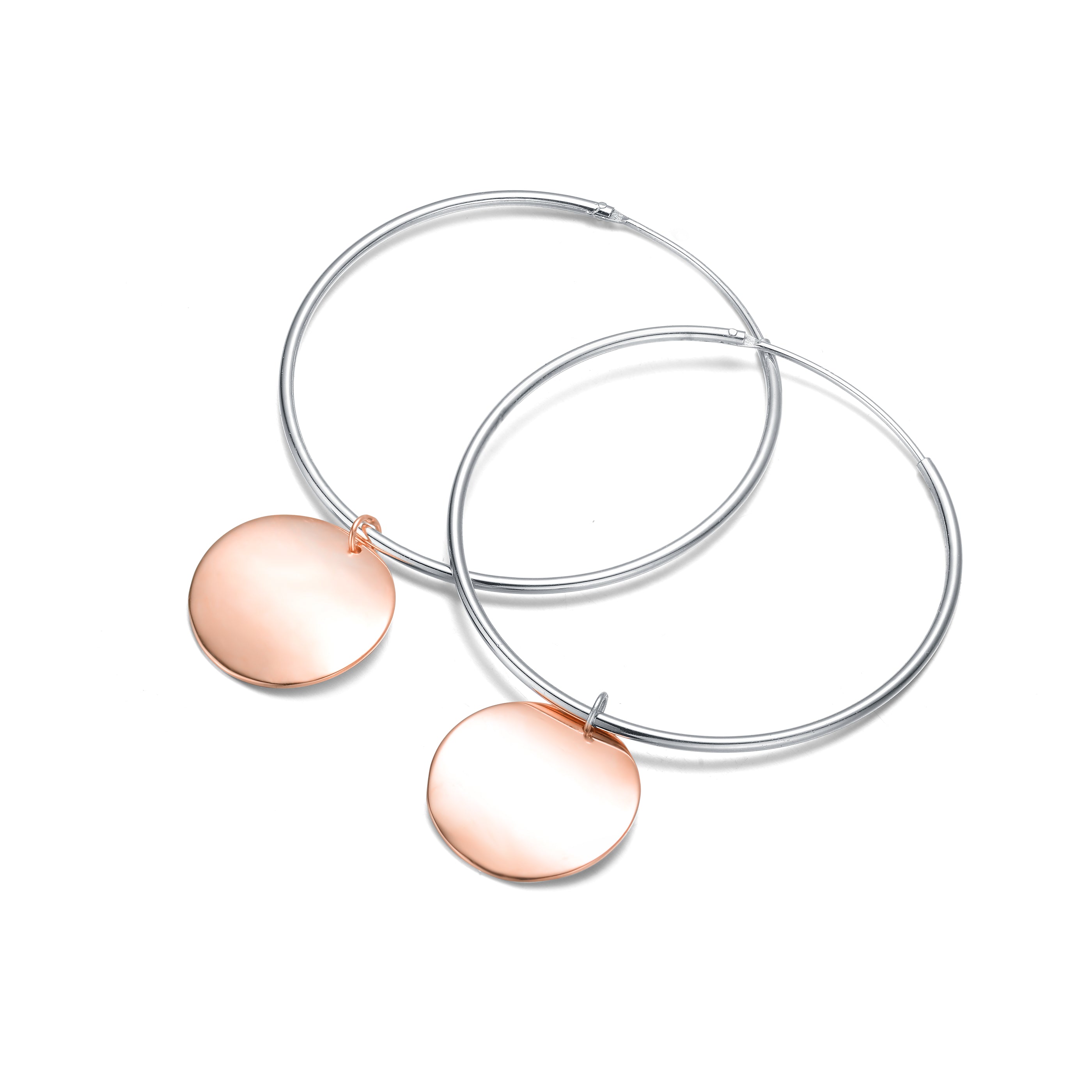 Stylish Sterling Silver with Round Rose Gold Plated Dangle Hoop Earrings