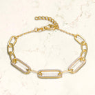Sterling Silver 14k Yellow Gold Plated with Cubic Zirconia French Pave Slinky Oval Cable Link Bracelet - Adjustable in Length. Refresh your jewelry collection with this beautiful, high-quality sterling silver 14k yellow gold plated bracelet featuring an elongated oval cable chain in a rich shine. Sparkling round brilliant cut cubic zirconia stones French pave set on the top links add glamor to this statement-worthy bracelet, tapering into a mini cable link on the back. A lobster clasp keeps this luxe bracelet secure, accompanied by an extension chain that accommodates most wrist sizes for your convenience.