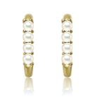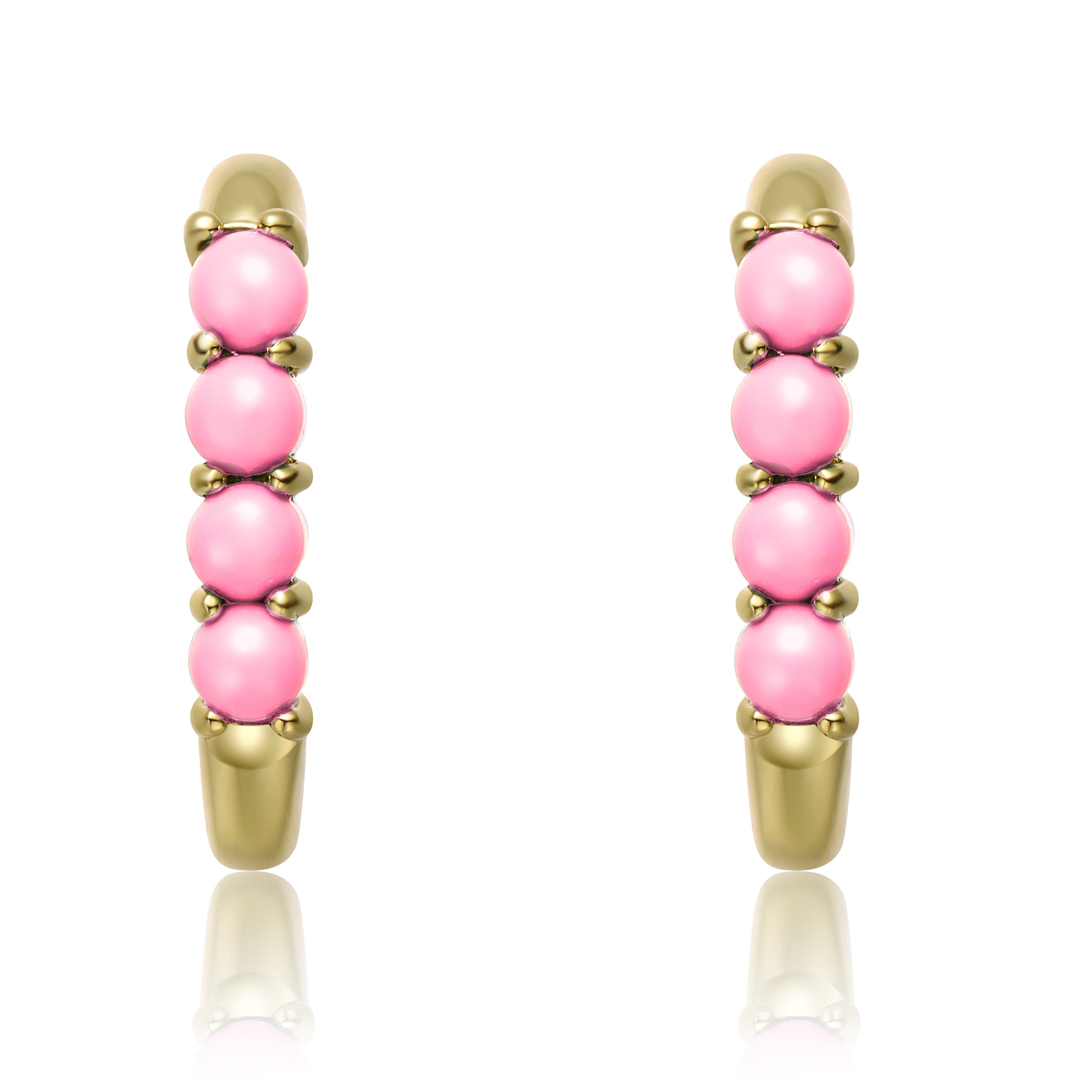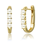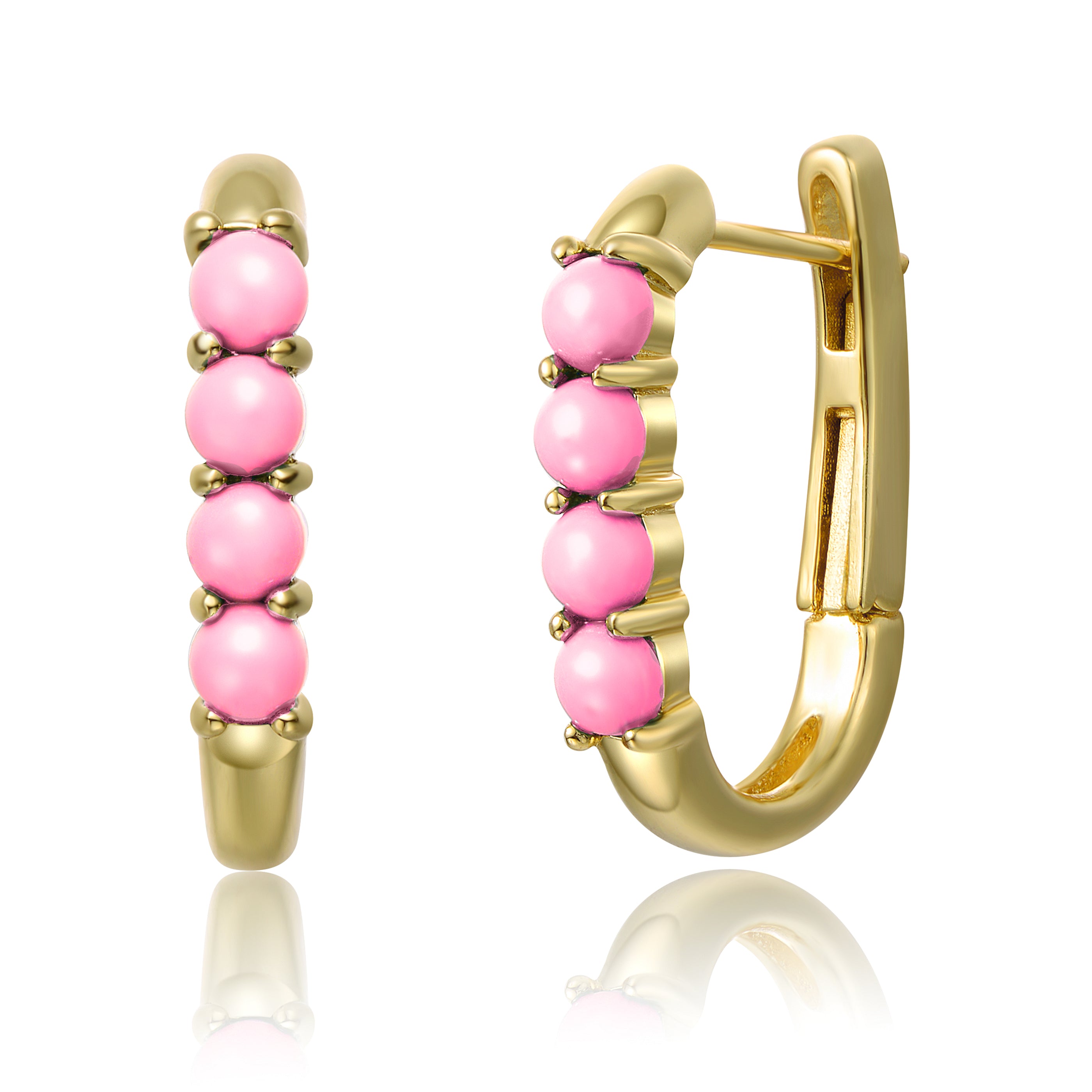 Sterling Silver 14k Yellow Gold Plated with Nano Turquoise Beads Oblong U-Shaped Latch Back Hoop Earrings. These eye-catching sterling silver 14k yellow gold plated u-shaped earrings feature round buffed nano turquoise beads in shared prong settings, giving them a rustic appearance that meets modern trends. These oblong hoop earrings have secure latch backs with posts, creating ease when worn. Wear these pretty gold hoops on their own, or pair them with small studs, dangle earrings, and mini hoops for a different look each time.