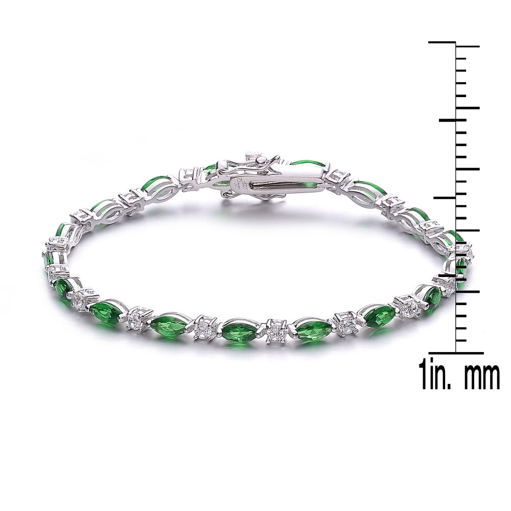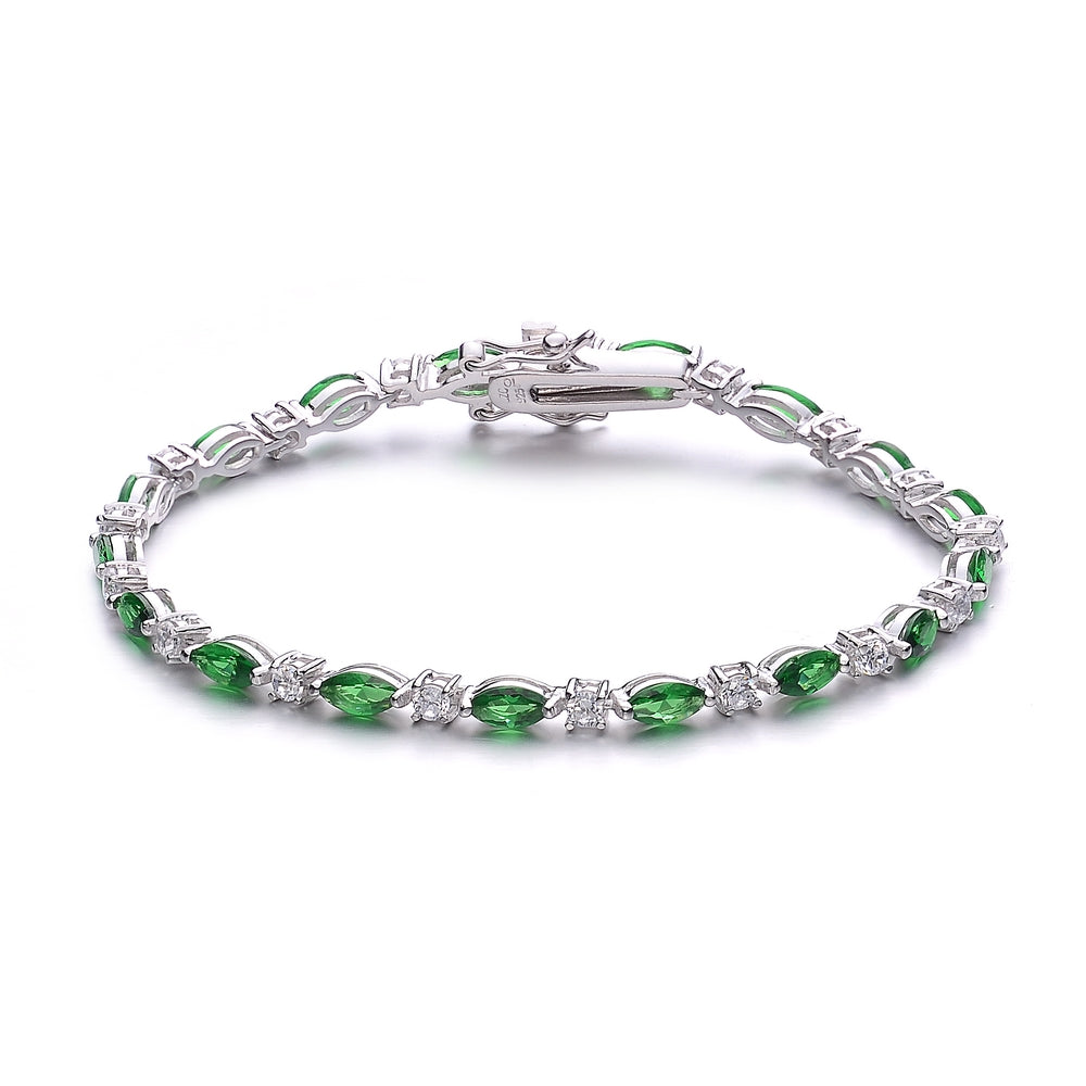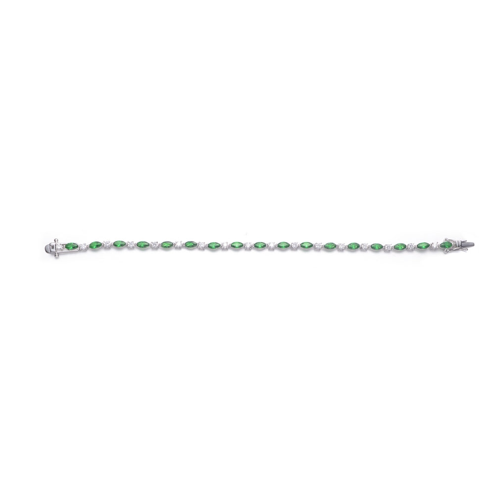 Graceful and eye-catching, this fashion bracelet features rich green cubic zirconia stones set against a sterling silver base, accented by alternating clear stones for added brilliance. The balanced design delivers a refined yet bold aesthetic, perfect for elevating both casual outfits and elegant ensembles.