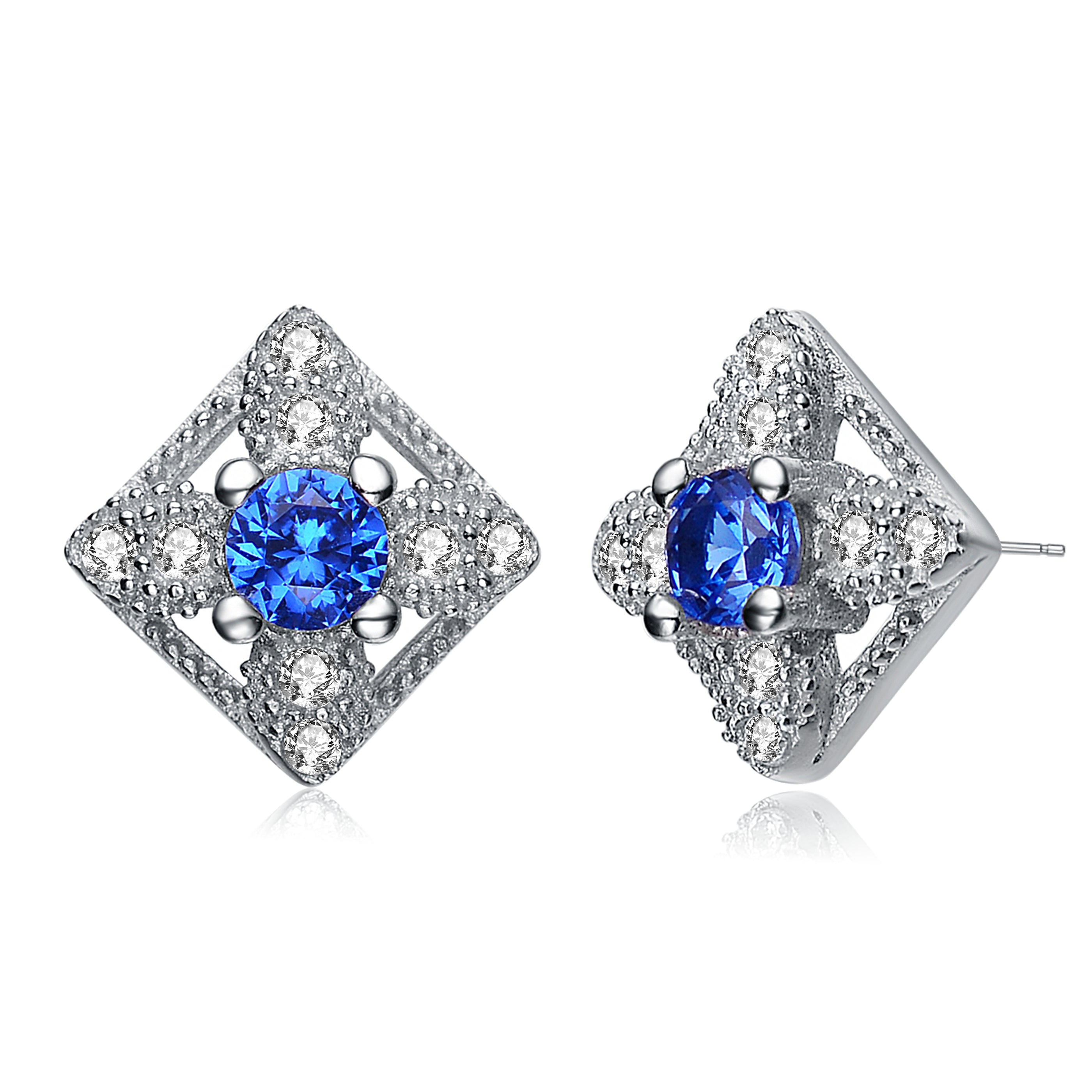 There is no missing the bright blue cubic zirconia solitaires at the center of these sterling silver button earrings. These earrings make a great everyday piece.