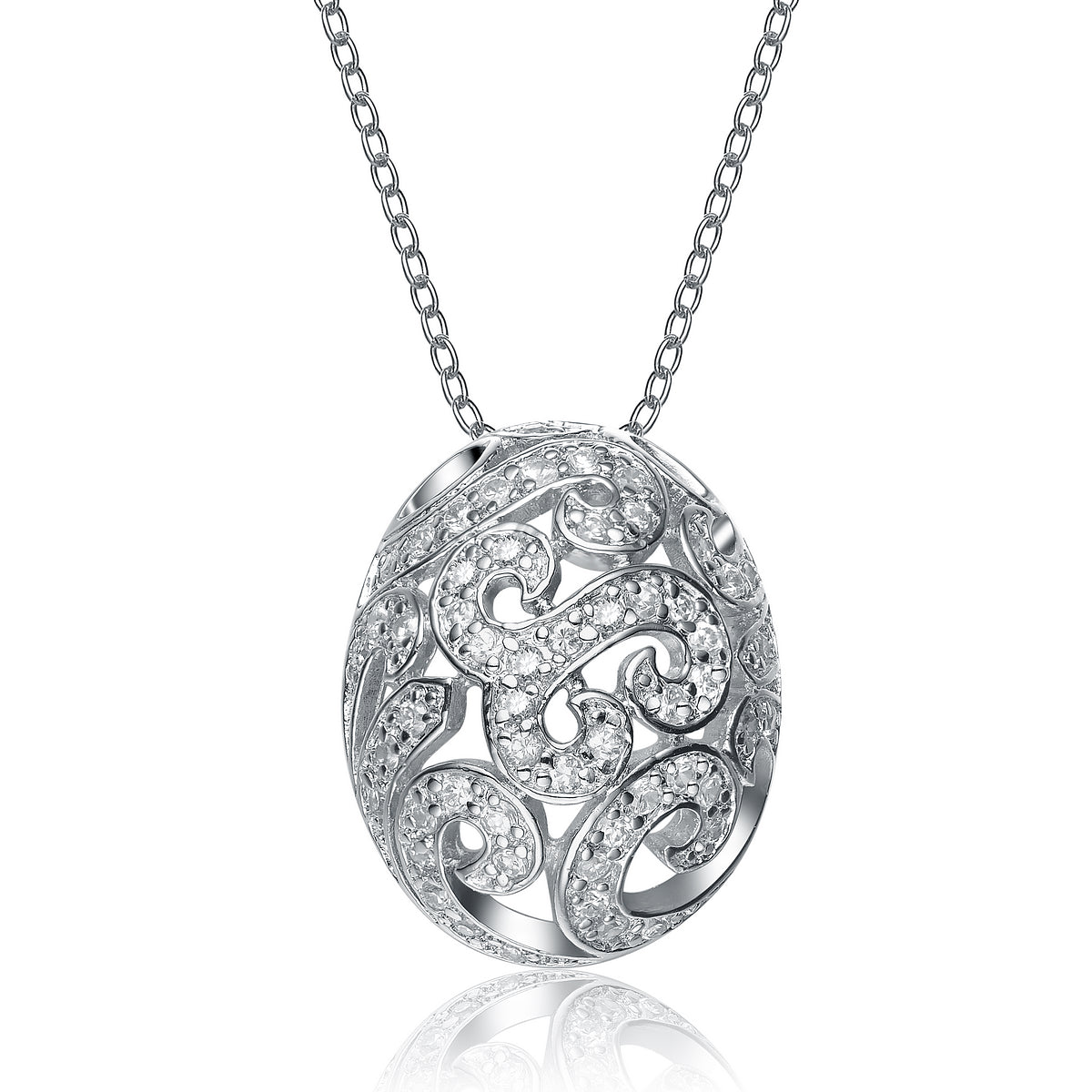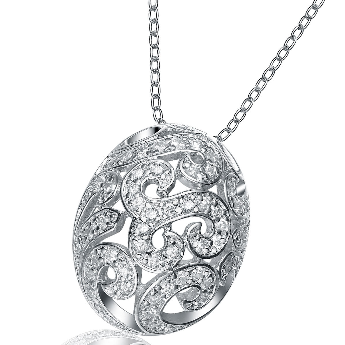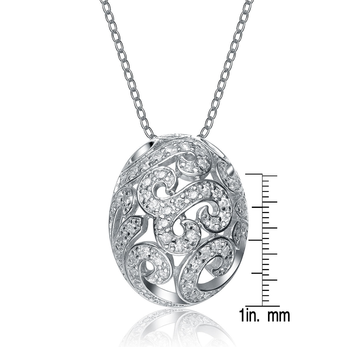 This vintage style sterling silver necklace is great for daytime or nighttime looks. Clear cubic zirconia stones are carefully placed to create an intricate pattern.