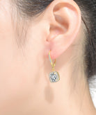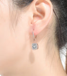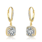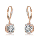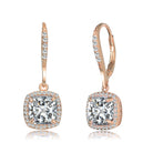 Stylish Sterling Silver Square Drop Earrings. These feature a charming clear radiant cubic zirconia accented with clear round cubic zirconia stones. Crafted in Sterling Silver with Gold Plated and secure with leverback closure. Available in gold and rose gold plating.