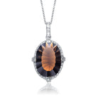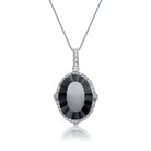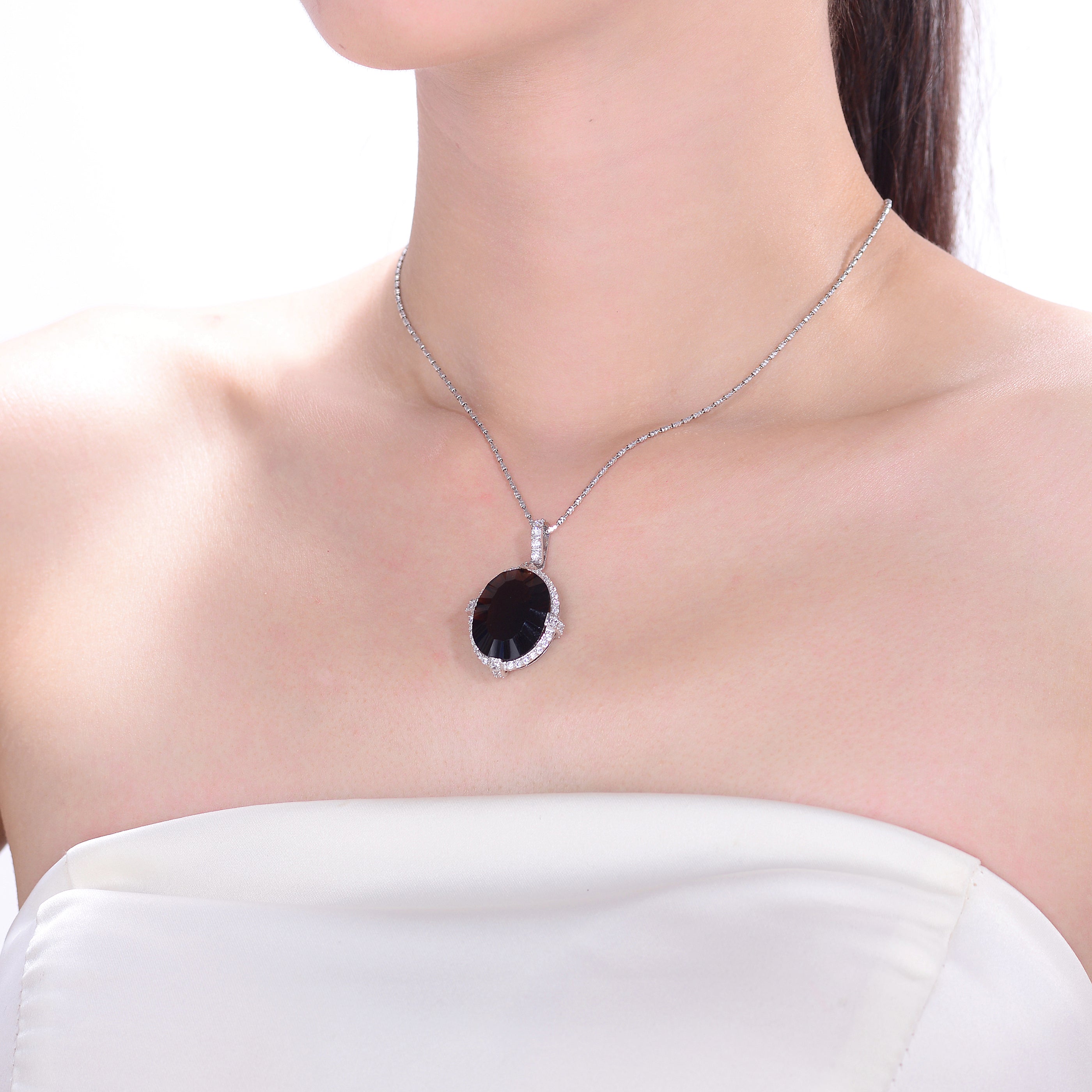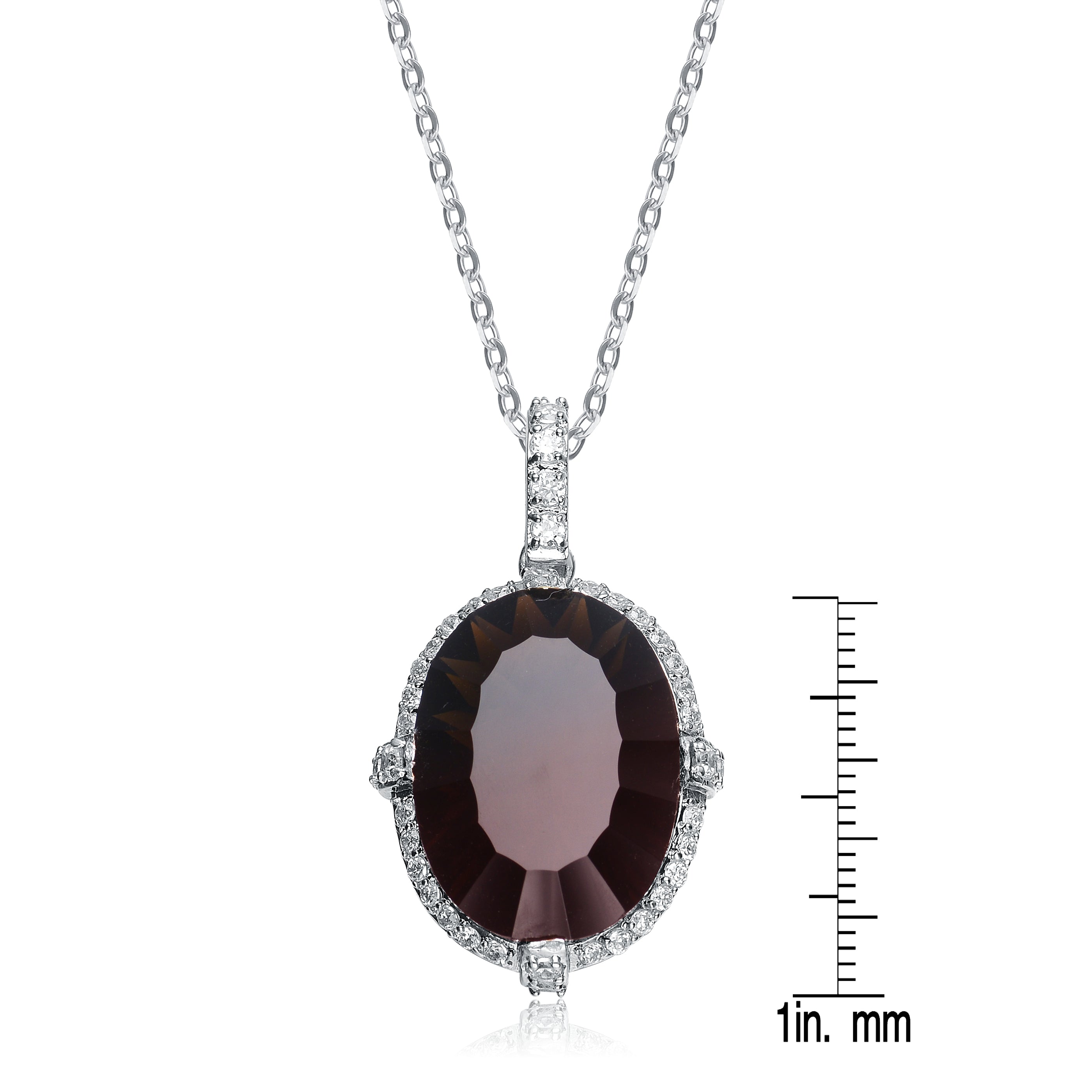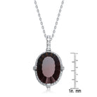 The combination of the deep burgundy cubic zirconia set within a decorated outline of white cubic zirconia and sterling silver reeks of class & style. This necklace will work well to dress up your outfit for a special evening.