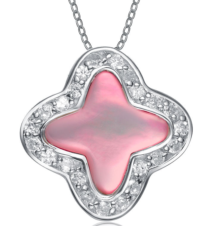 Simple yet elegant, this necklace merges both colour and design harmoniously.The play of the Pink cubic Zirconia set amidst an outline of white cubic zirconia and Sterling Silver produces a stunning effect that would suit anyone