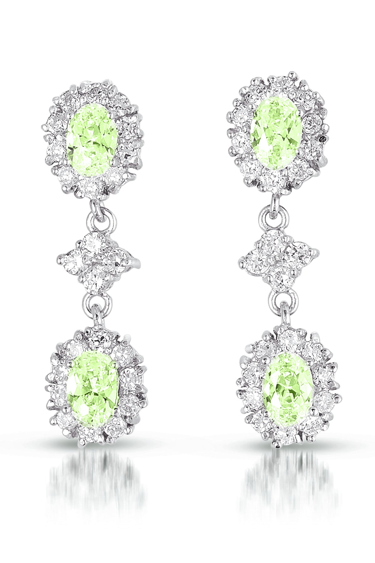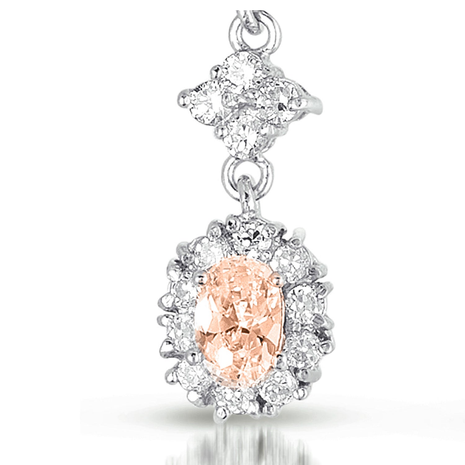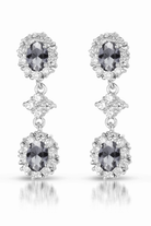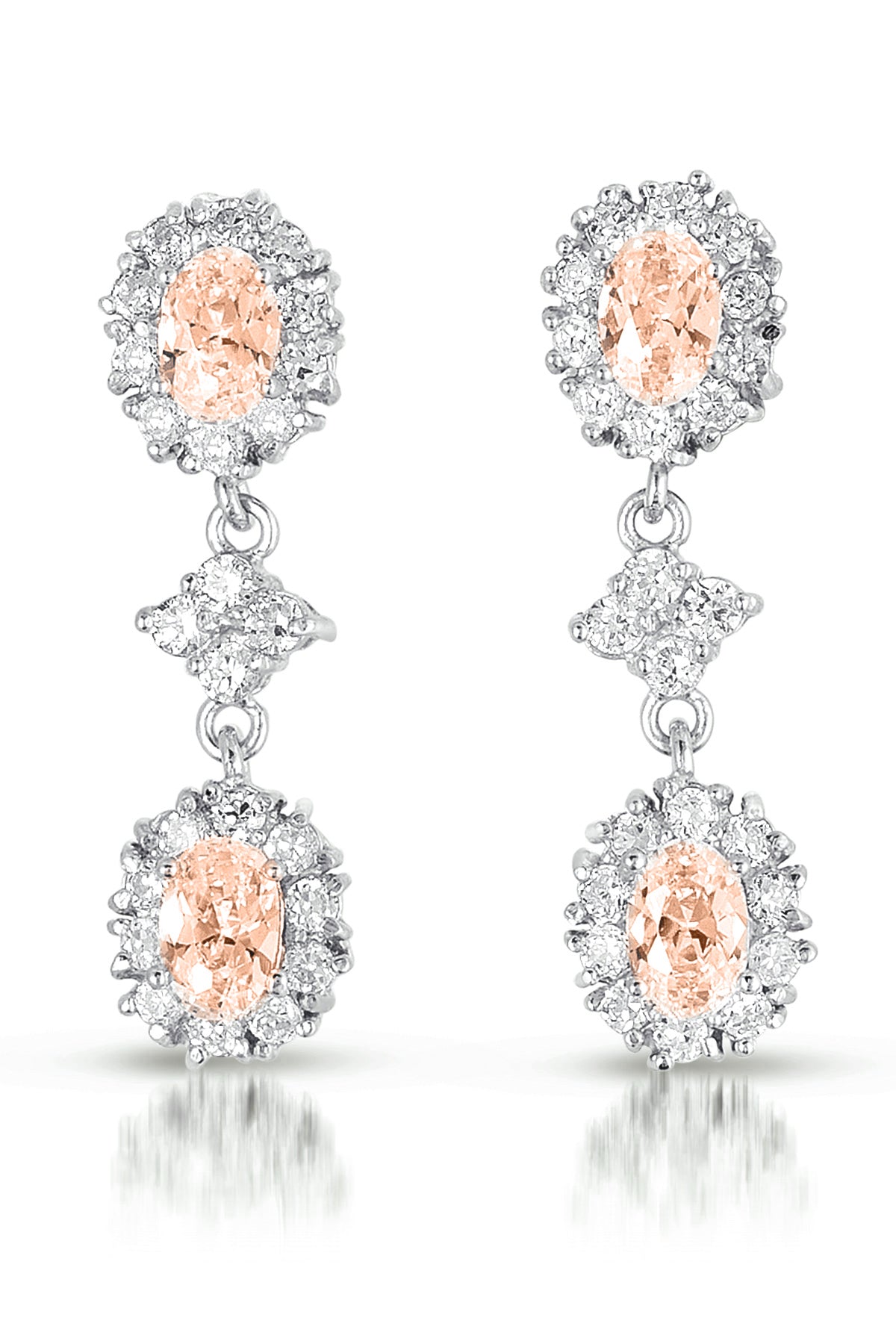 These dramatic and formal drop style earrings are beautiful and classic. They feature two spheres encrusted with white and champagne cubic zirconia.