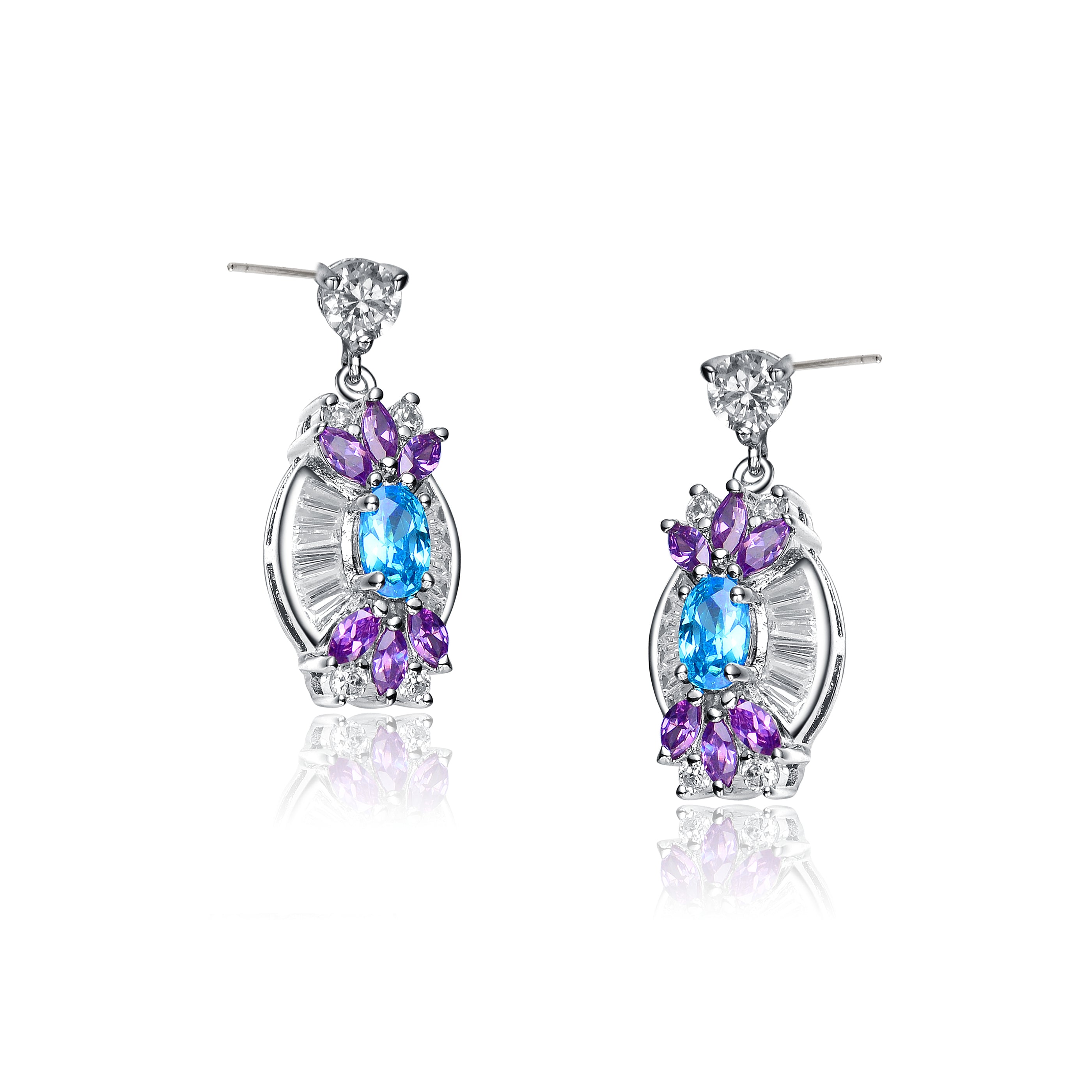 What is more beautiful that these two shades together? This set features blue teardrop stones with purple studs on top and bottom, all placed atop a white teardrop.