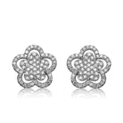 Sterling Silver In White Gold Plating Cubic Zirconia Double flower Stud Earrings