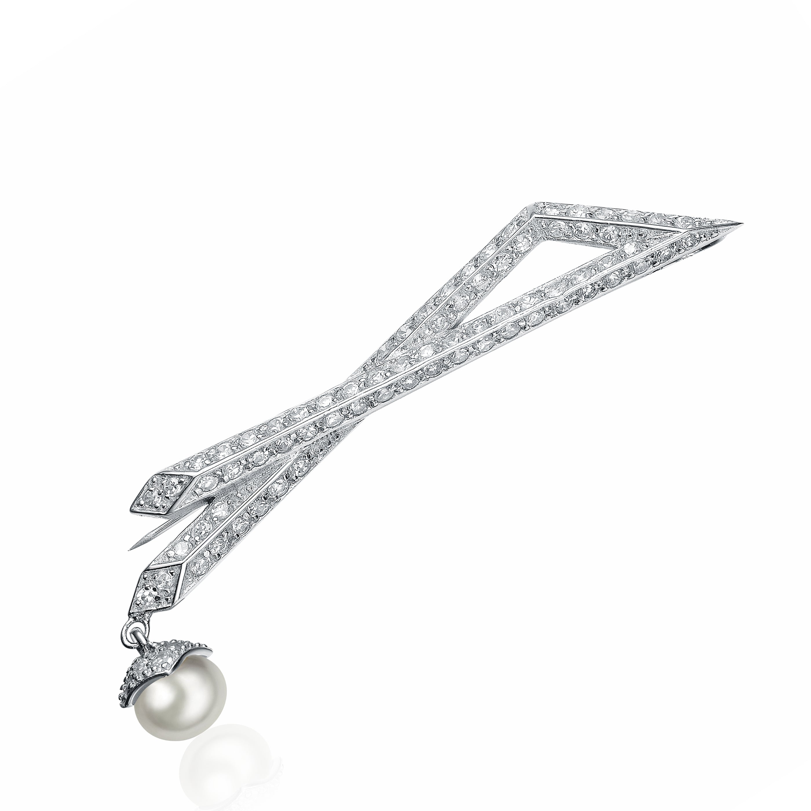 This pin is a perfect addition to any collection. Each piece features a geometric pattern topped off with a delicate white faux pearl.