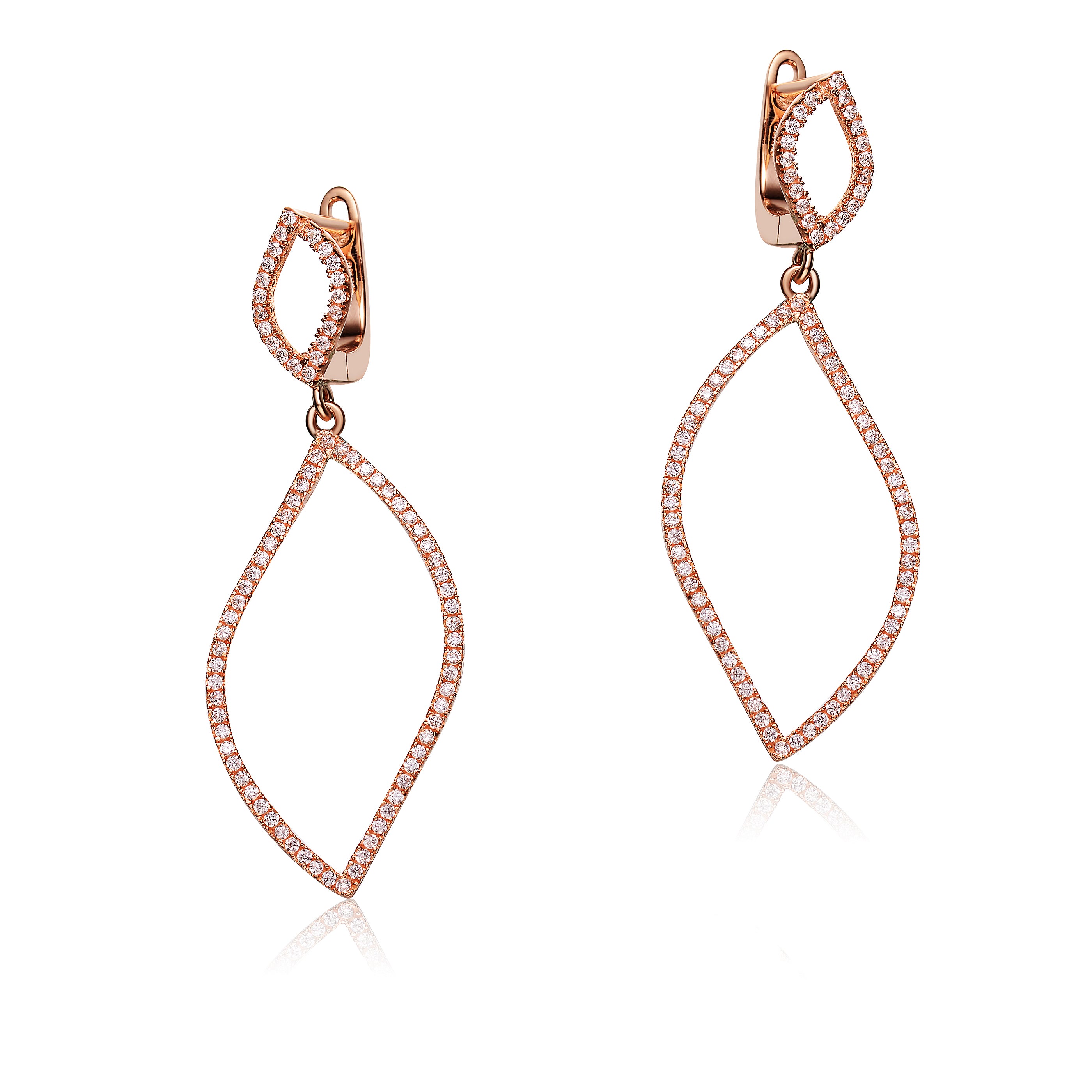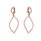 Get ready to add a little shimmer to any outfit with these sterling silver rose gold dangle earrings. Clear cubic zirconia stones are used to create and open leaf shape.
