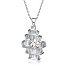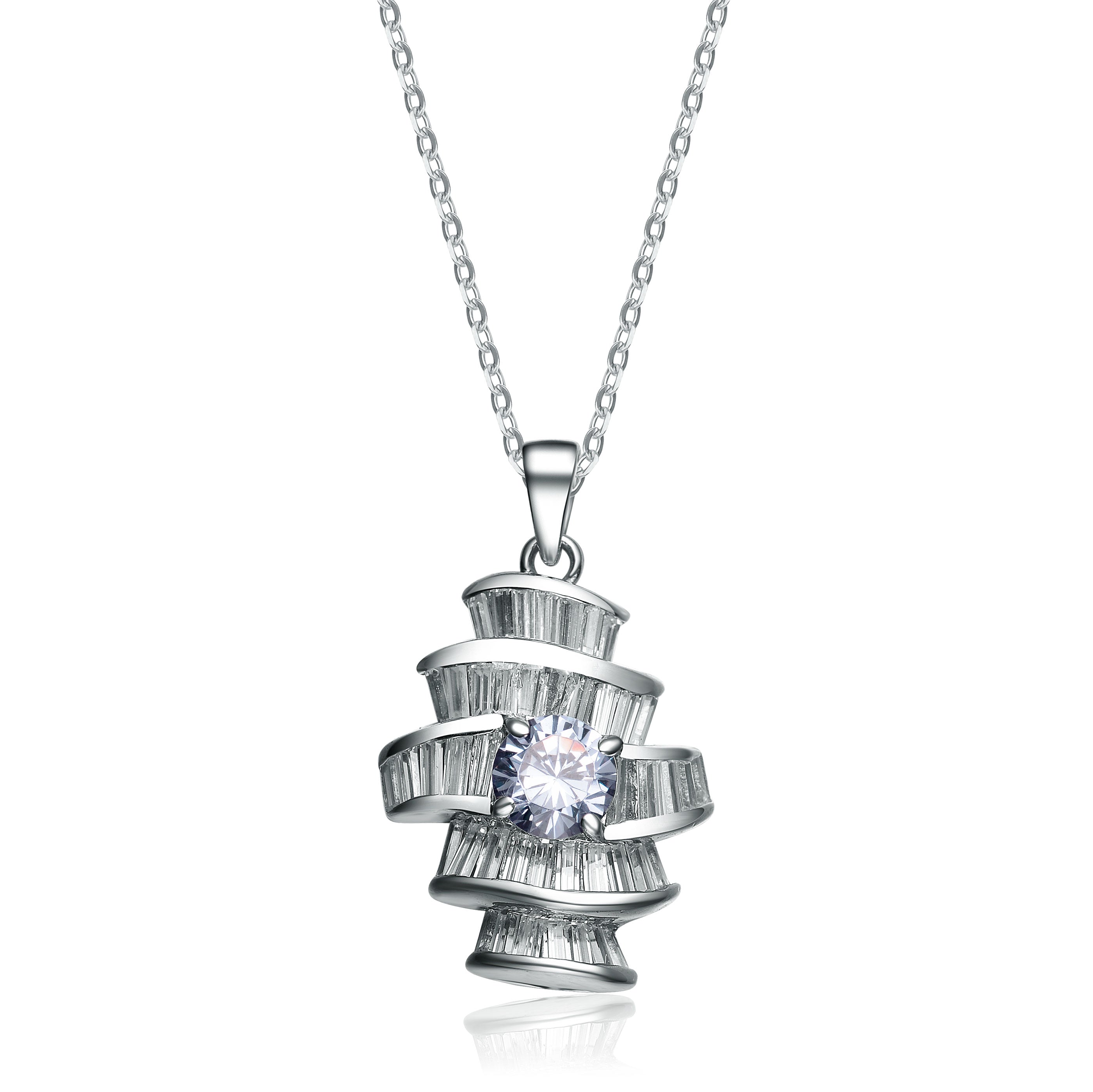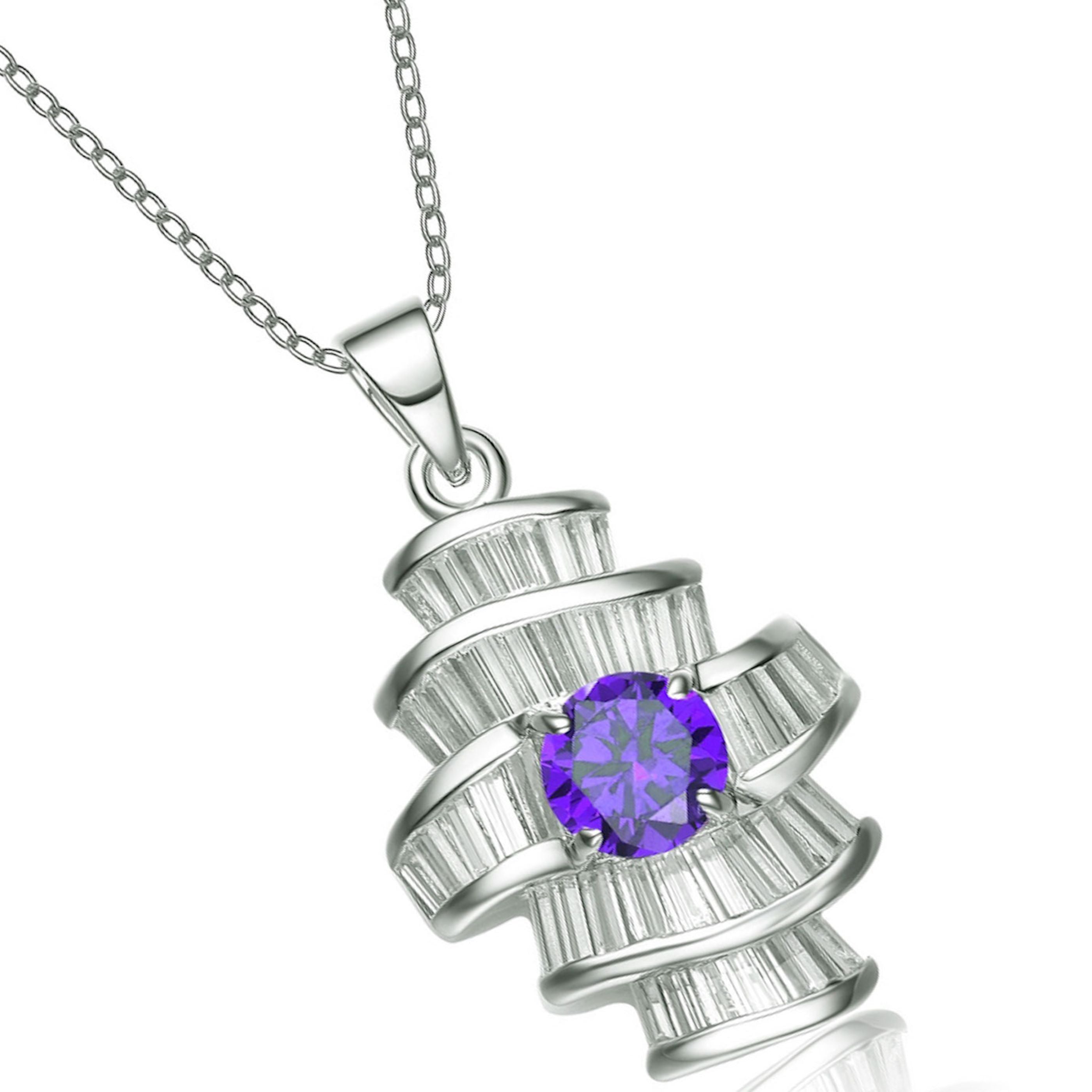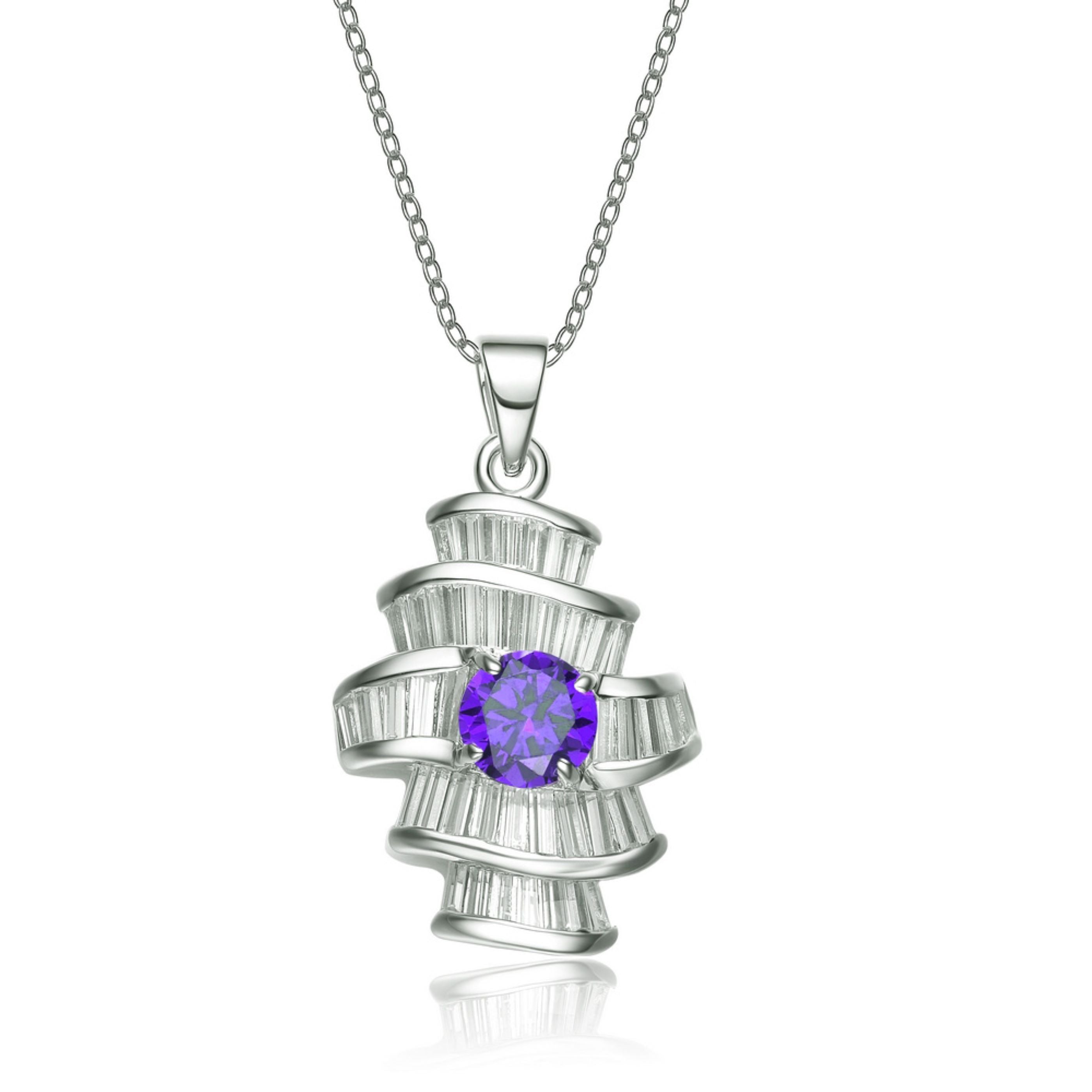 This less traditional sterling silver necklace is a great statement piece to own. At its core is a captivating circular pink cubic zirconia stone.