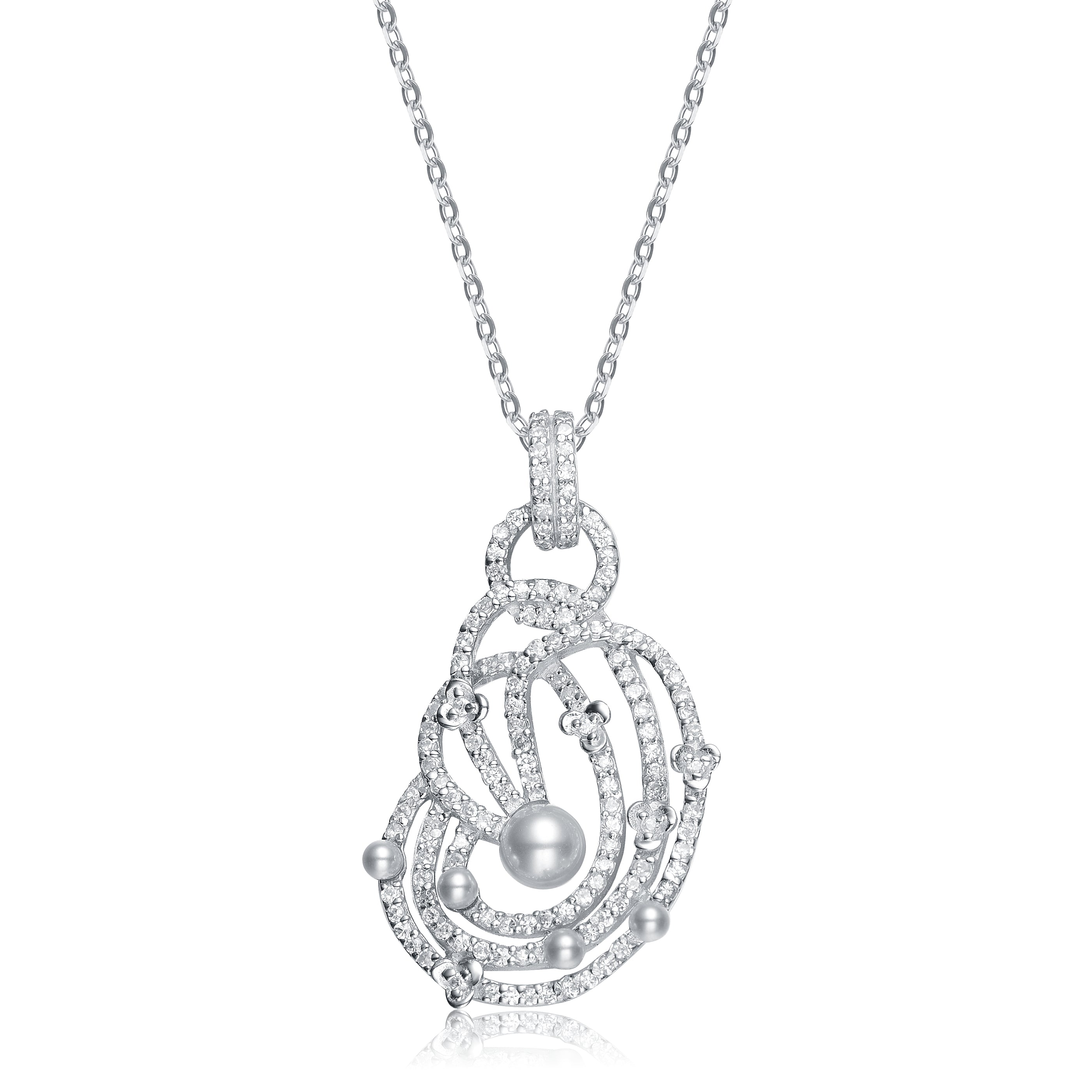 Unique and elegant, this piece is perfect for any style. It is constructed from sterling silver and features cz stones and faux pearls.