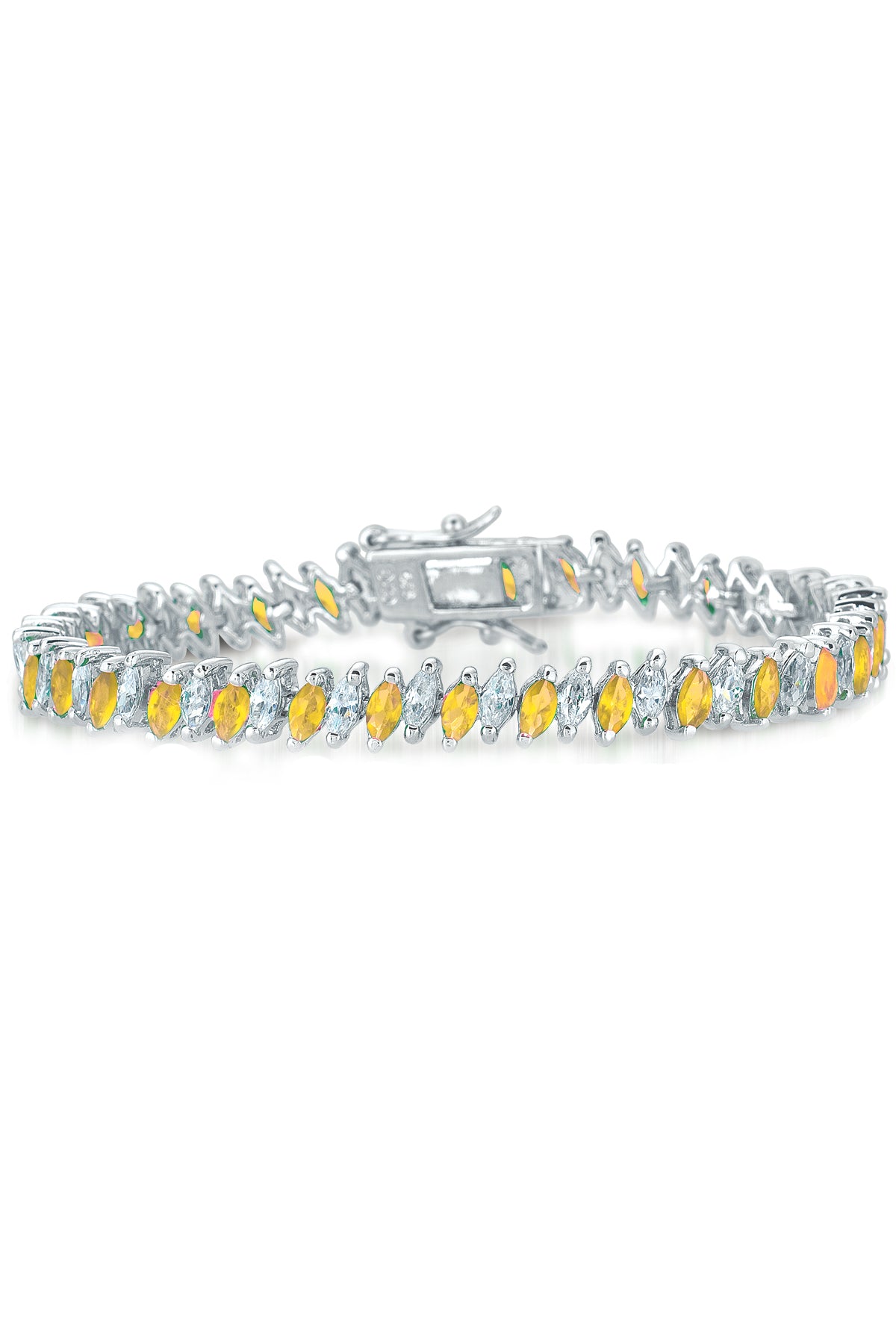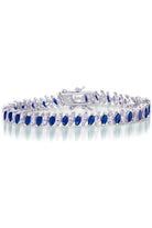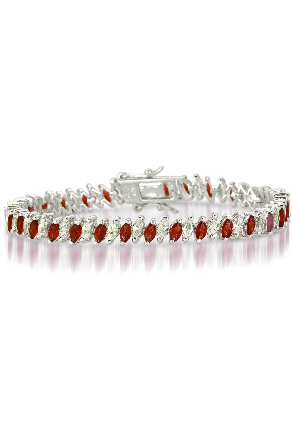 Fun yet elegant, this sterling silver bracelet is ideal for a night on the town. The stacked style design is uniquely constructed with with a box closure. Available in Red, Blue and Green color.