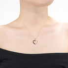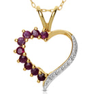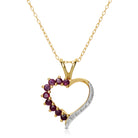 Love rubies? Then don’t miss out on this sterling silver necklace that features a trail of rubies that accent a heart shape.