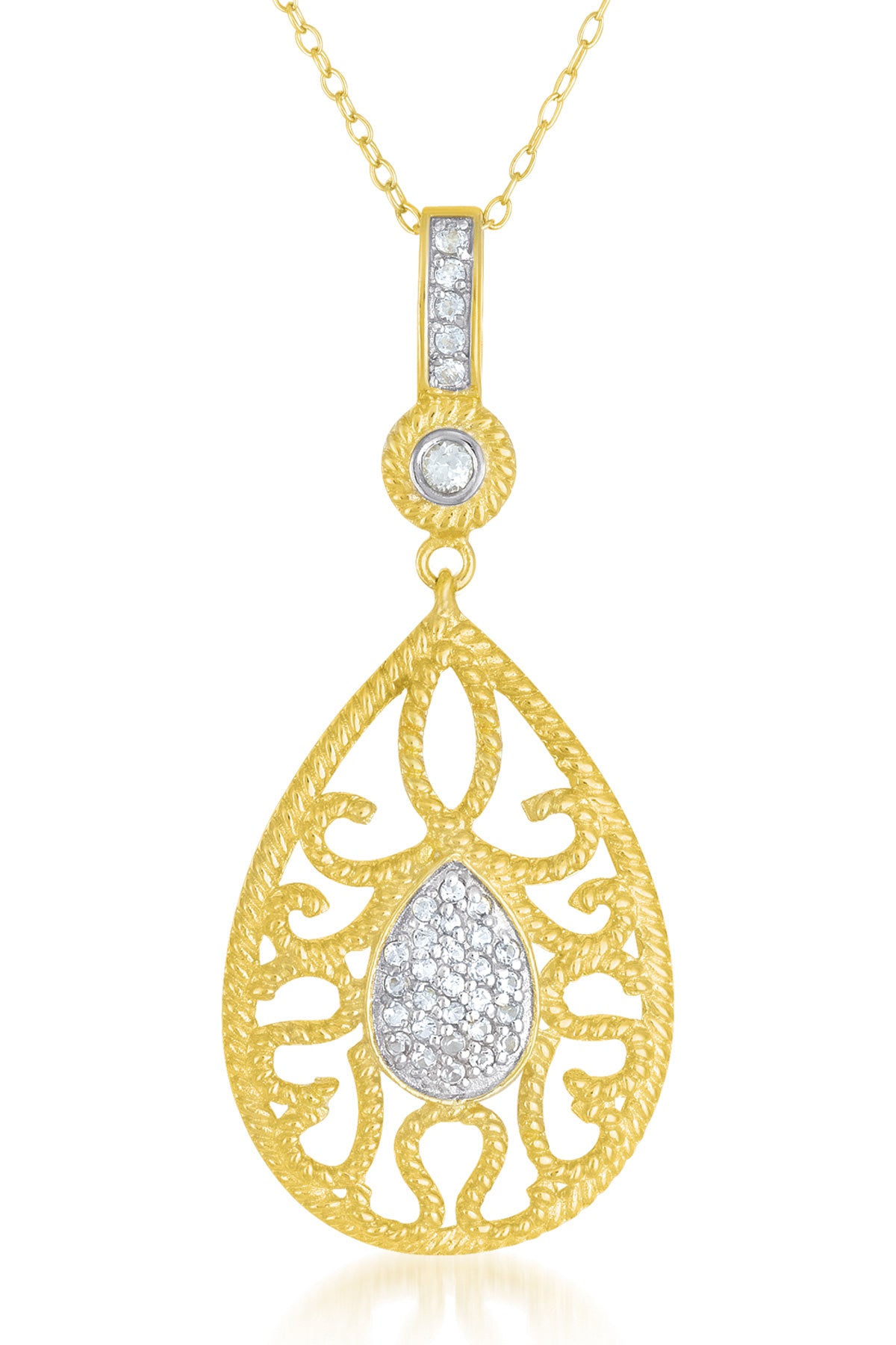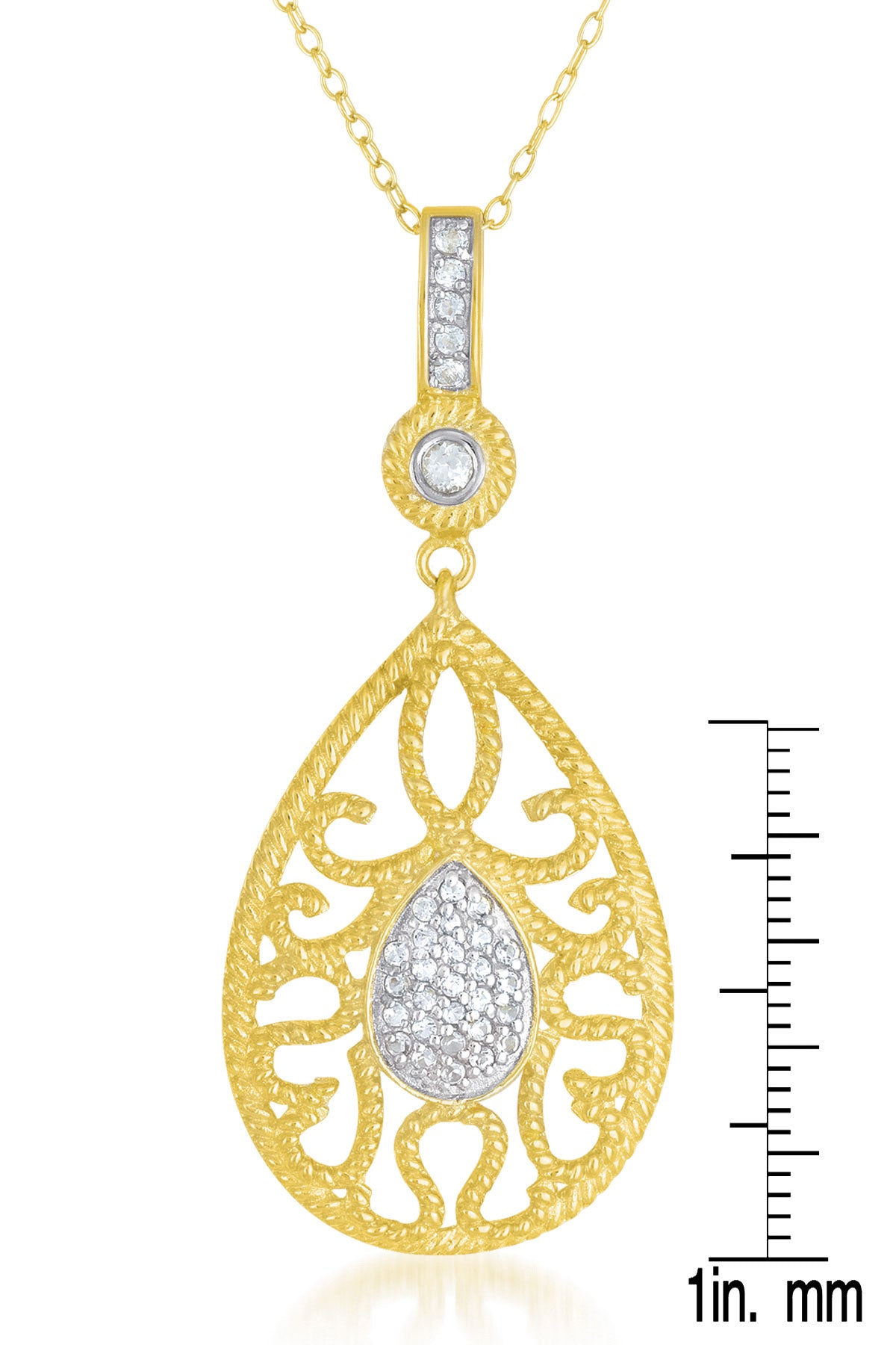 Intricately-designed with a clear white cubic zirconia stones and gold wavy designs, this sterling silver pendant will be a stunning addition to your stylish wardrobe. Designed to please the eye with an elegant design, you will surely wear this on your next formal event.Β