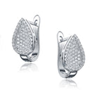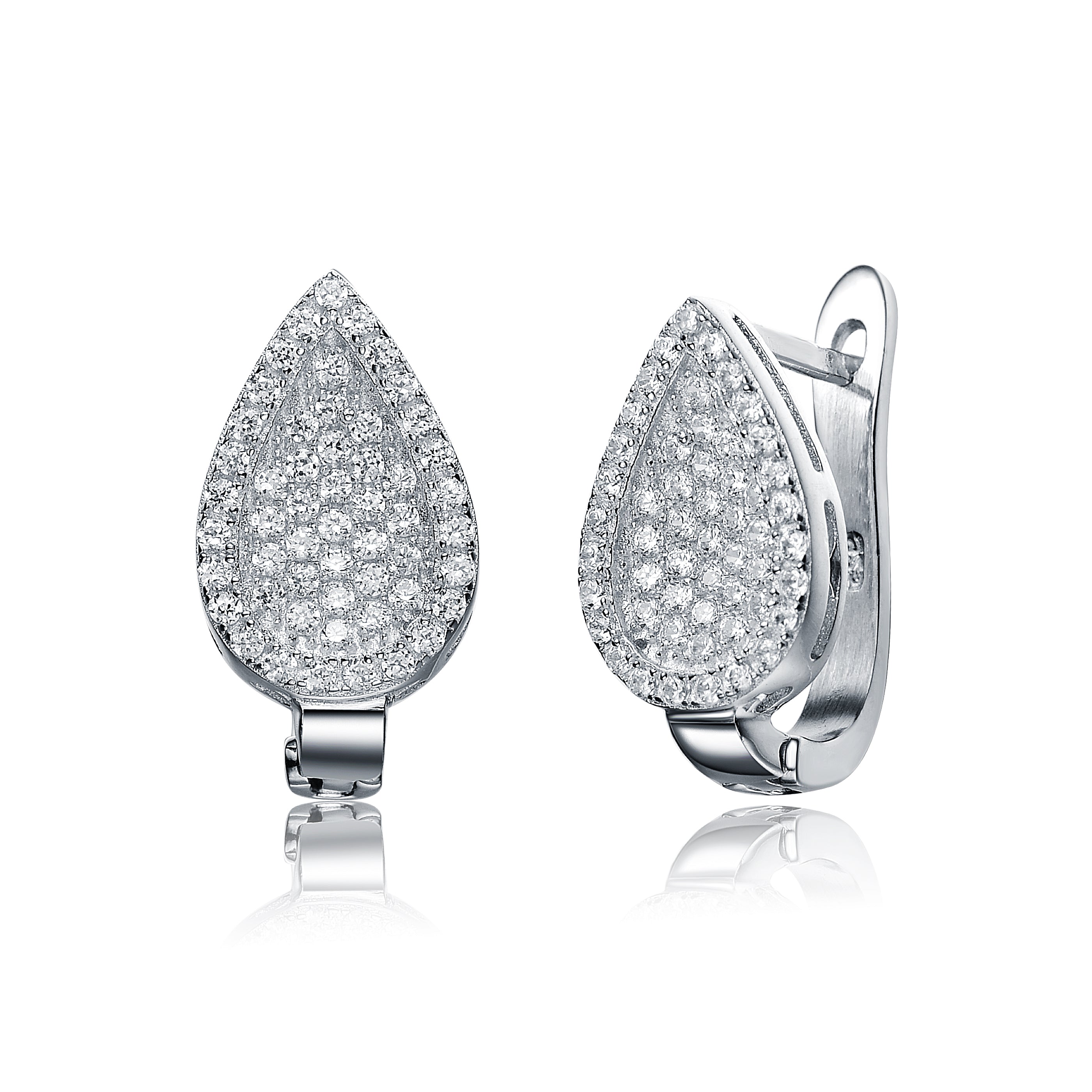 These pear shaped earrings featuring pave clear cubic zirconia stones are magnificent. Wear these earrings out to dinner or even to the office.