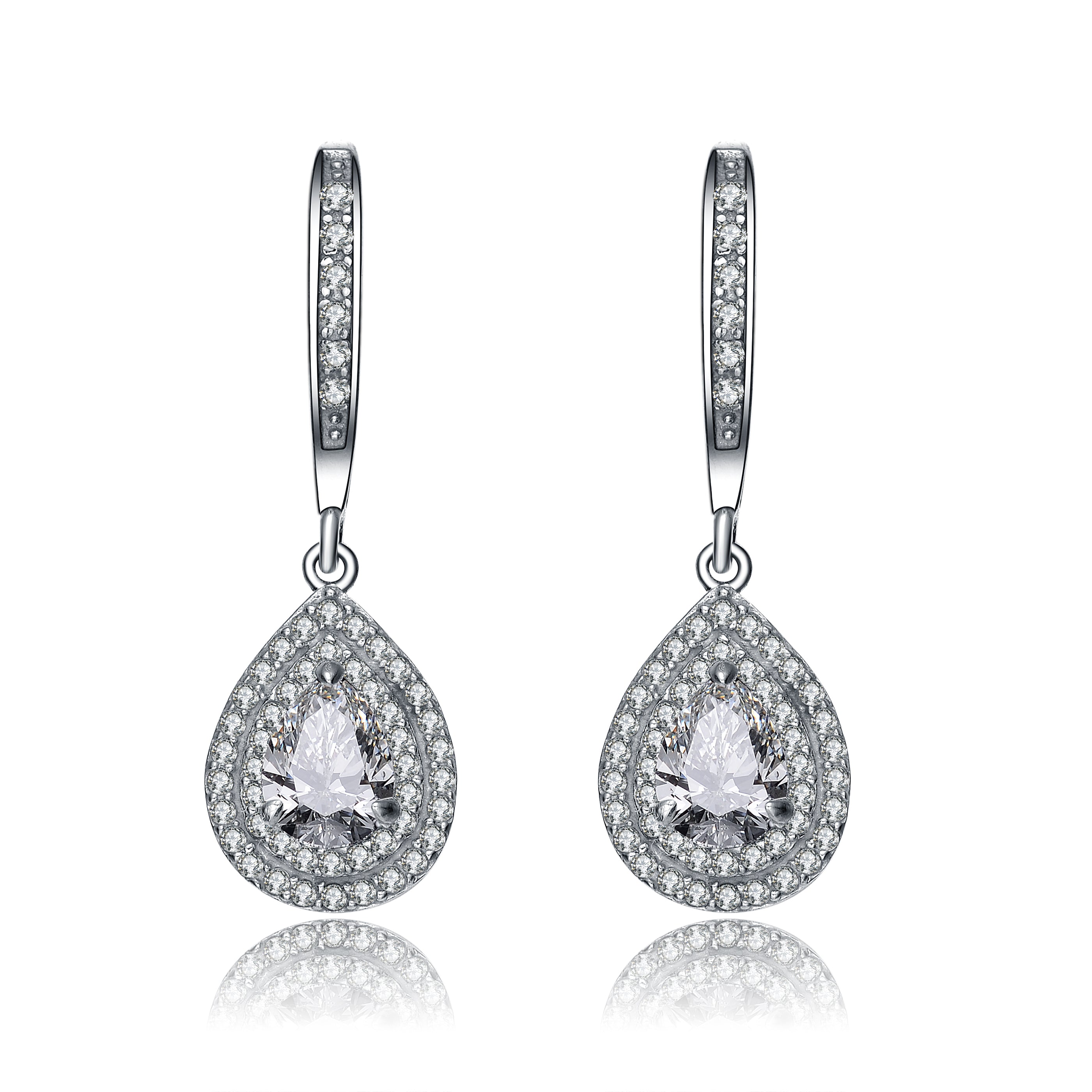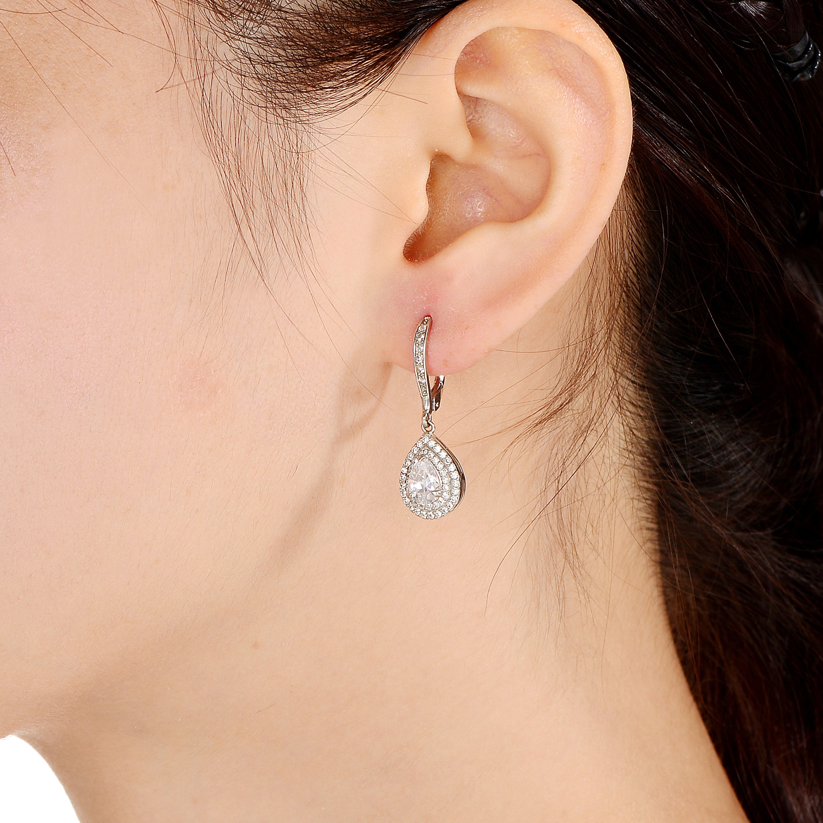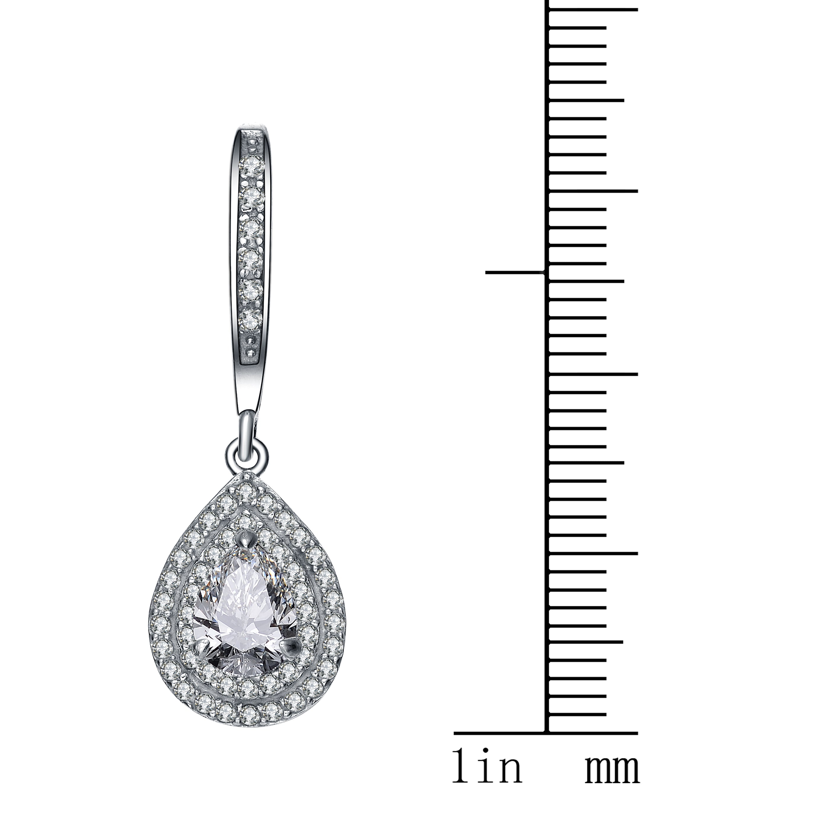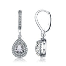Sterling Silver Pear Drop Cubic Zirconia with Double Halo Earrings
