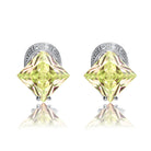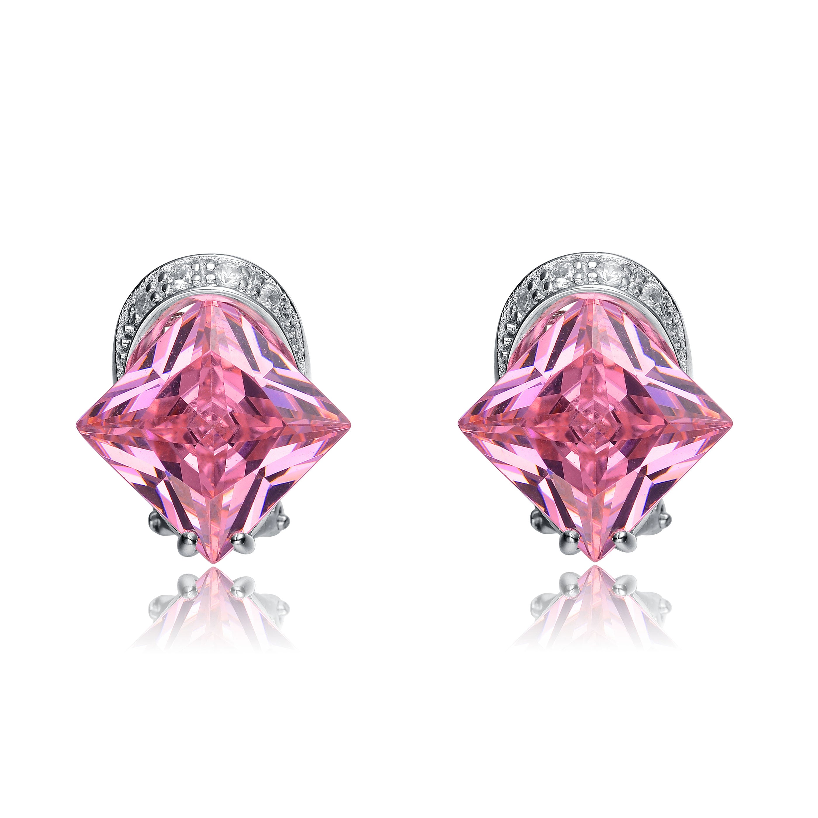 This sterling silver earring is hand-crafted to perfection with its beautiful pink-coloured, cross-shaped cubic zirconia stone with dramatic design edges. The design on the top of the stone looks like a modern crown while the bottom design looks like a delicate skirt; has a traditional lock design.