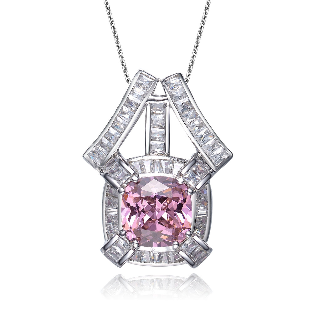 ntroducing the Déco Core Geometric Pink Pendant Necklace, a masterpiece in sterling silver. This striking piece features a meticulous geometric design adorned with exquisite cubic zirconia stones in both pristine white and enchanting pink. The interplay of shapes and hues creates a captivating allure, making it a versatile accessory that effortlessly transitions from casual chic to refined elegance. Elevate your style with this unique pendant, showcasing a perfect balance of craftsmanship and sophistication.