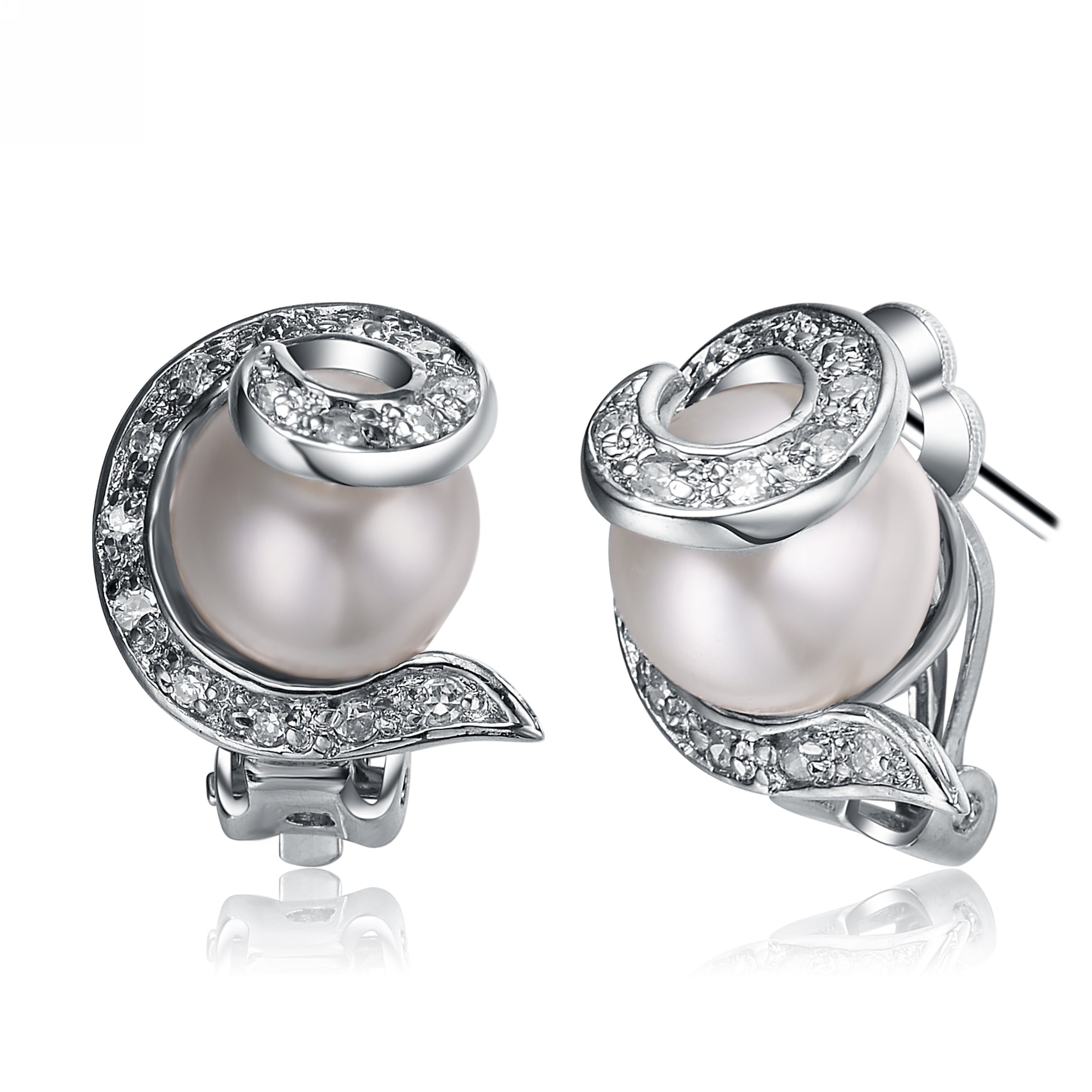 Fall in love with these delicate and sweet earrings. A rose shape is constructed using a pink pearl, sterling silver and clear cubic zirconia stones.Β