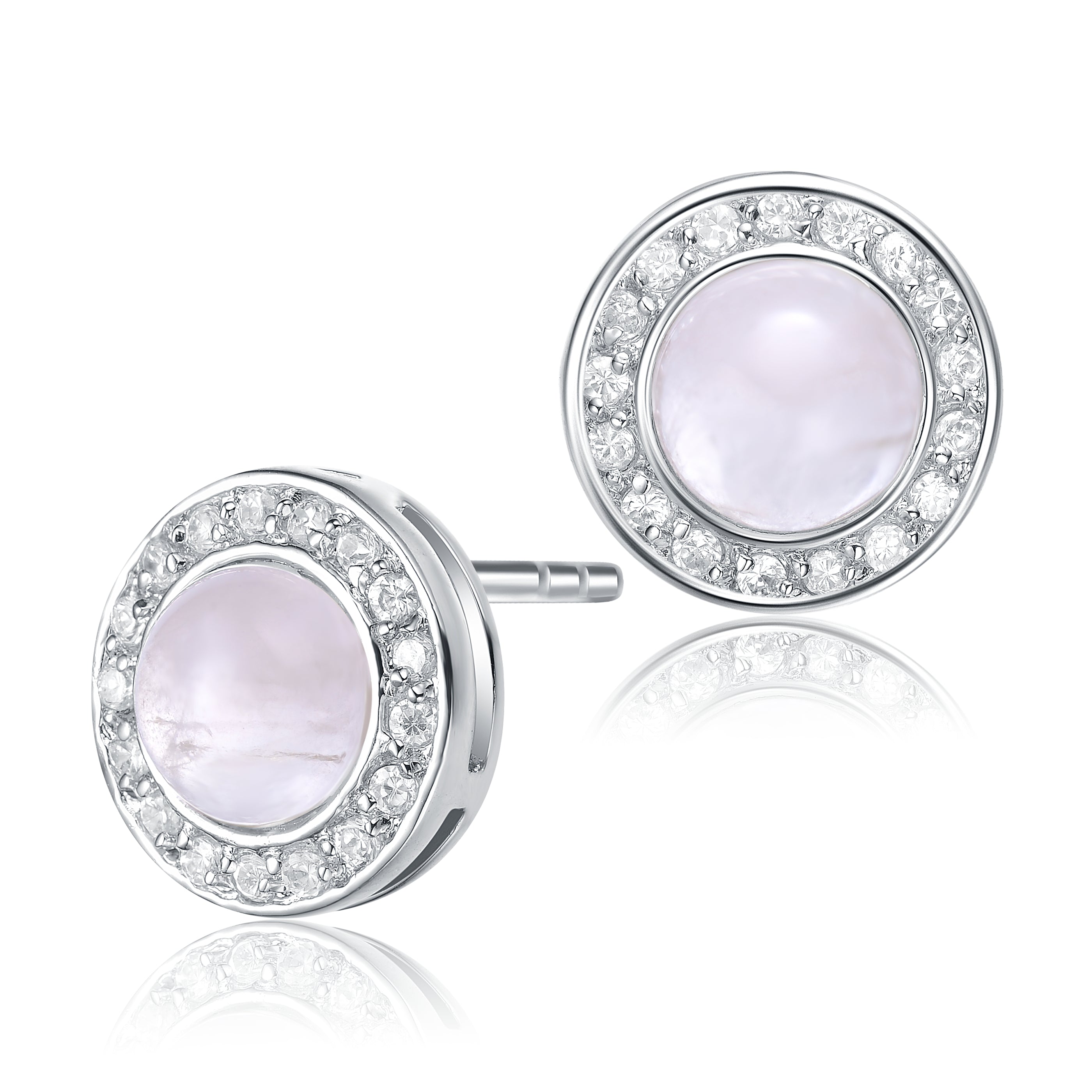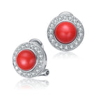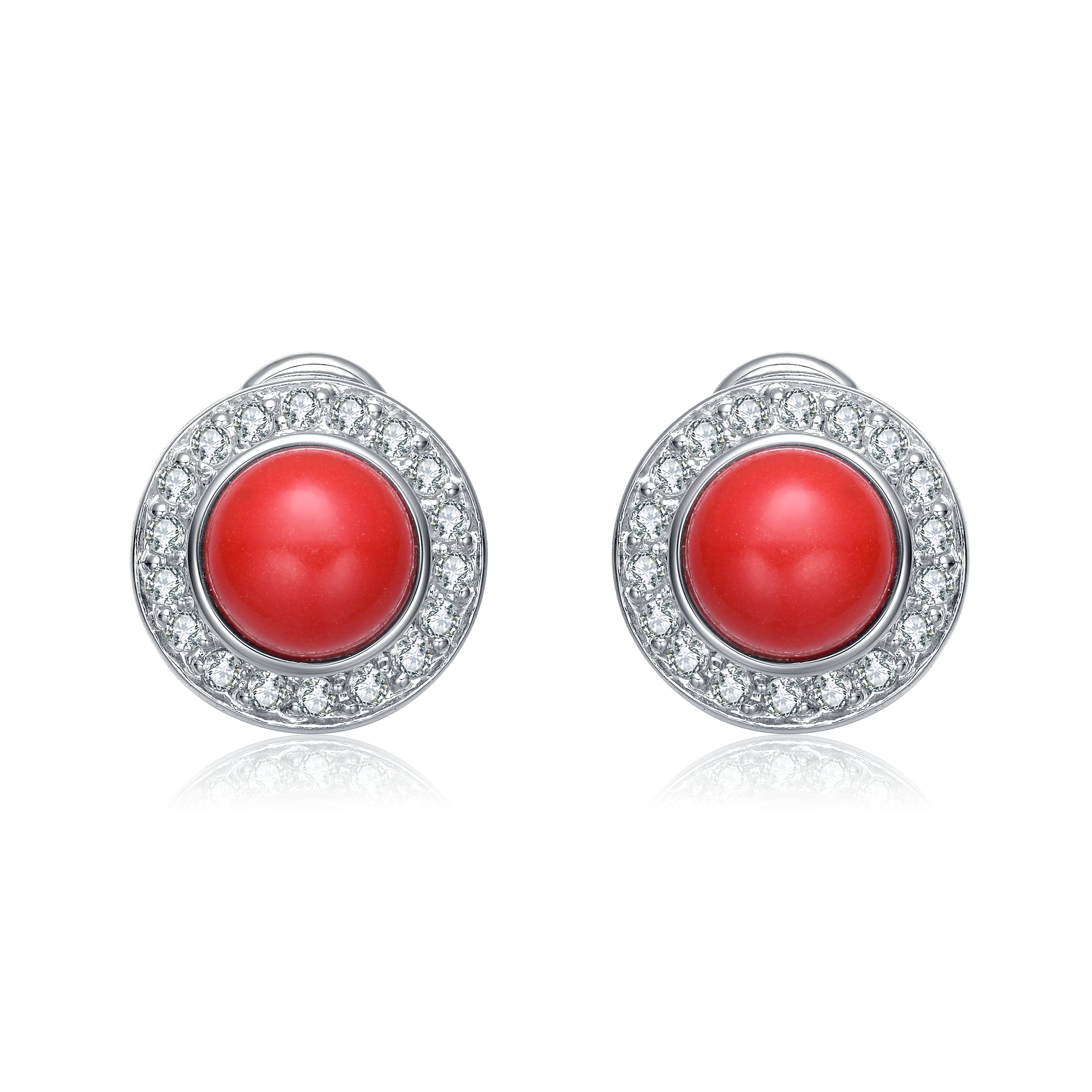 Sterling Silver Red Gemstone Stud Earrings with Cubic Zirconia Halo