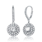 Sterling Silver Rhodium-Plated Double Halo Cubic Zirconia Drop Earrings