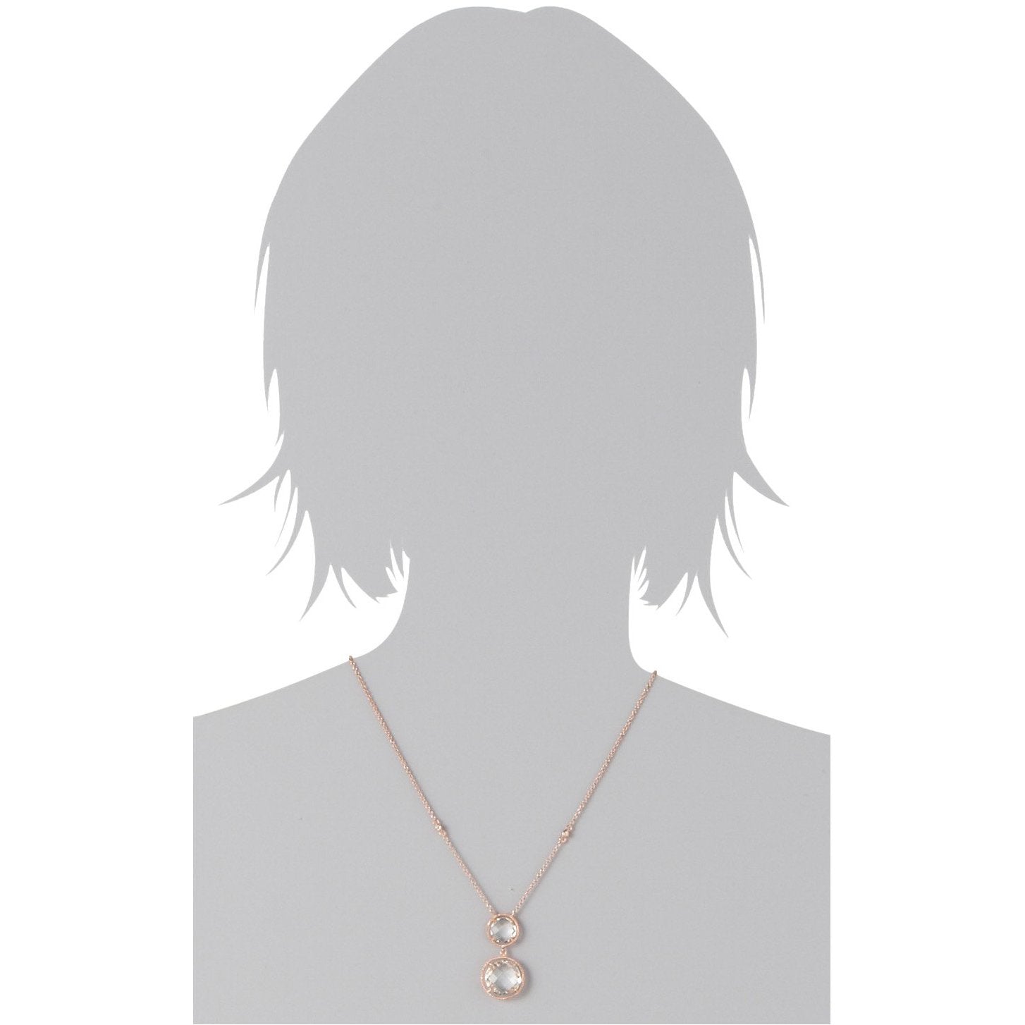 Sterling Silver Rose Plated Double Round Drop Clear Quartz Necklace