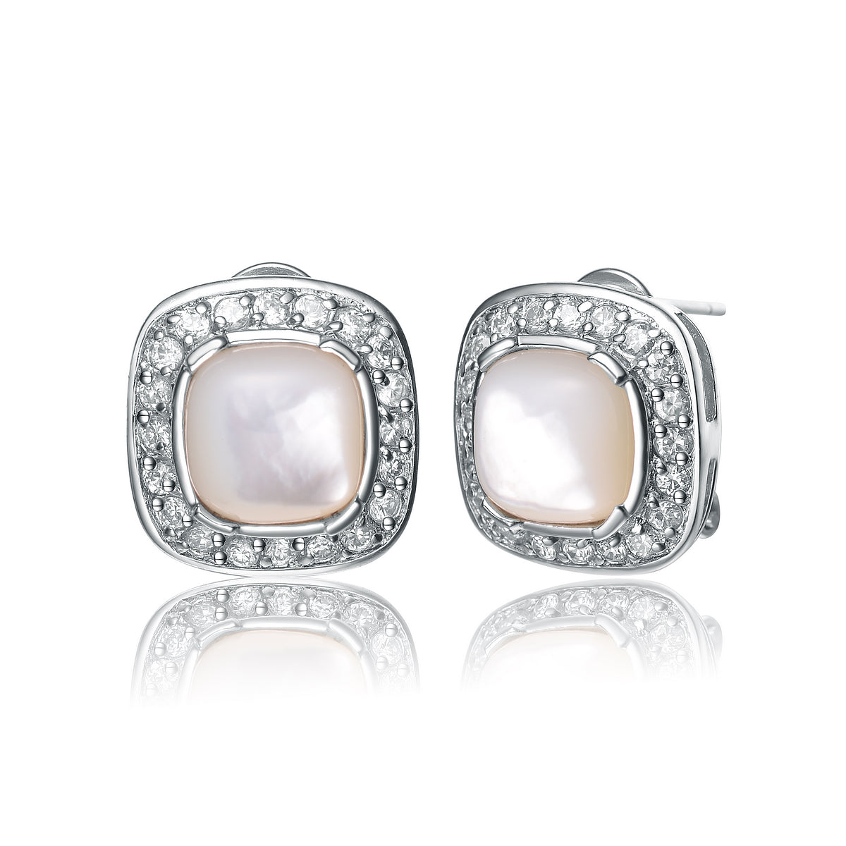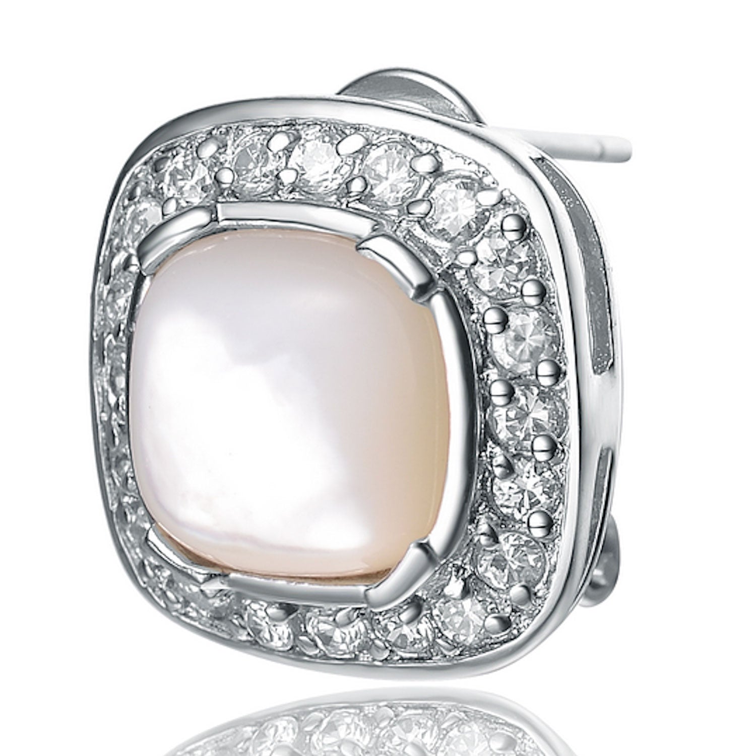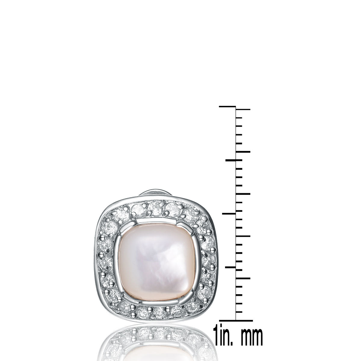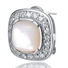 Sterling Silver White and Clear Cubic Zirconia Square Button Earrings