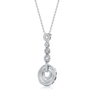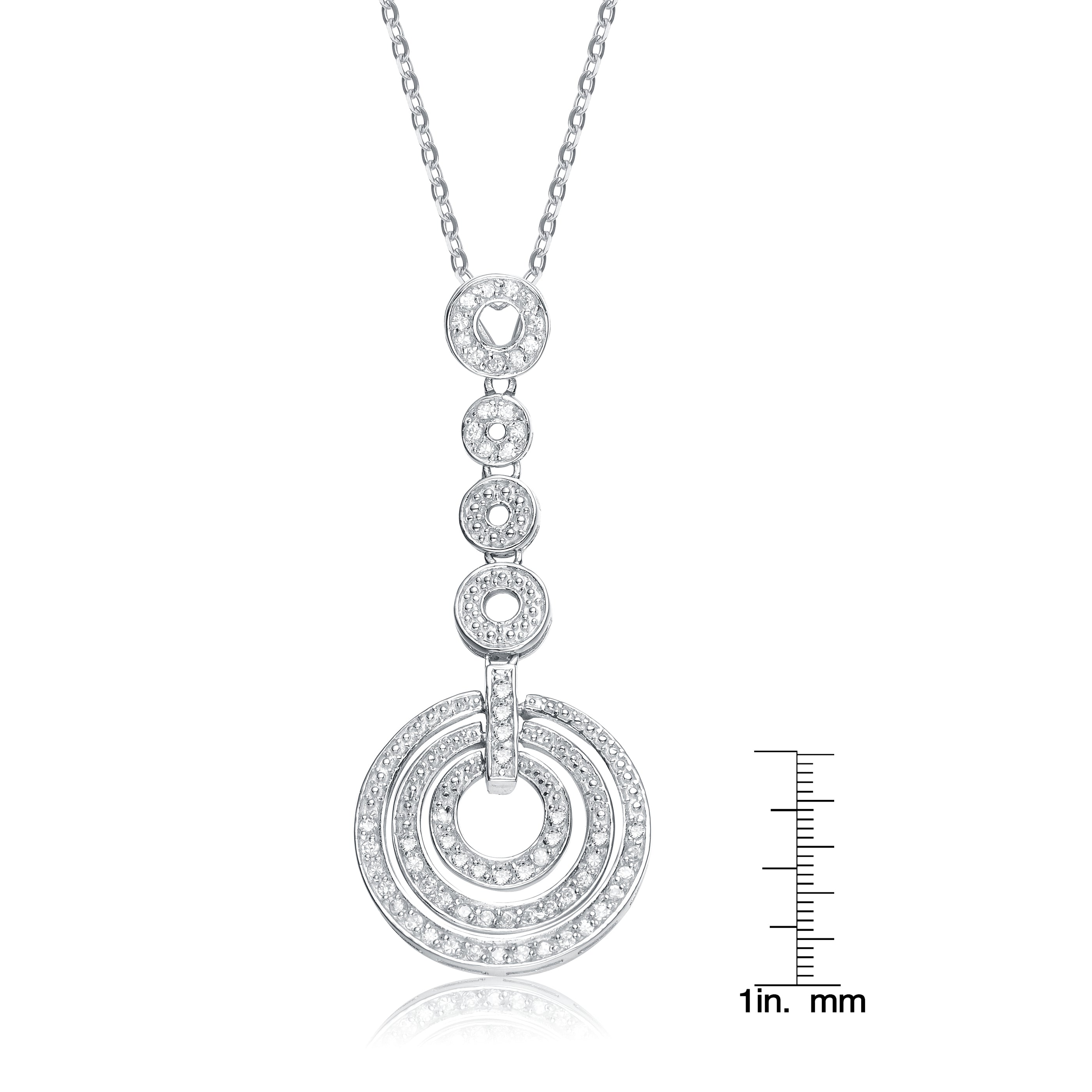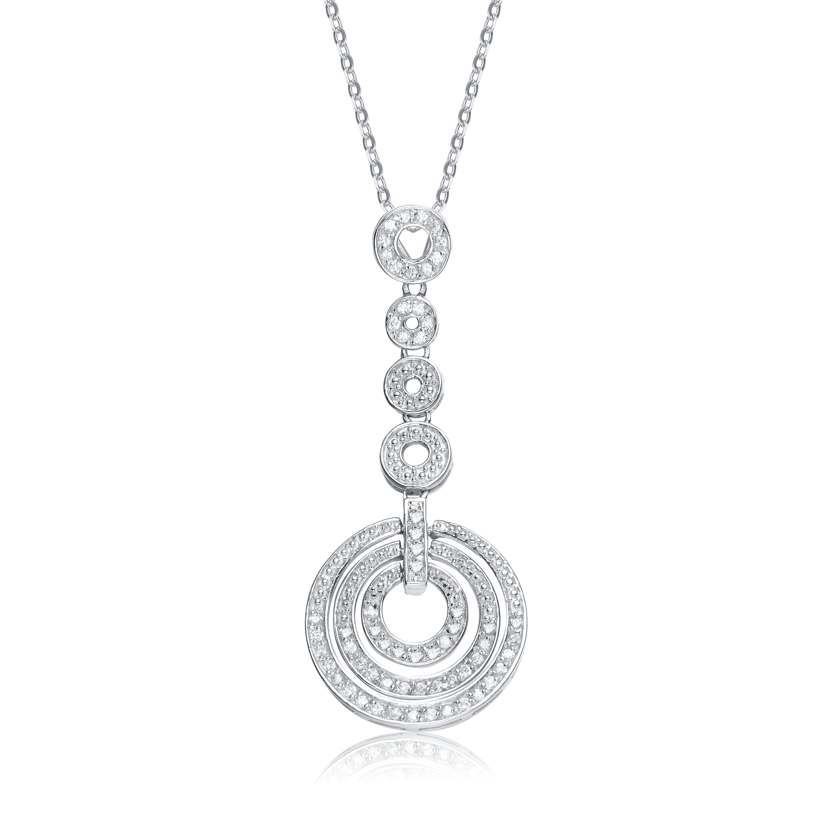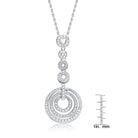 This is an enchanting sterling silver pendant that has a multiple circular design. Looking closer, you can see that each circle and each piece attached is studded with very small white cubic zirconia stones and this looks dazzling from the pendant to the clasp that is attached to a simple silver chain .