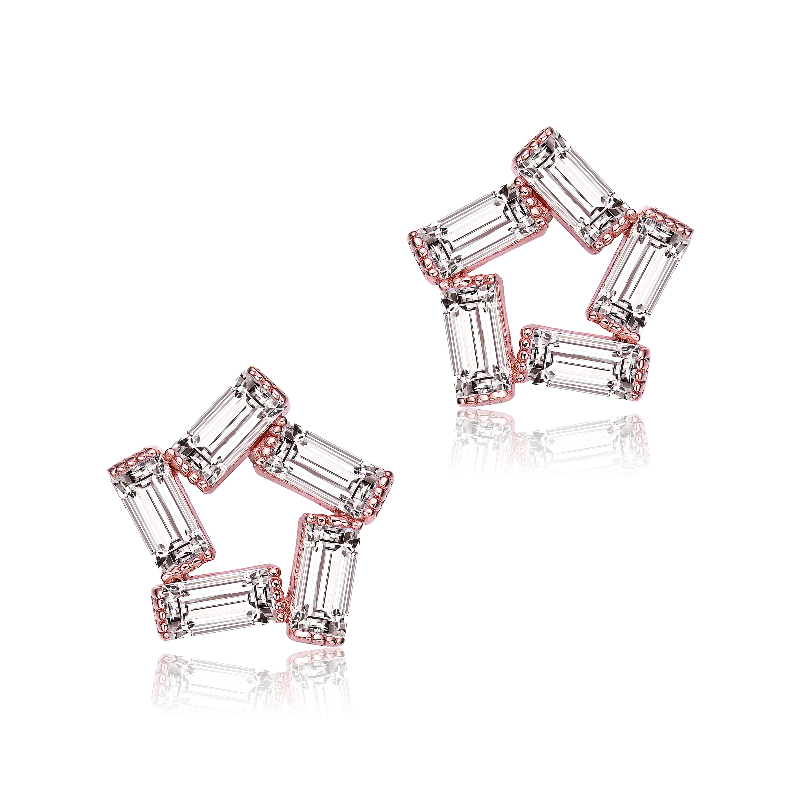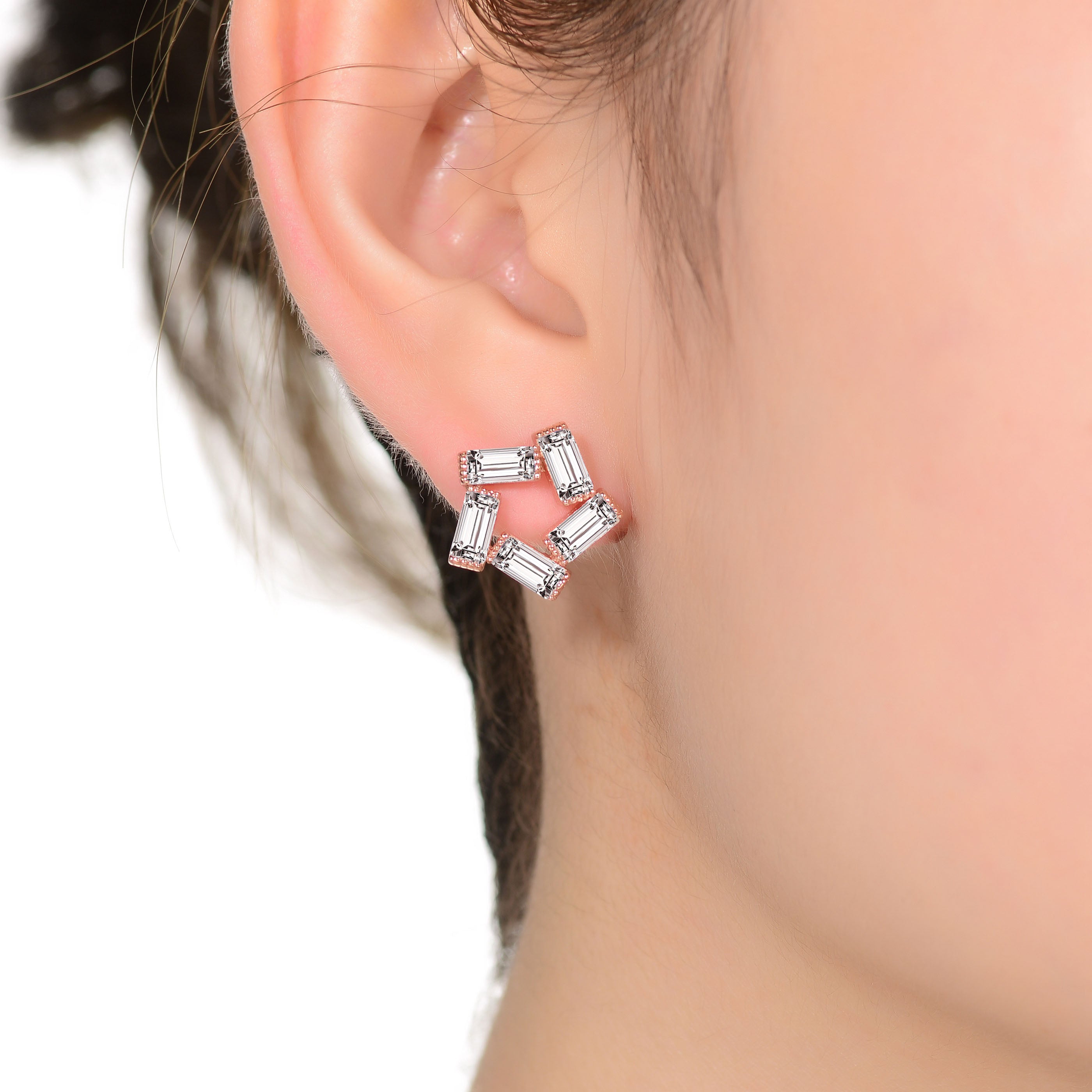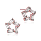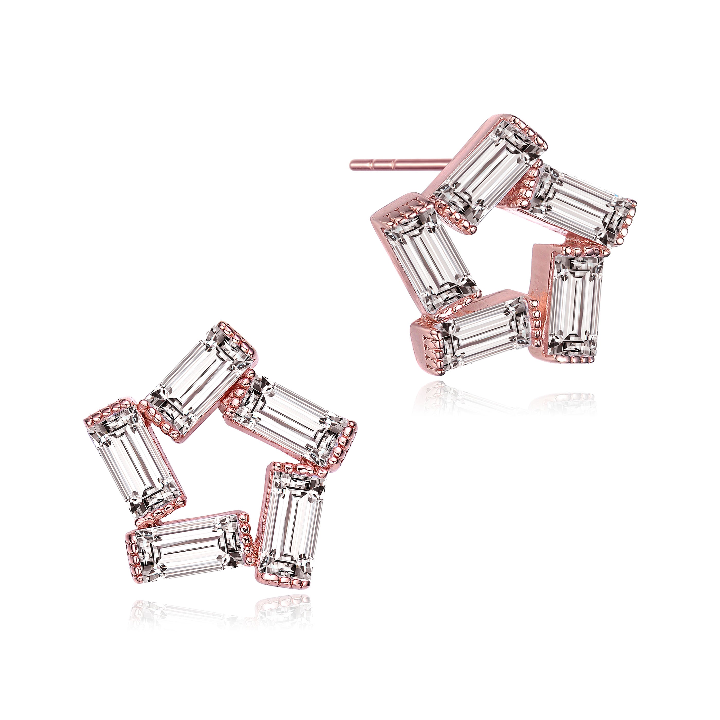 Show your adorable side when you wear these star earrings. It is crafted in Sterling silver with Rose Gold plated with a butterfly closure. The star design is formed using clear baguette Cubic Zirconia that is artfully done to complement any outfit.