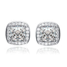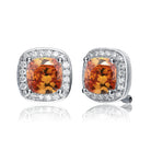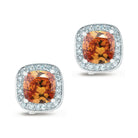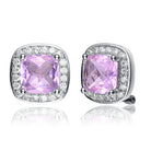 These classic pink earrings are a beautiful additon to any outfit. They feature a bold blue stone surrounded by cubic zirconia solitaires.