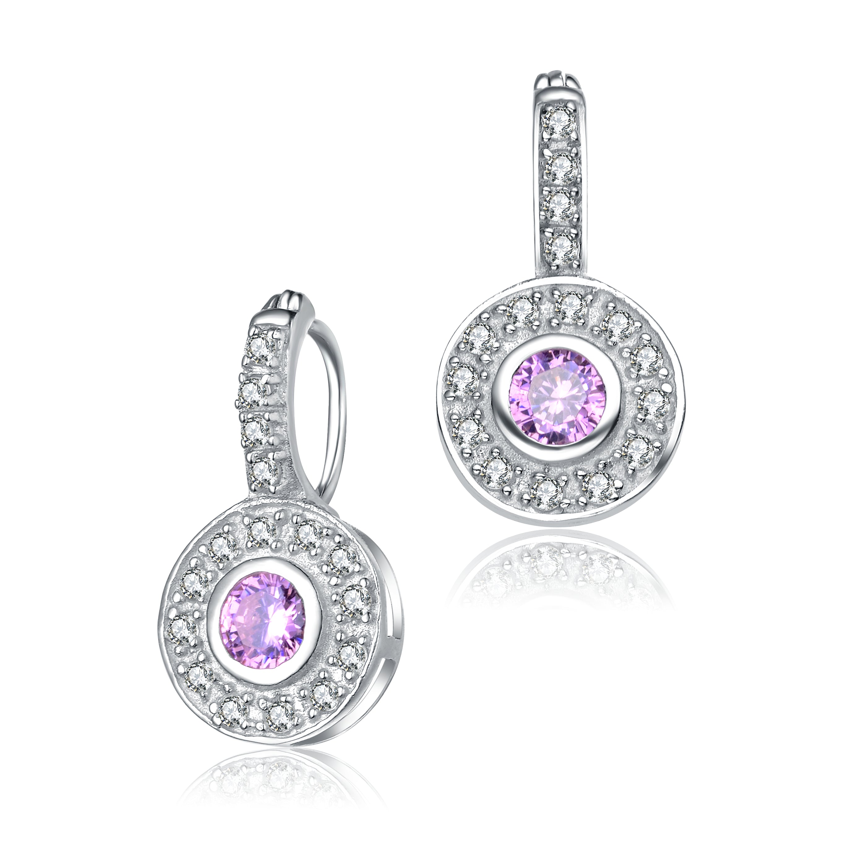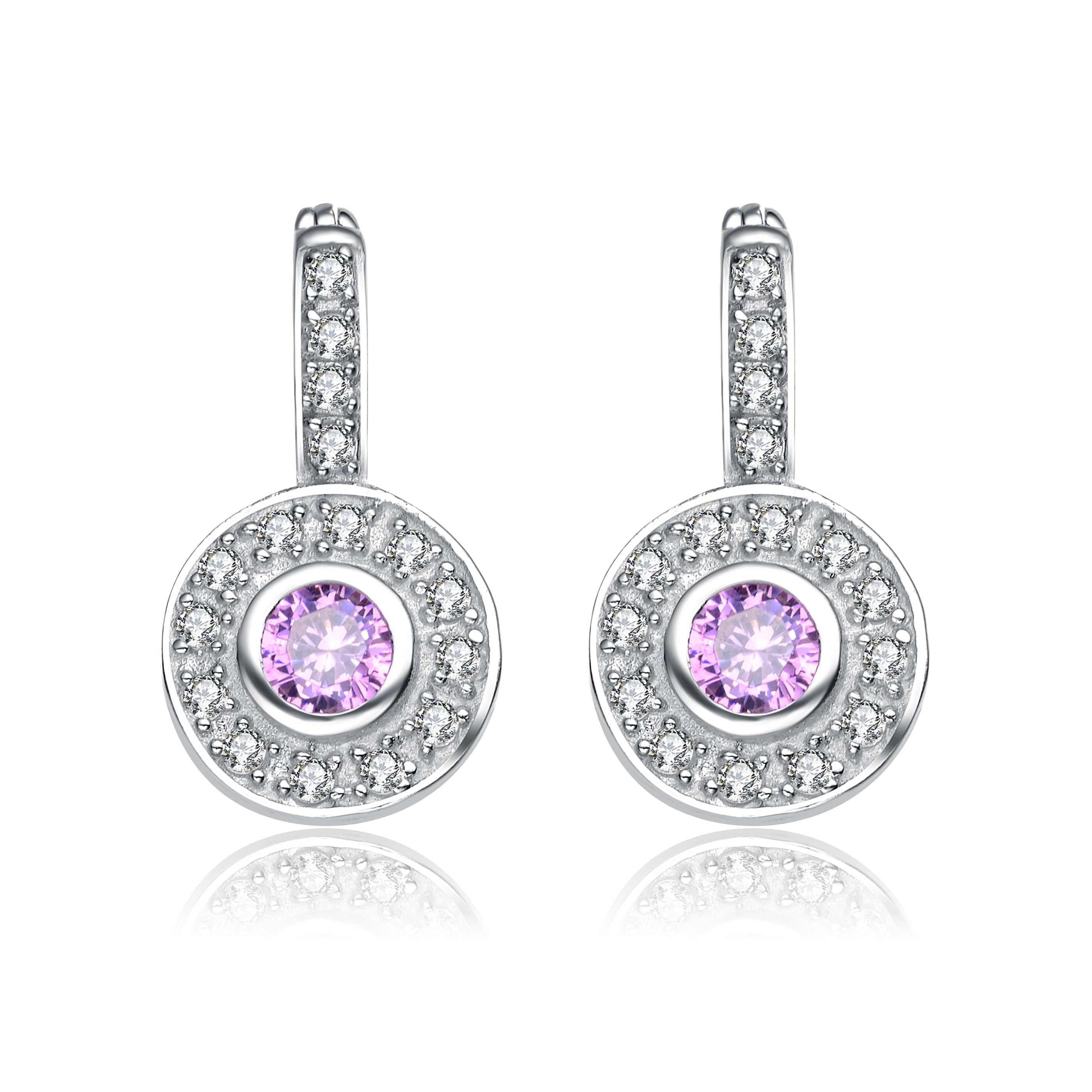 Add a touch of class to any outfit when wearing this sterling silver pair of earrings. It highlights a noteworthy pink cubic zirconia stone surrounded by clear cubic zirconias.