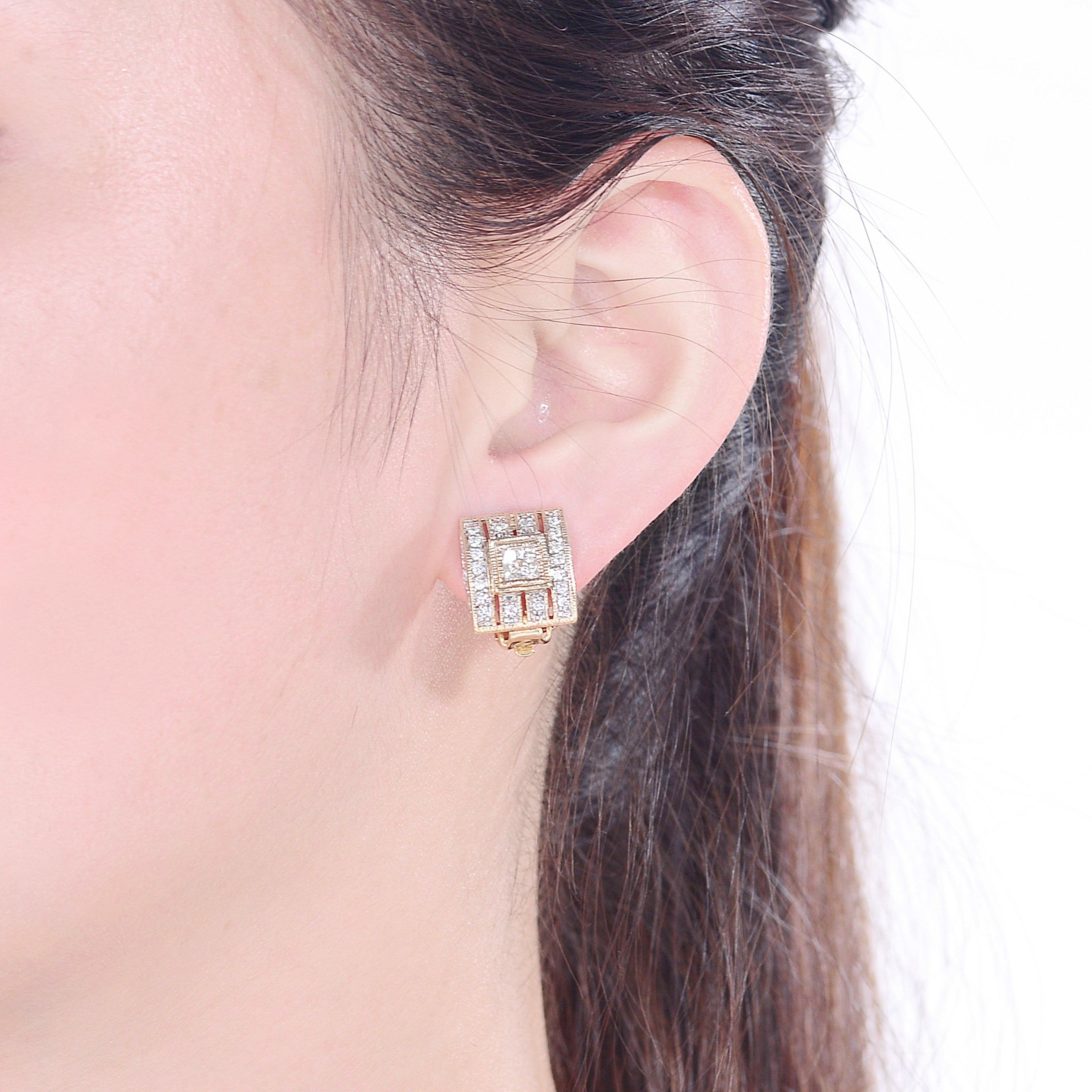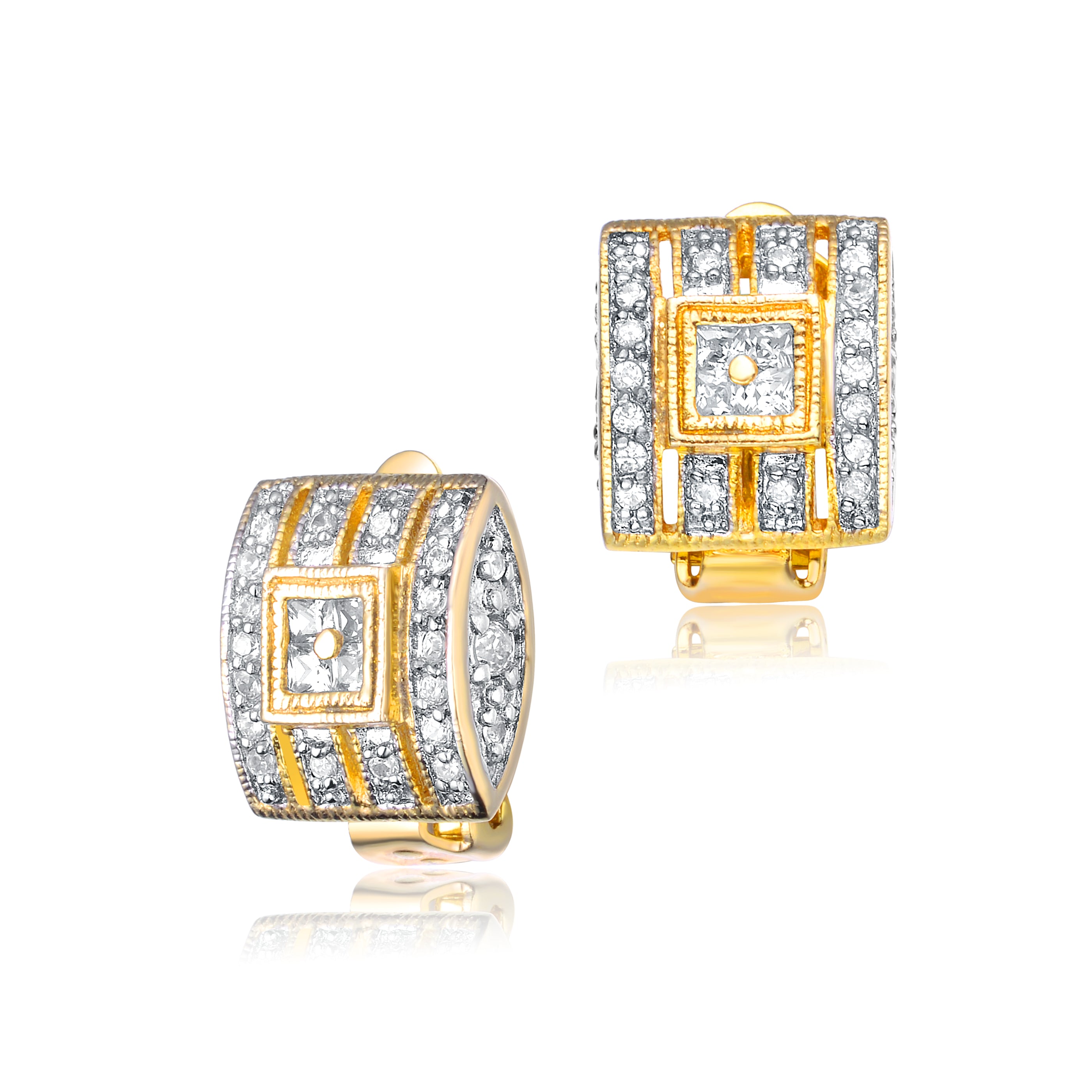 Yellow Gold Plated Clear Cubic Zirconia Accent Square Earrings