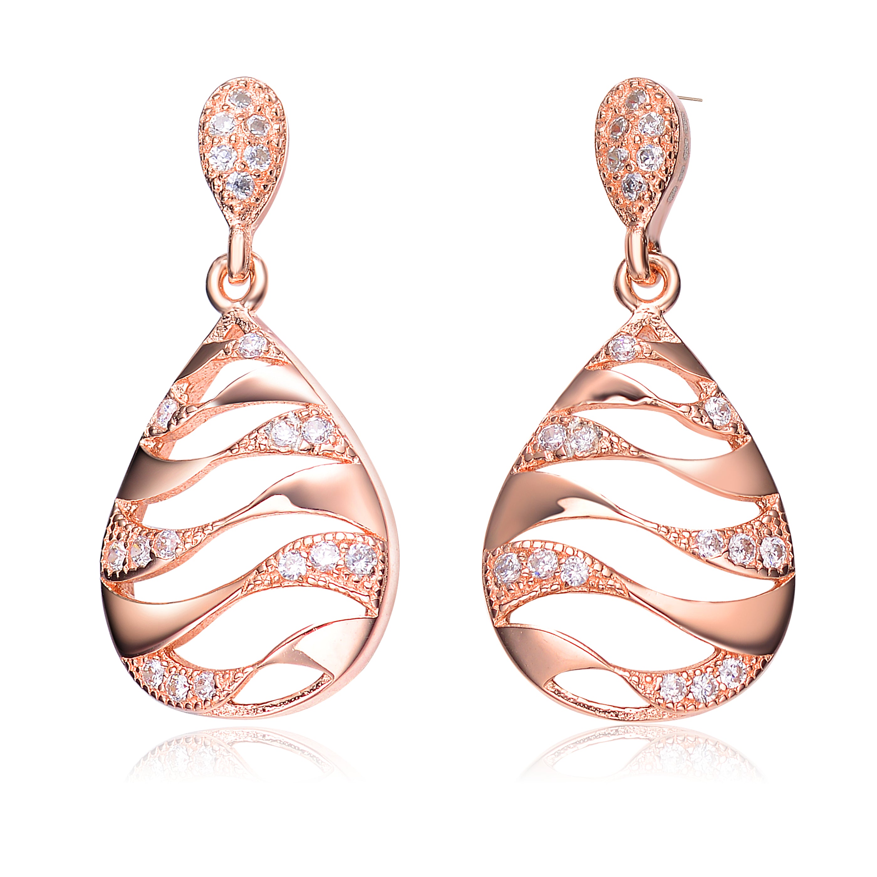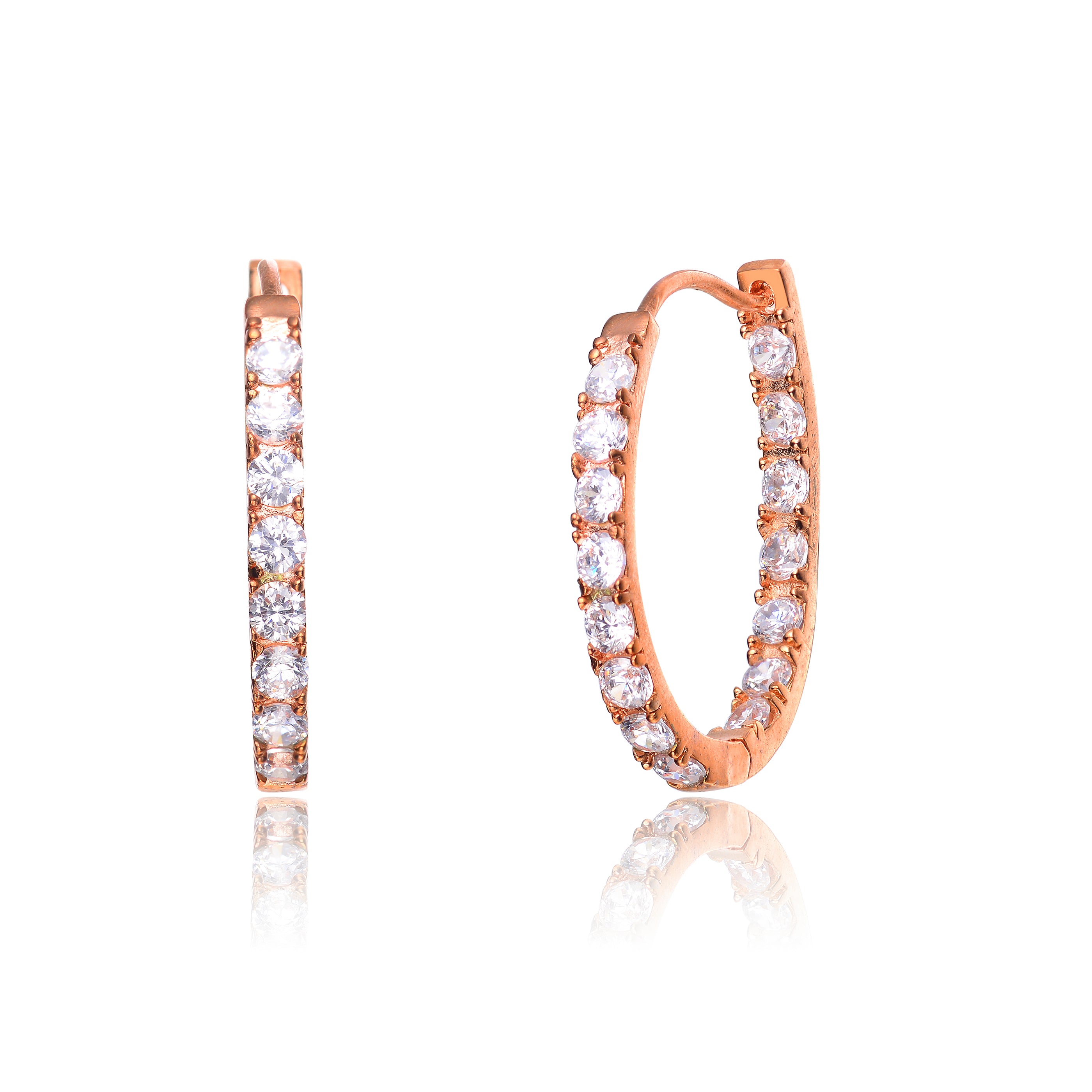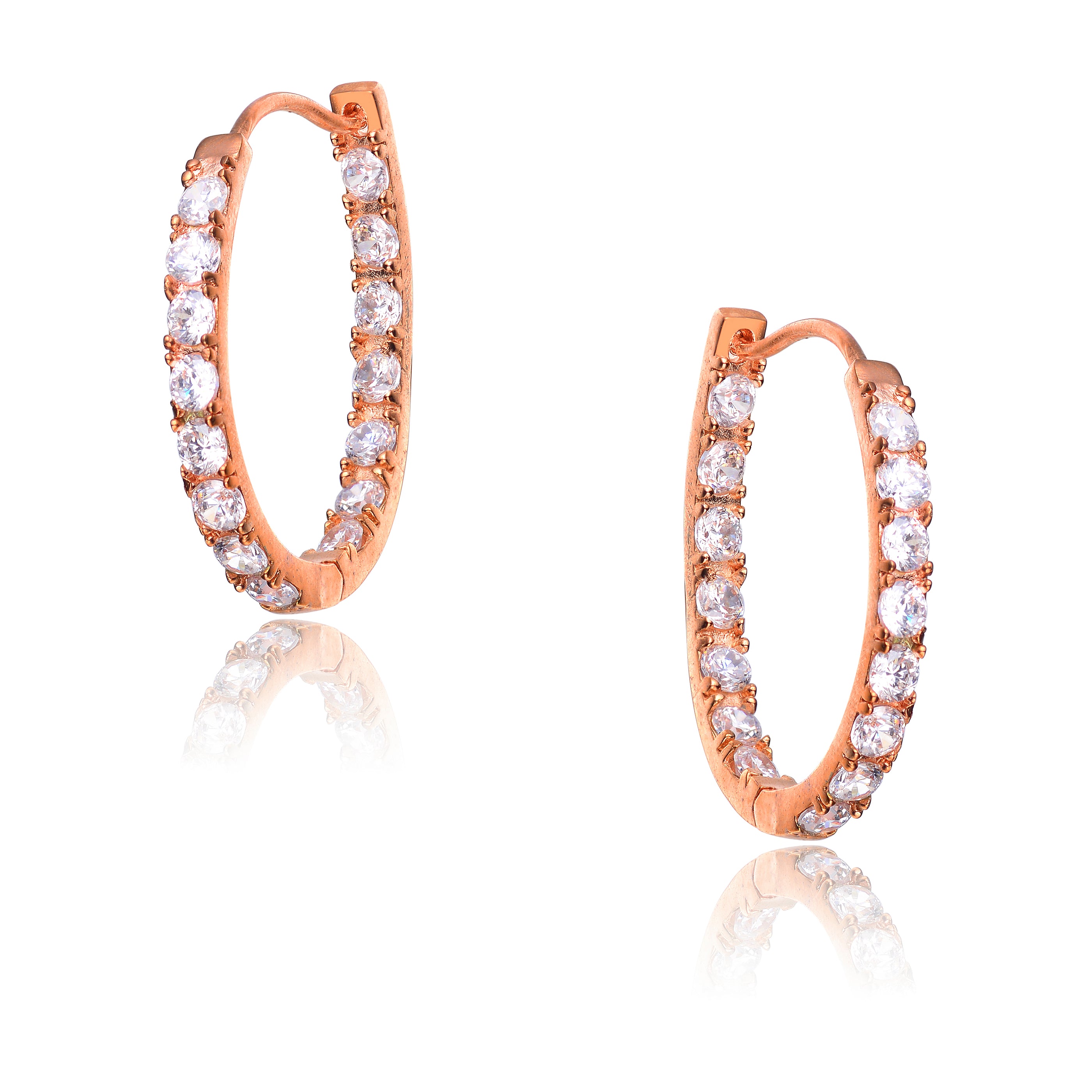 CZ Sterling Silver Rose Plated Hoop Earrings
