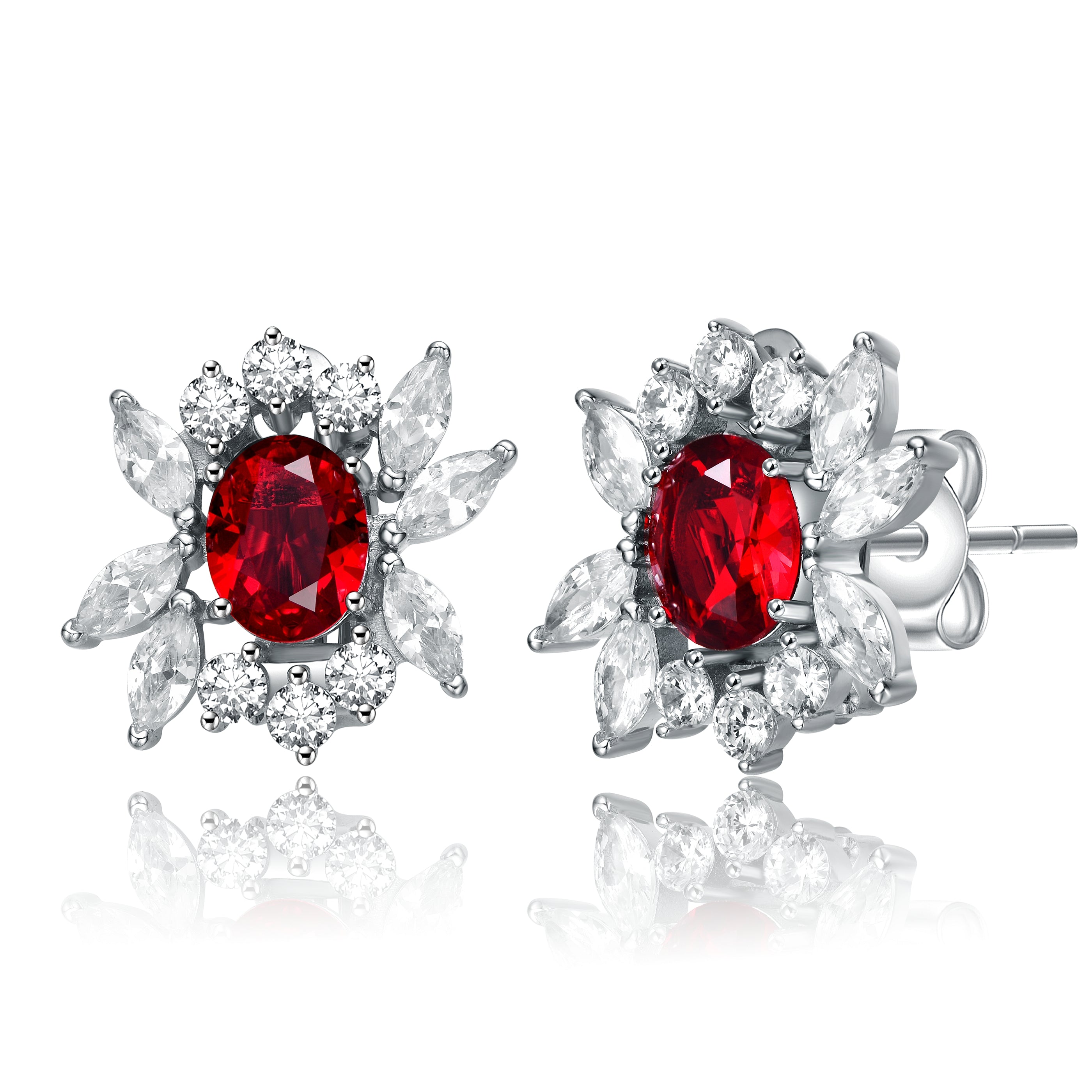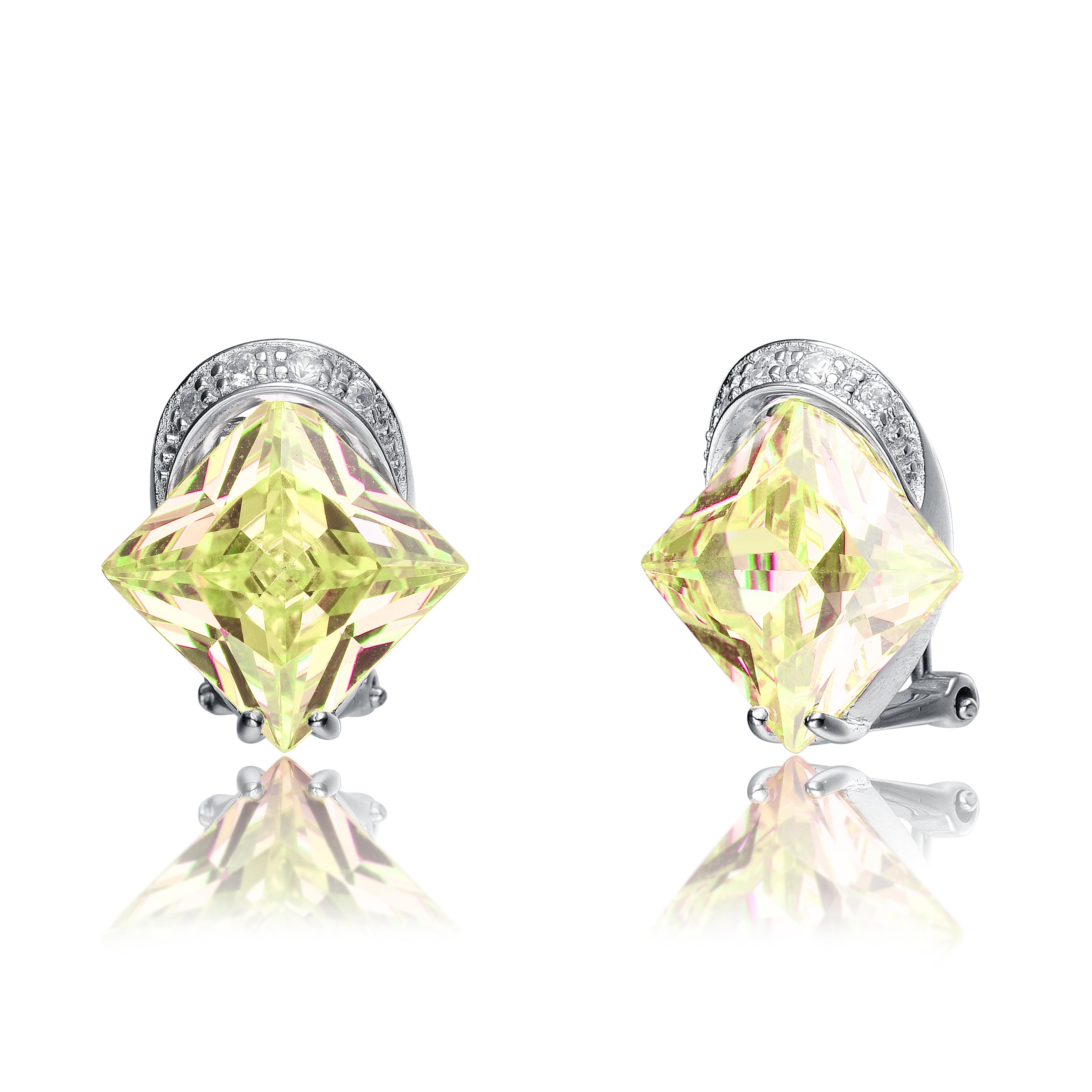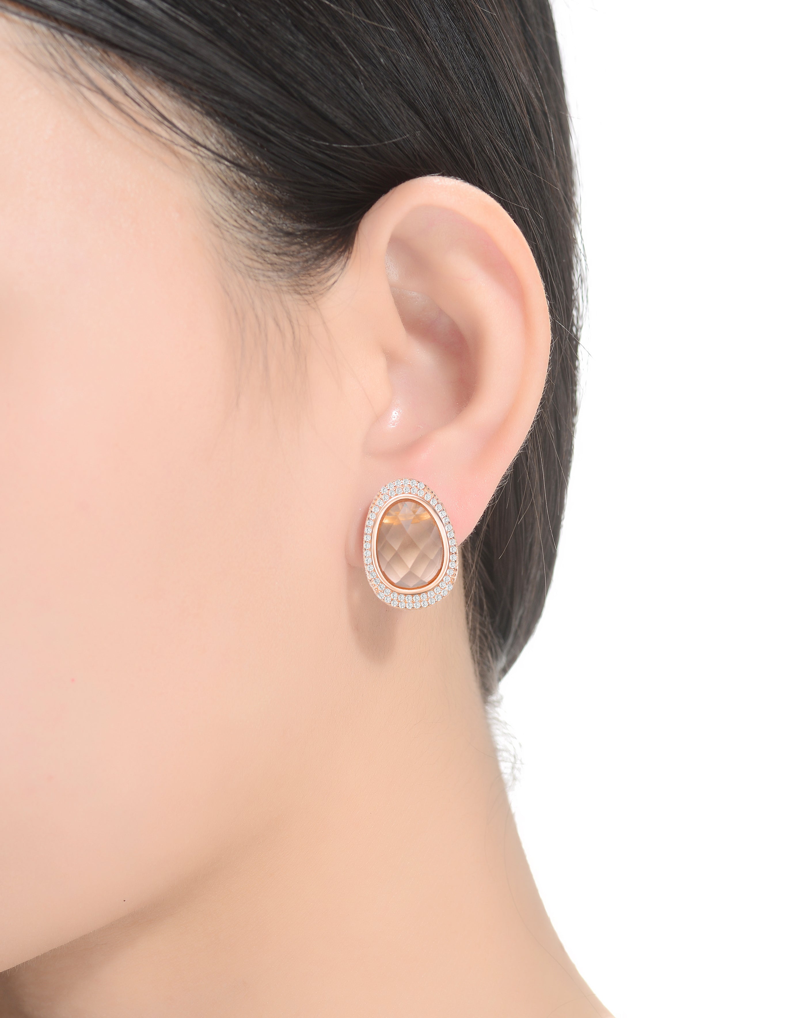 Light Peach and White Cubic Zirconia Oval Shaped Stud Earrings