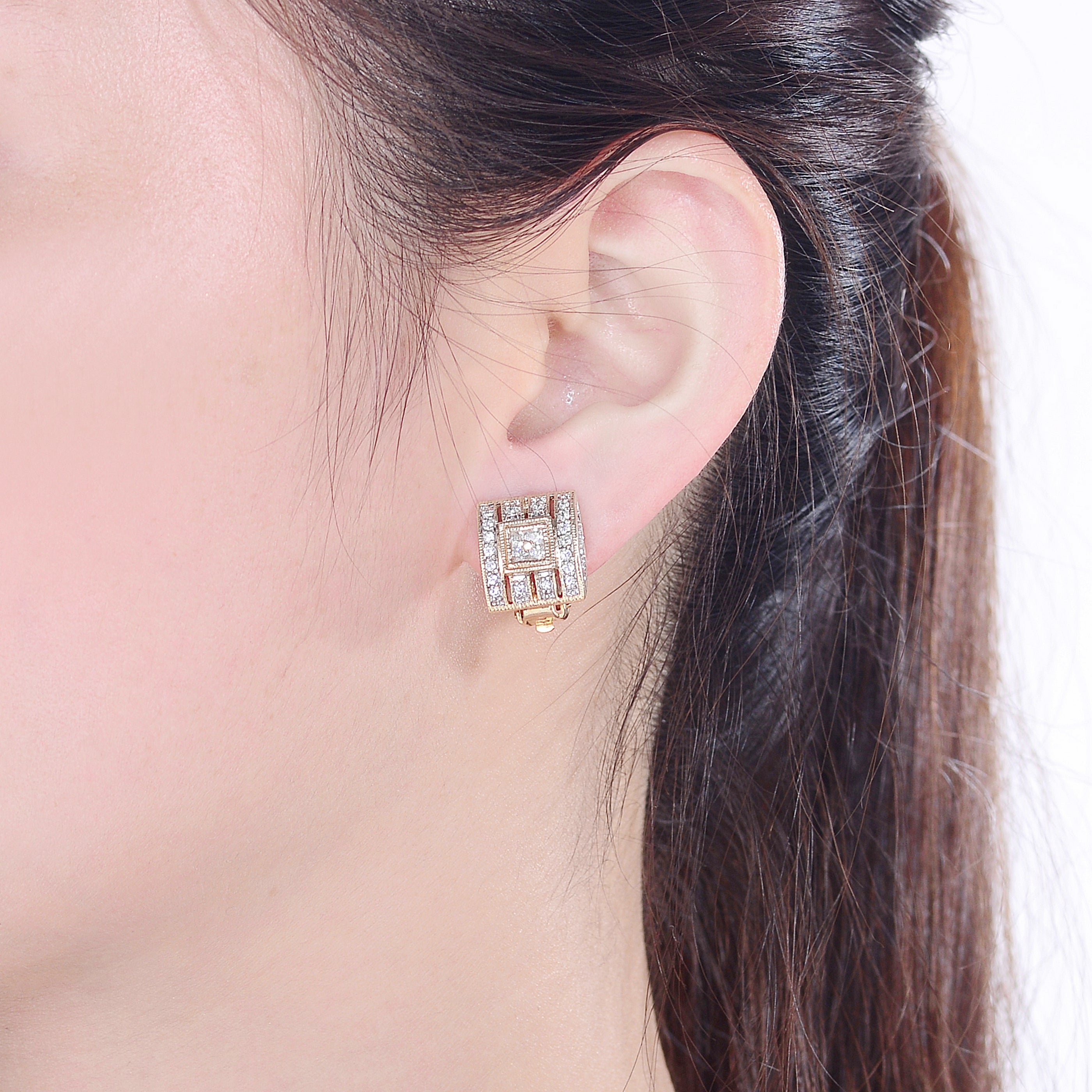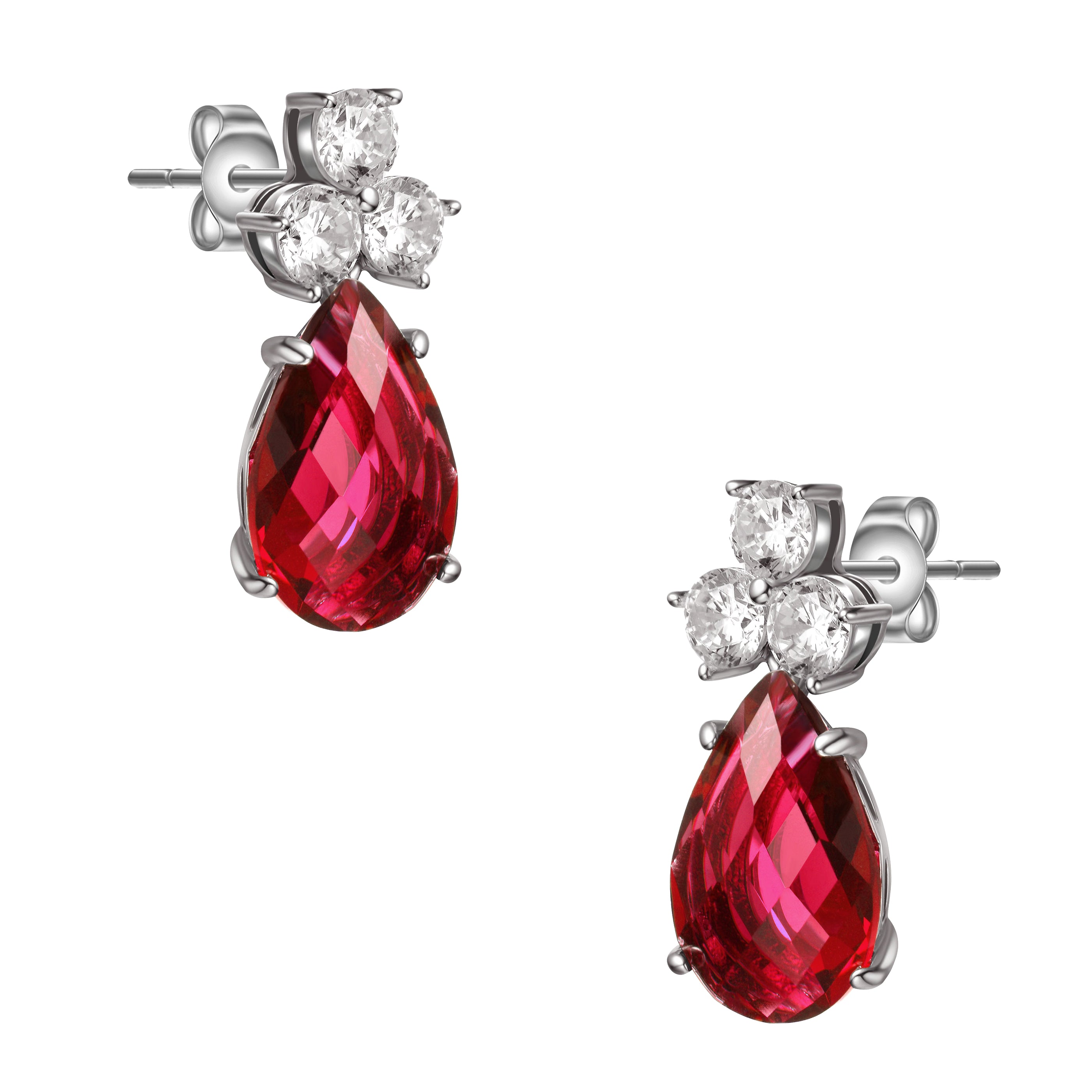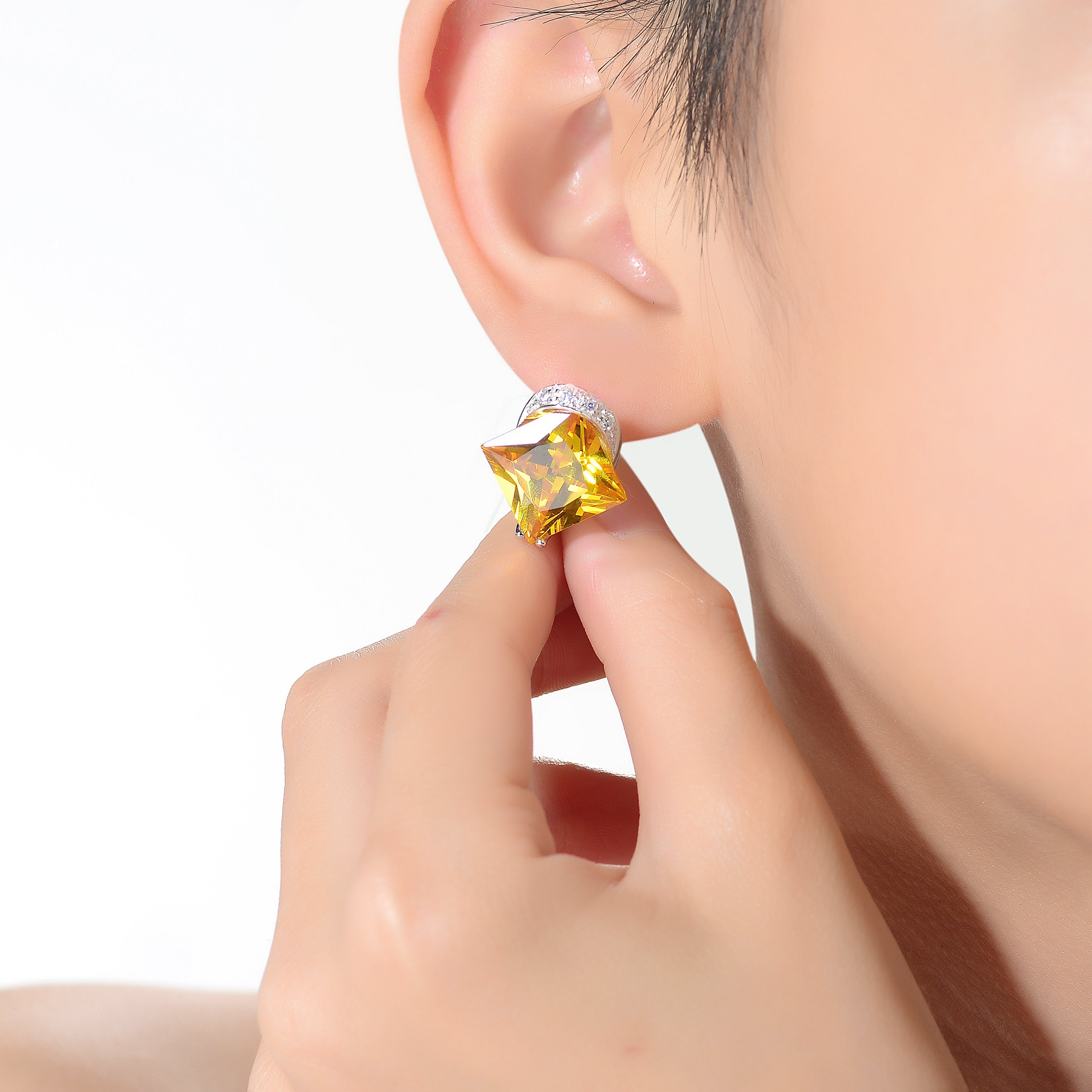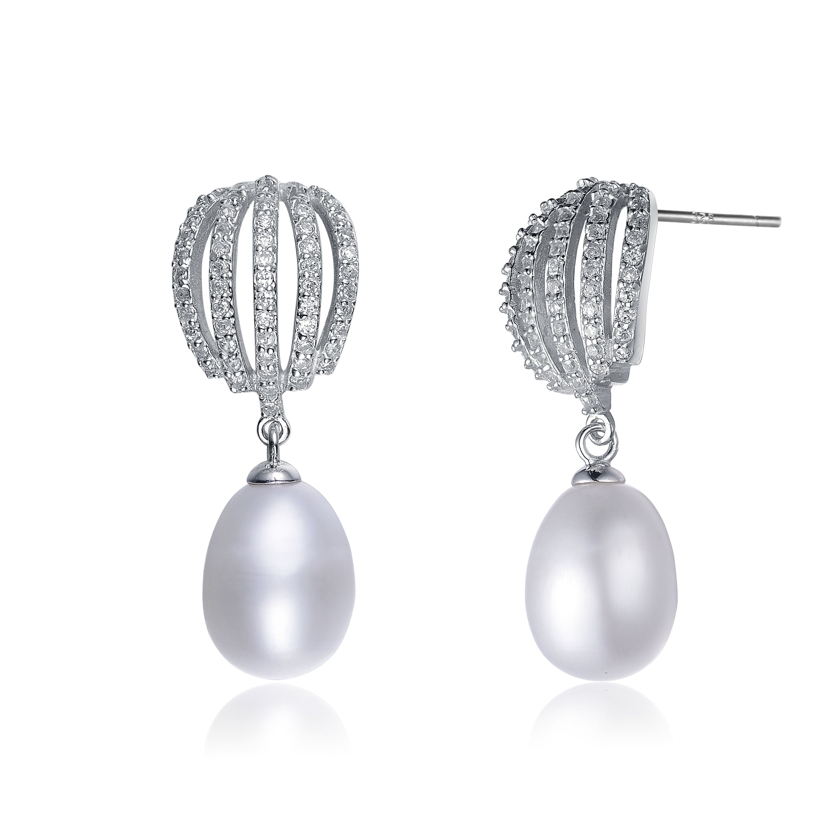 Light Peach and White Cubic Zirconia Oval Shaped Stud Earrings