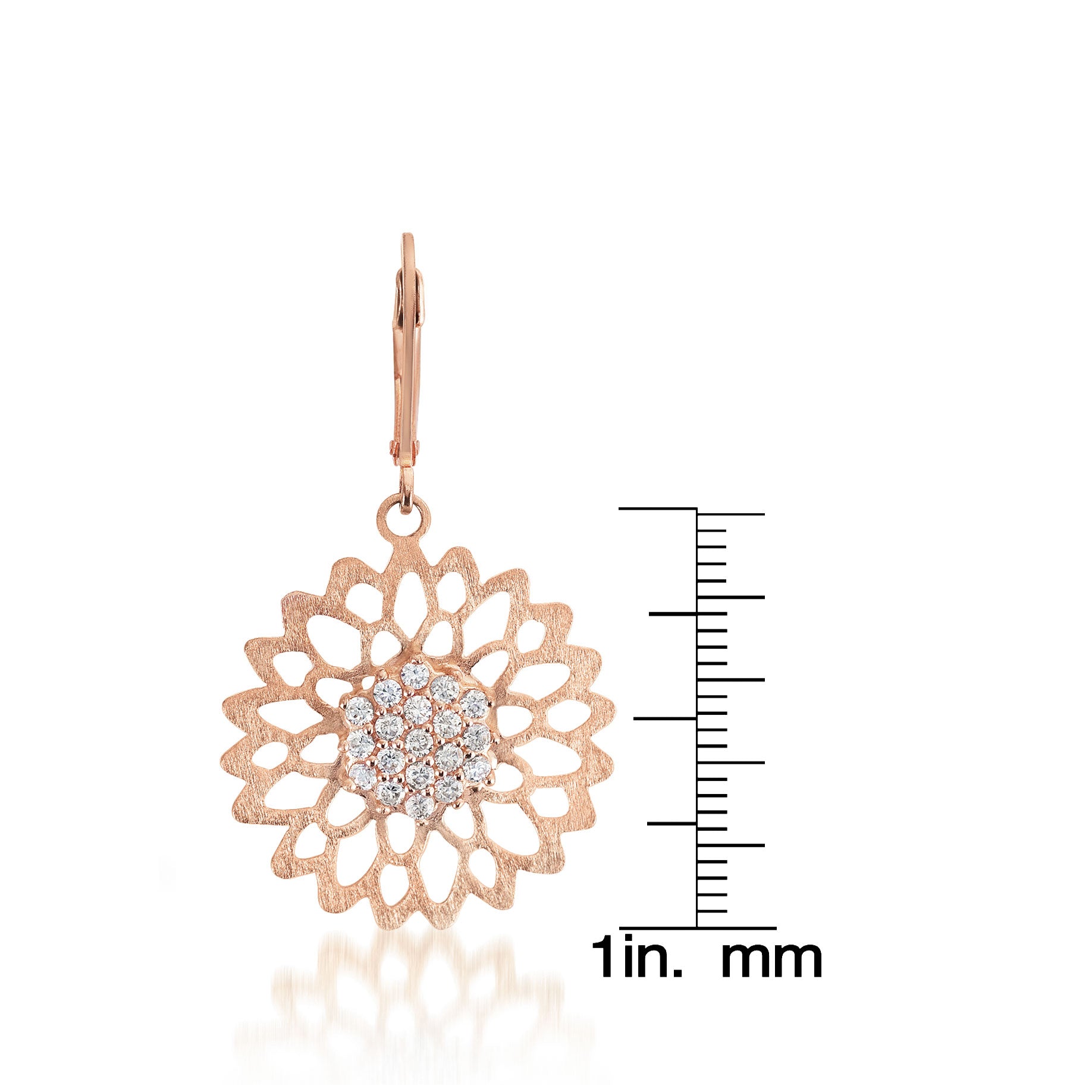 Matte Brushed Rose-plated Sterling Silver Cubic Zirconia Dangling Earrings